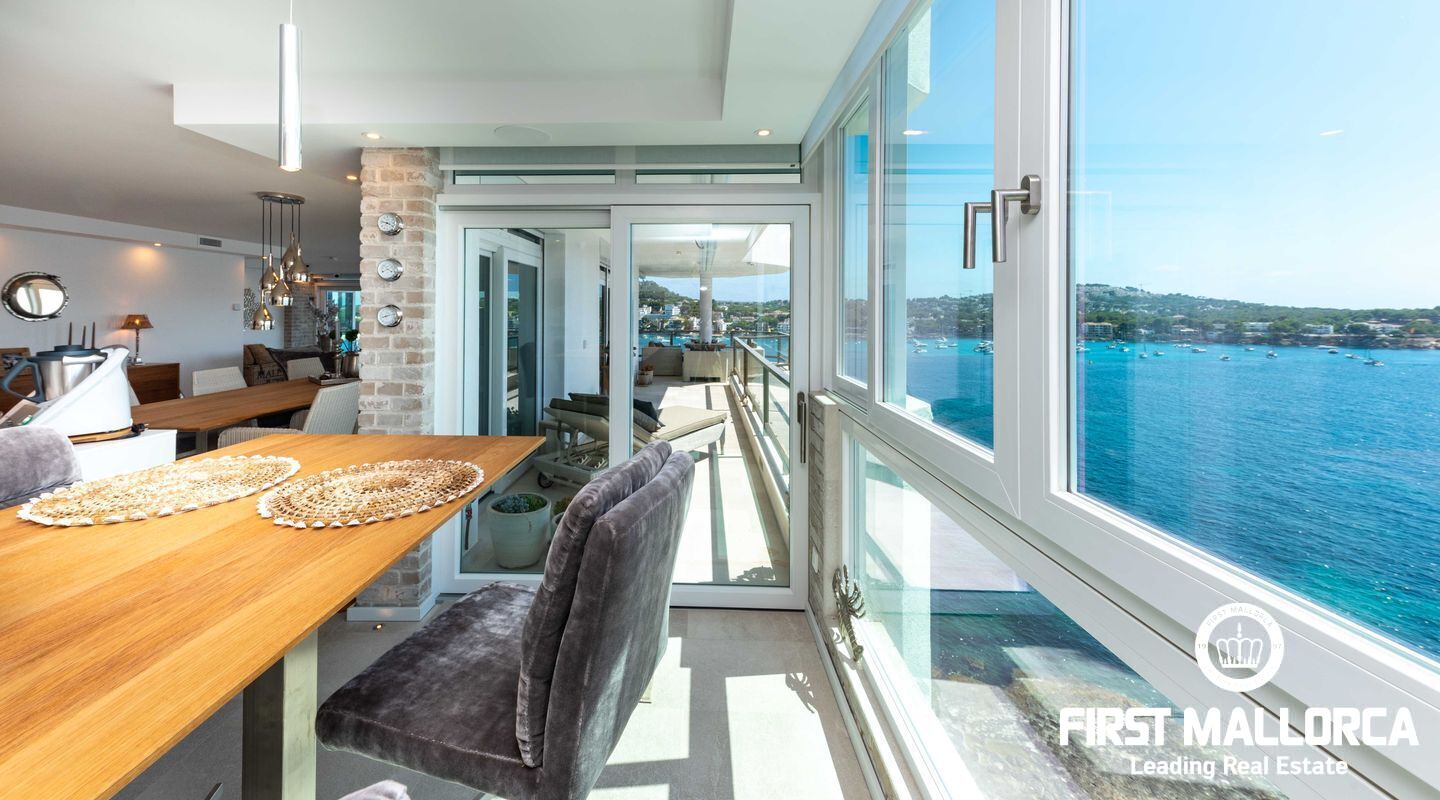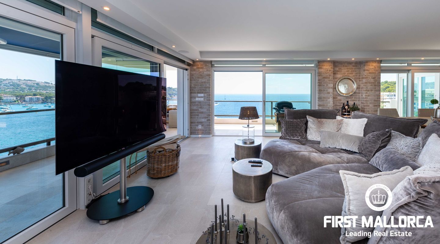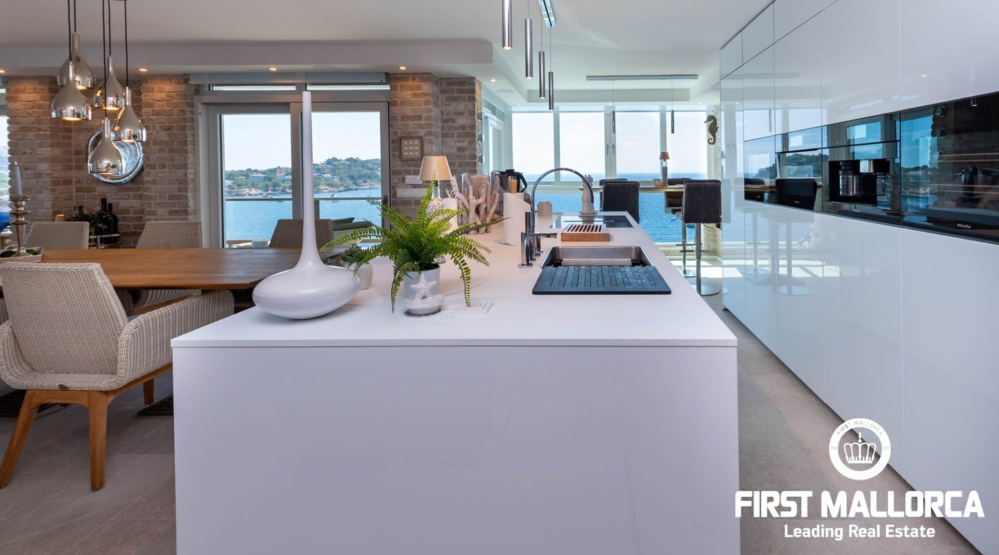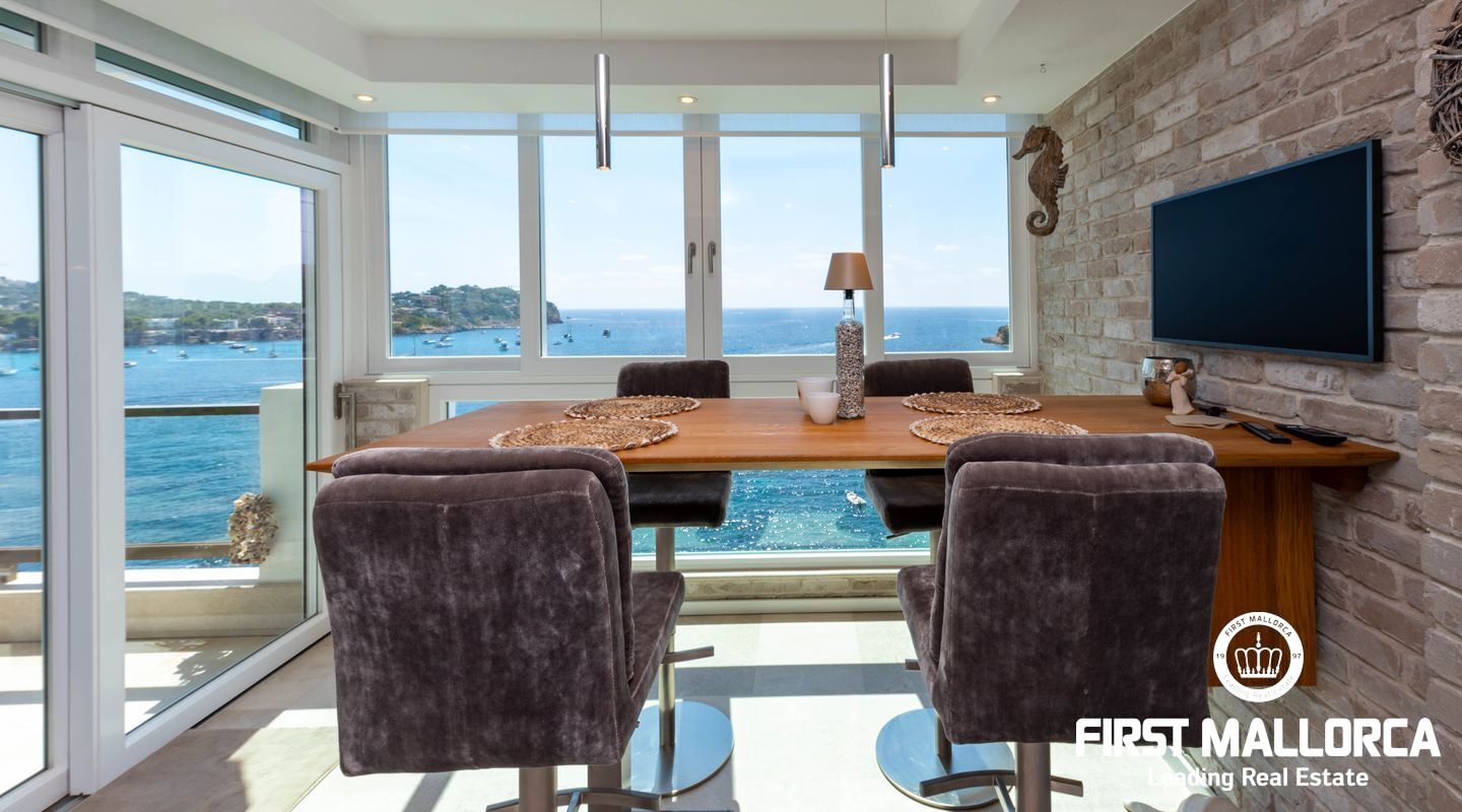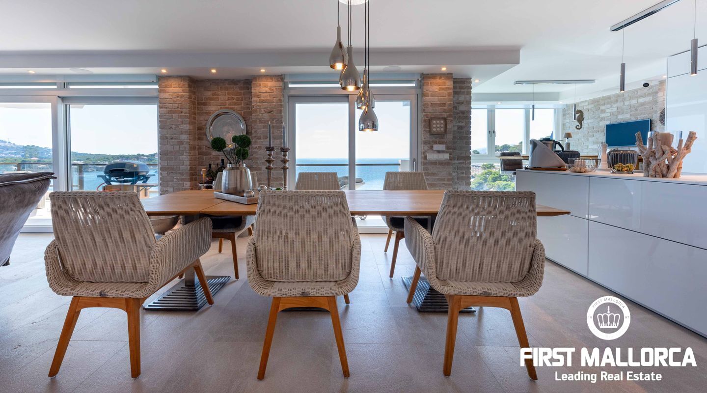 Этот исключительный пентхаус может похвастаться захватывающими панорамными видами на море с любого угла. Кухня открытой планировки - идеальное место для того, чтобы насладиться утренним кофе, любуясь потрясающими прибрежными видами. Из просторной гостиной и столовой открывается 180-градусная панорама на море и залив Санта-Понса. Выйдите на просторную террасу с креслами, барбекю и шезлонгами, чтобы насладиться отдыхом на свежем воздухе.