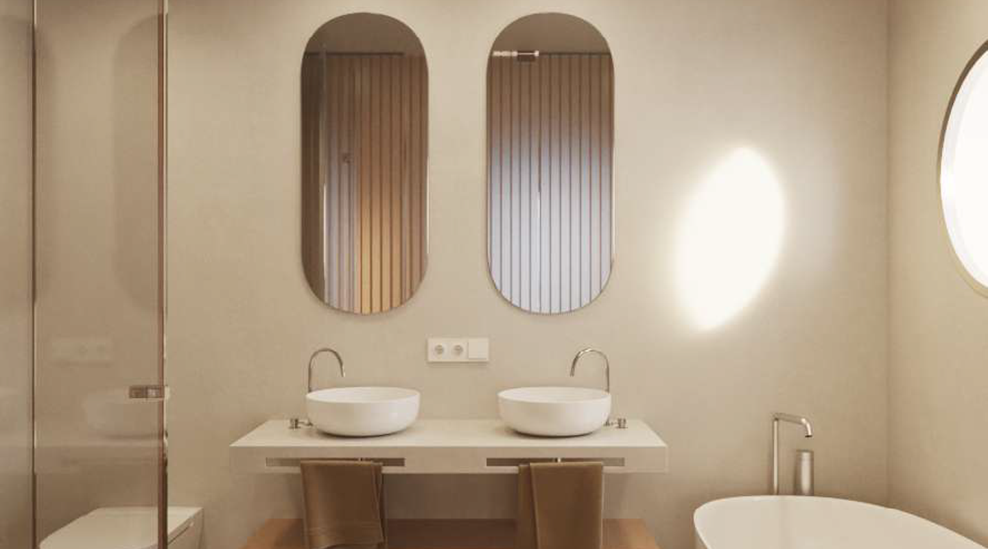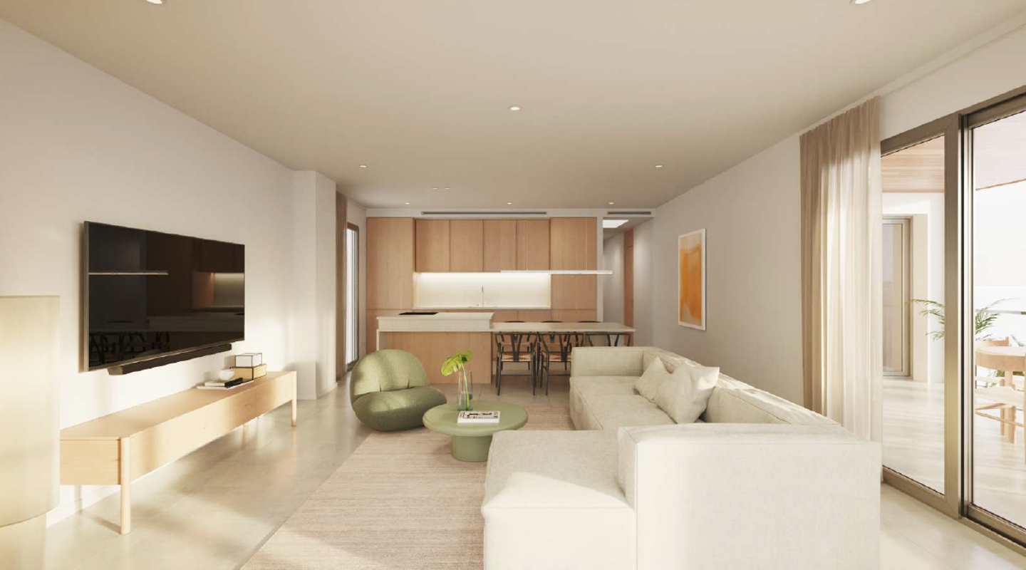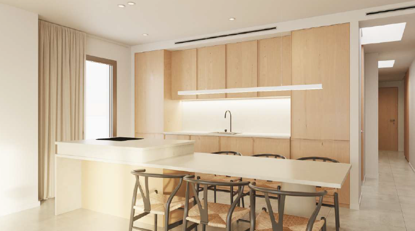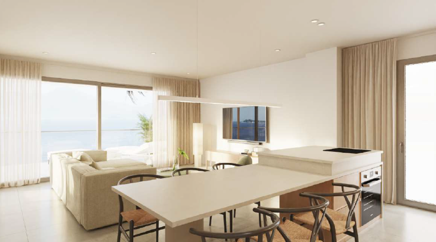 Открытая кухня с центральным островом гармонично вписывается в гостиную-столовую, создавая открытое пространство с большими окнами и панорамным видом на море. Все комнаты выходят на улицу и оснащены окнами с двойным остеклением с тепловым мостом и звукоизоляцией, что гарантирует максимальную освещенность и тишину. Атмосфера дополняется системой кондиционирования с каналами для охлаждения/обогрева, которая обеспечивает максимальный комфорт в течение всего года.