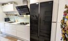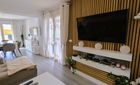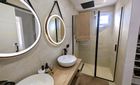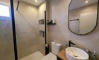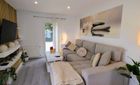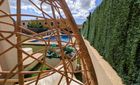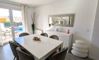 Дом расположен на двух уровнях. На первом этаже вы найдете гостевой туалет, кухню и открытую гостиную/столовую зону. До каждого помещения есть доступ к саду и различным террасам благодаря панорамным окнам от пола до потолка. Так как это угловой дом, он окружен на трех сторонах просторным частным садом с бассейном.