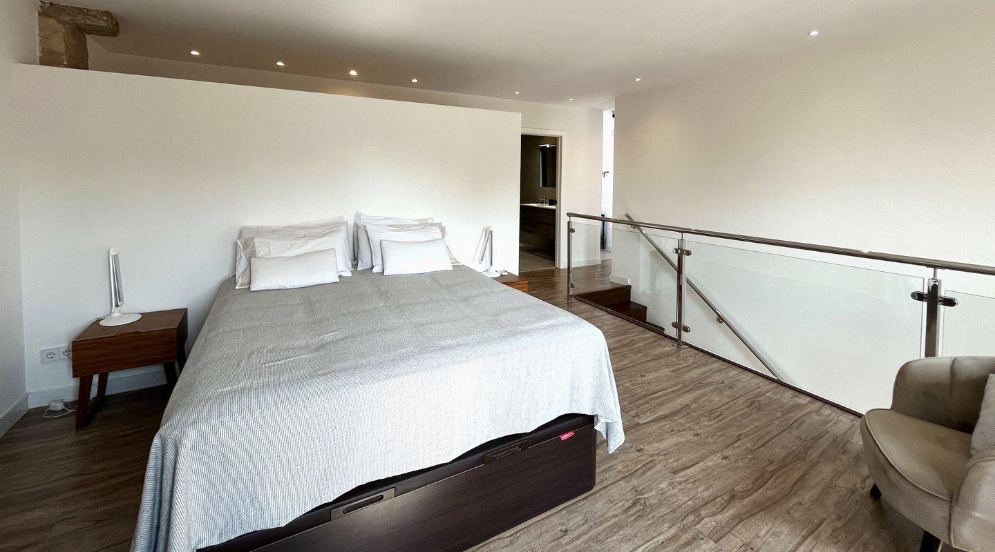 Верхние этажи занимают стильные апартаменты-дуплекс с одной спальней и потрясающими панорамными видами на Люкмайор, включая его знаменитый собор. Дом тщательно продуман для комфортного проживания, продаётся полностью меблированным, с телевизорами, и готов к заселению прямо сейчас.