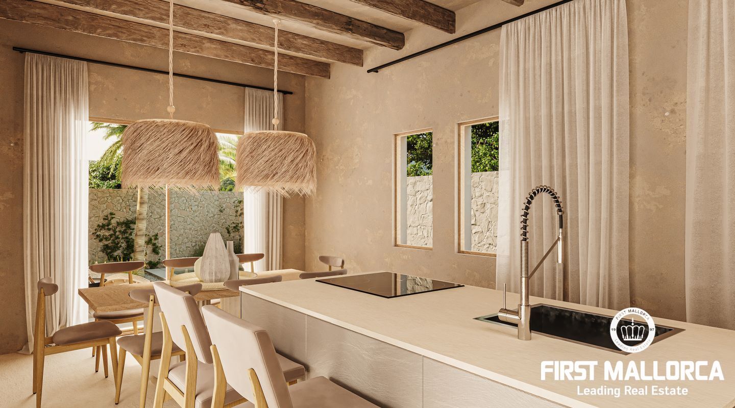 Дом был спроектирован известным дизайнером интерьеров и прекрасно сочетает в себе современный дизайн и традиционный майоркинский характер.