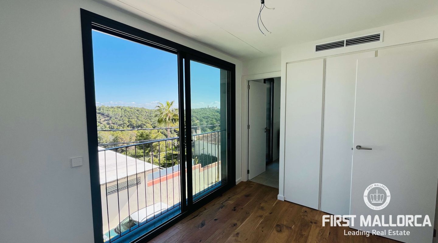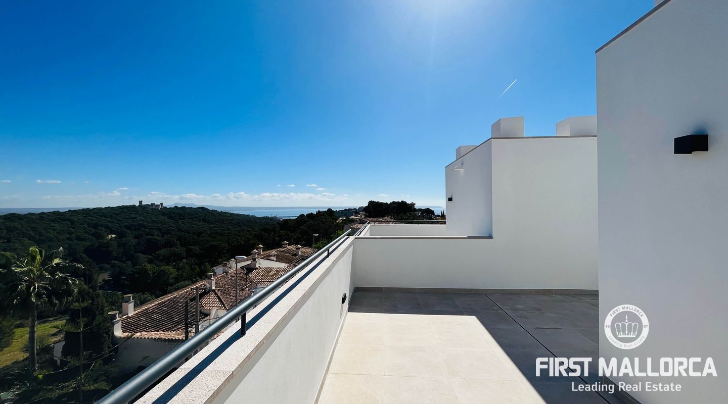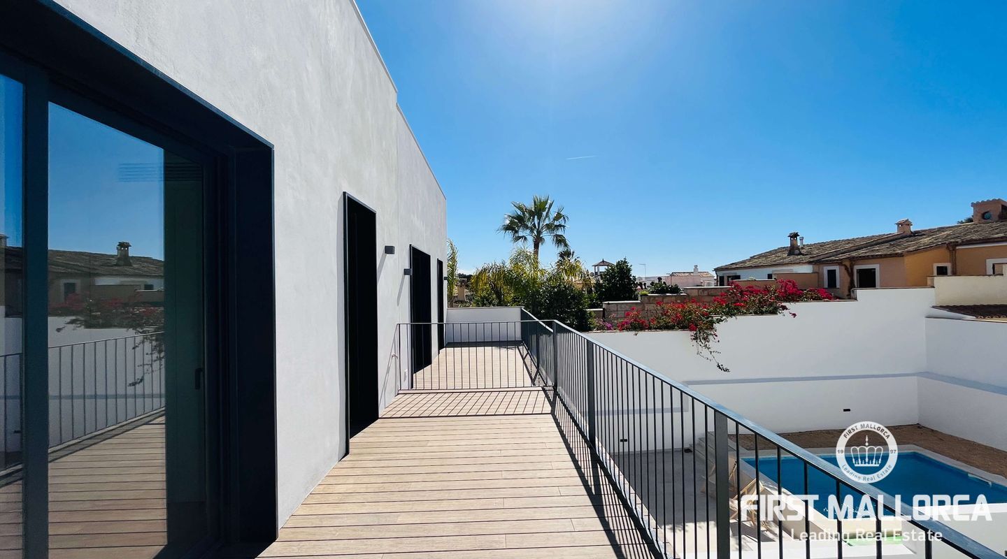 Наверху находятся три спальни с современными встроенными шкафами, две ванные комнаты с современным дизайном и прекрасная терраса с видом на бассейн.