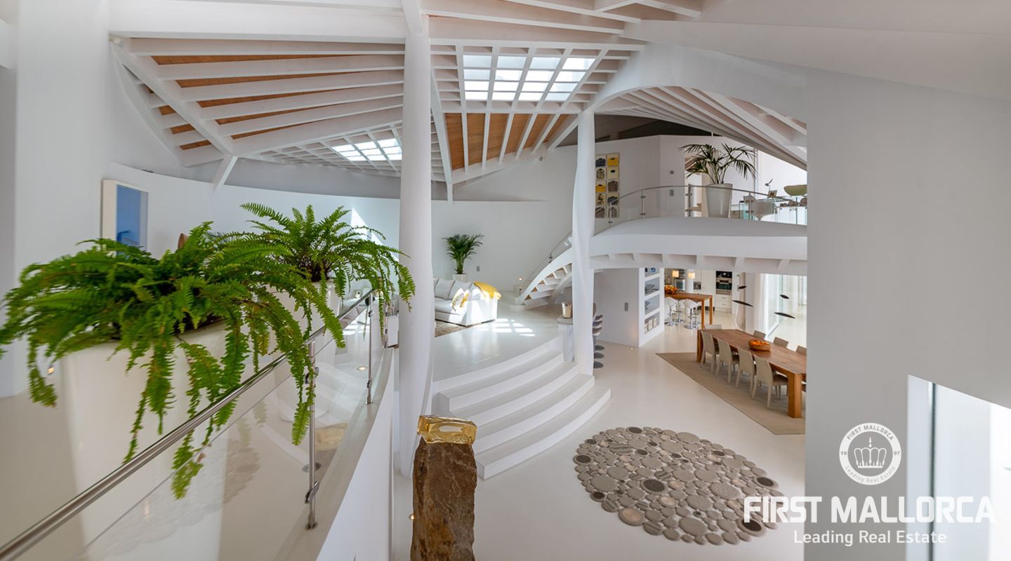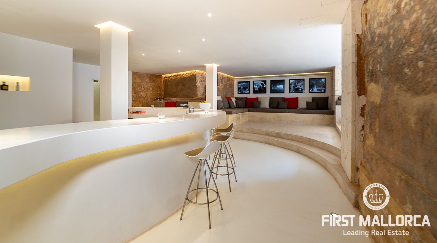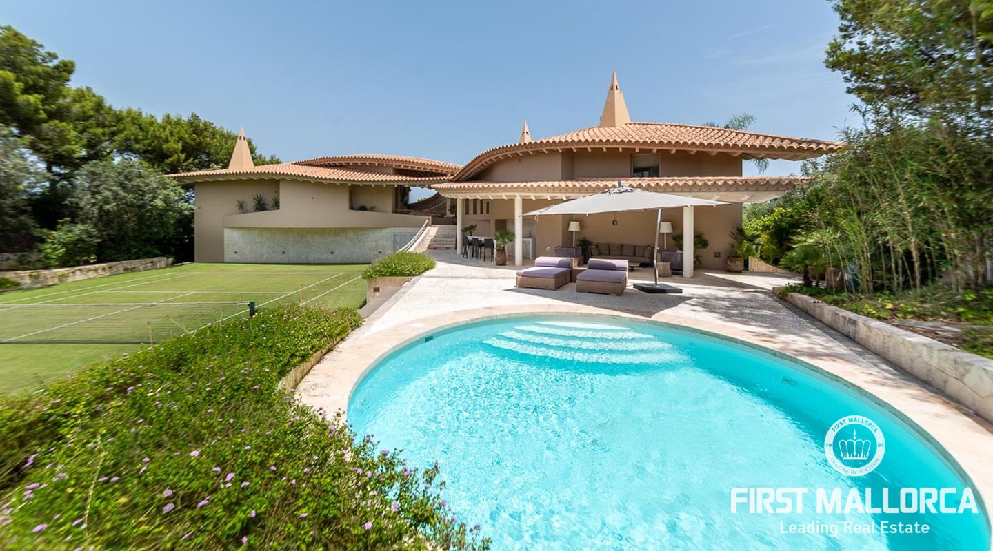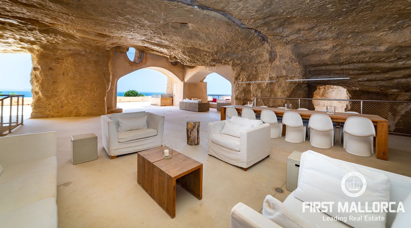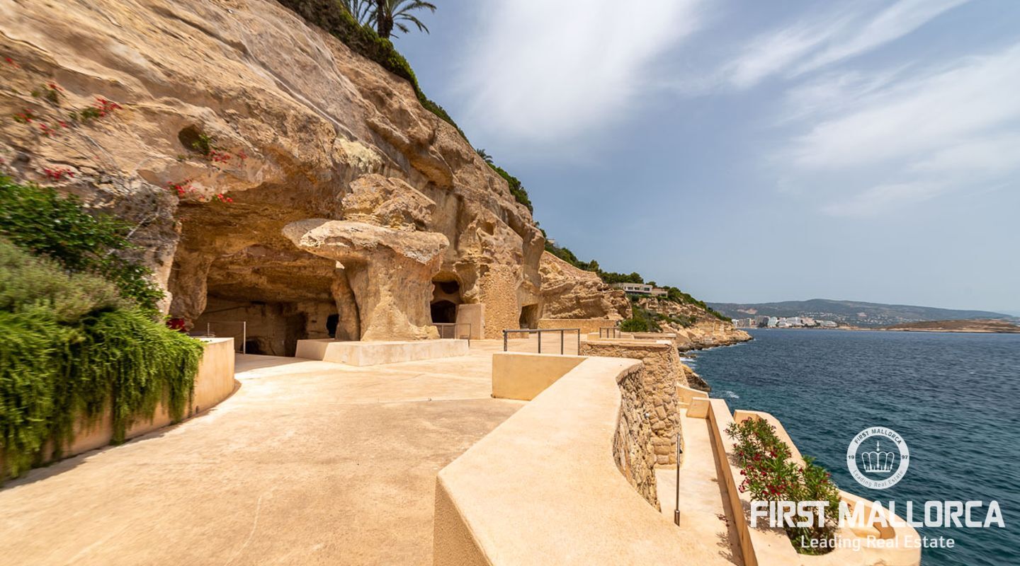Эксклюзивные особенности и удобства этого необычного примера креативного дизайна включают освещаемый теннисный корт, бассейн-инфинити, винный погреб, полностью оборудованный тренажерный зал, прямой выход к морю и впечатляющую монументальную природную пещеру, соединенную с основной виллой лифтом, который ведет к зоне для вечеринок и развлечений и террасам на берегу моря, откуда открывается исключительный вид на залив Пальмы.