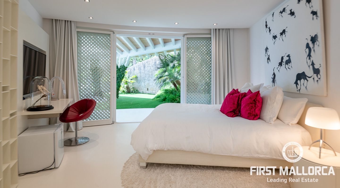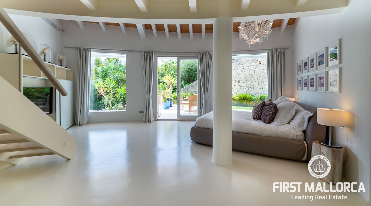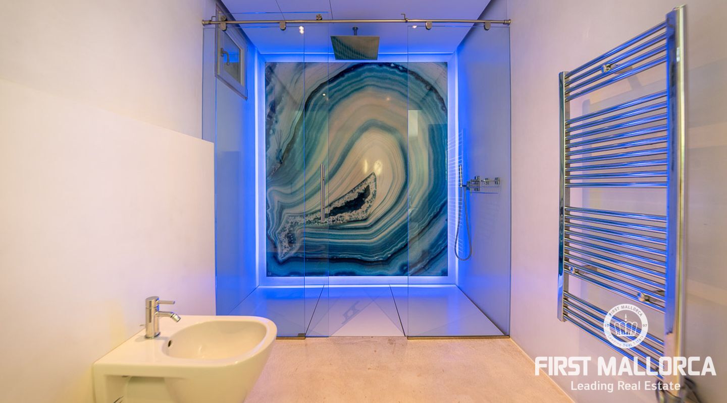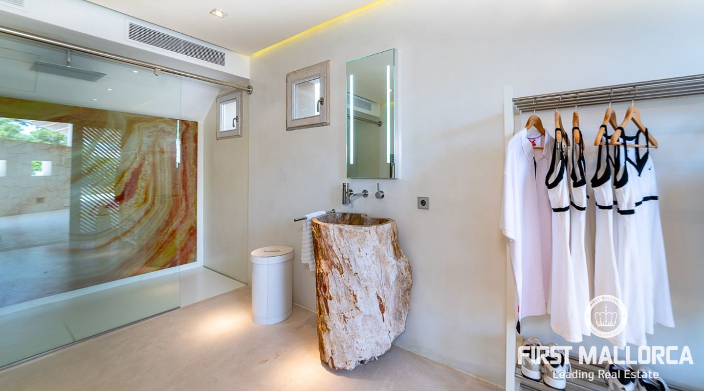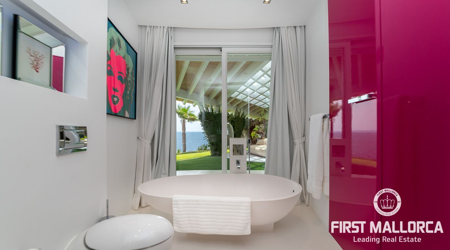 Эксклюзивные особенности и удобства этого необычного примера креативного дизайна включают освещаемый теннисный корт, бассейн-инфинити, винный погреб, полностью оборудованный тренажерный зал, прямой выход к морю и впечатляющую монументальную природную пещеру, соединенную с основной виллой лифтом, который ведет к зоне для вечеринок и развлечений и террасам на берегу моря, откуда открывается исключительный вид на залив Пальмы.