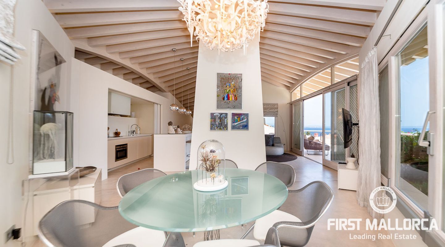 Это поистине замечательное, уникальное поместье на берегу моря расположено у восхитительной бухты Кап Фалько в Кала Виньес. Вилла "Чайка" была спроектирована известным архитектором Альберто Рубио и предлагает лучшее из его фирменной архитектуры с плавными волнистыми линиями от центра к крыльям, создающими плавные изгибы, красивыми балочными сводчатыми потолками и большими открытыми пространствами, гармонично сочетающими просторный интерьер этой исключительной собственности с террасами и впечатляющим бассейном, который, кажется, соединяется с морем.