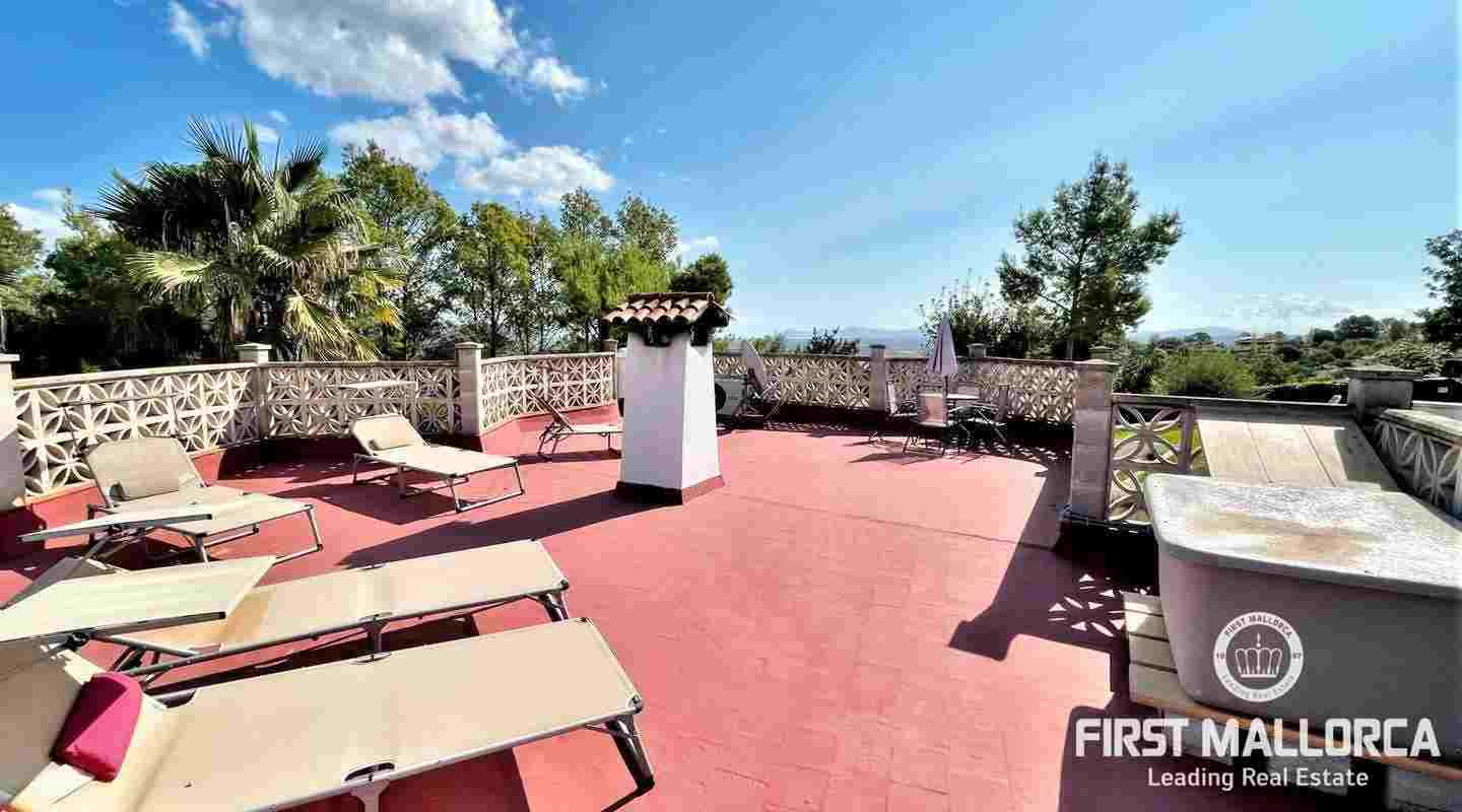 Прилегающая крытая терраса площадью около 18 кв.м. располагает к уютным вечерам с друзьями и семьей. Терраса на крыше предлагает достаточно места для принятия солнечных ванн, а также фантастический вид на море.