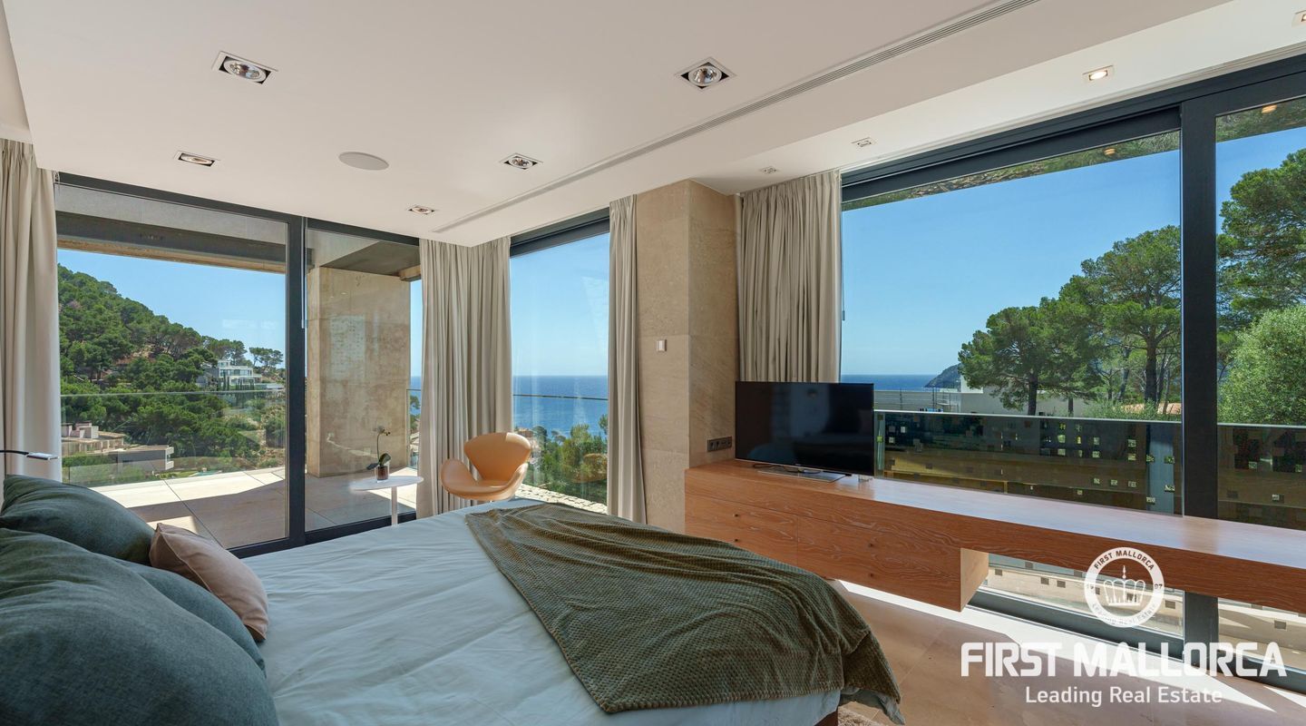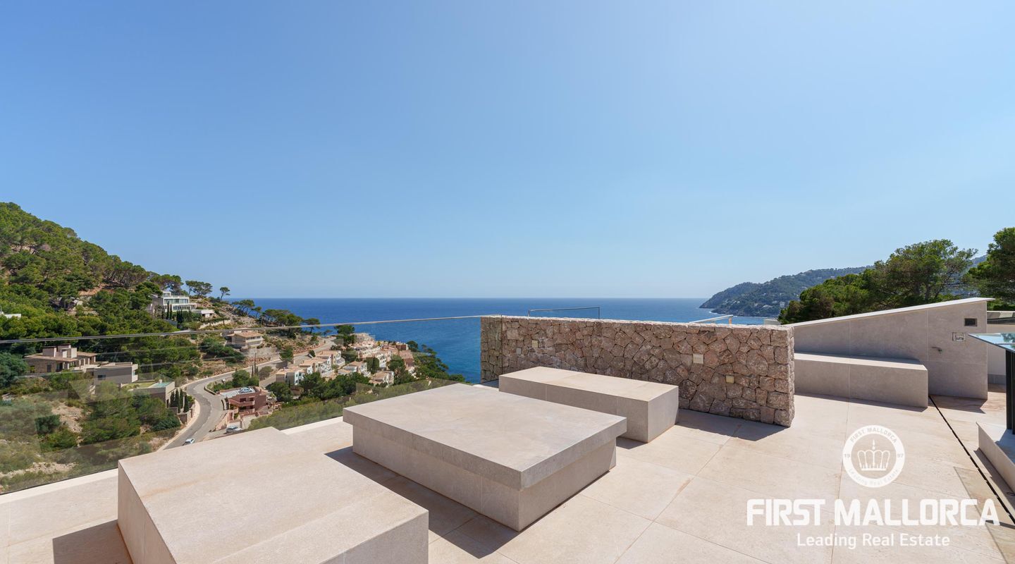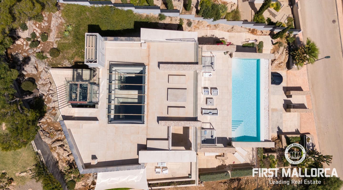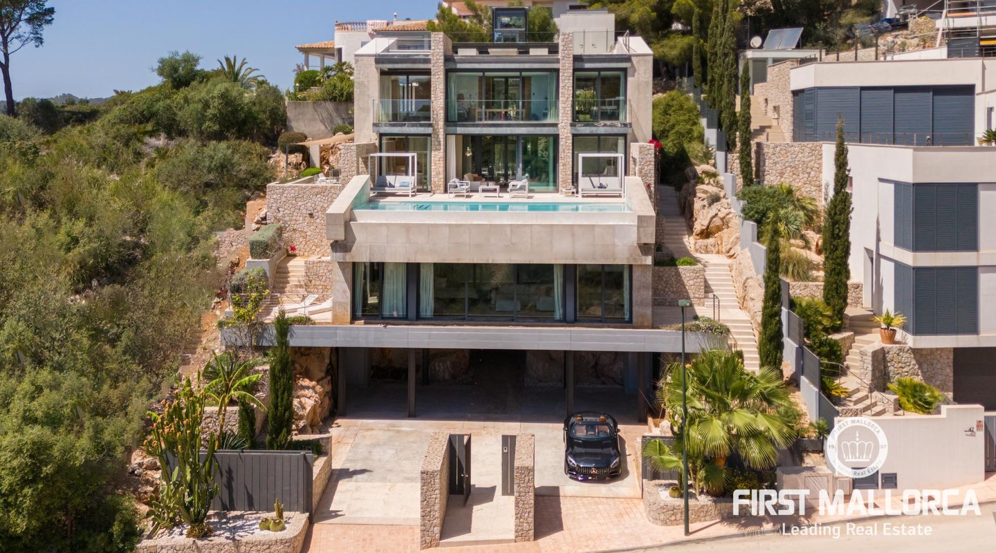 Вилла была построена в 2020 году, имеет 4 этажа и стеклянный лифт, который позволяет добраться до всех этажей. Общая площадь дома составляет 544 м2, из которых 251 м2 приходится на различные террасы на всех уровнях дома и крышу/солярий с потрясающим, панорамным и беспрепятственным видом на море.