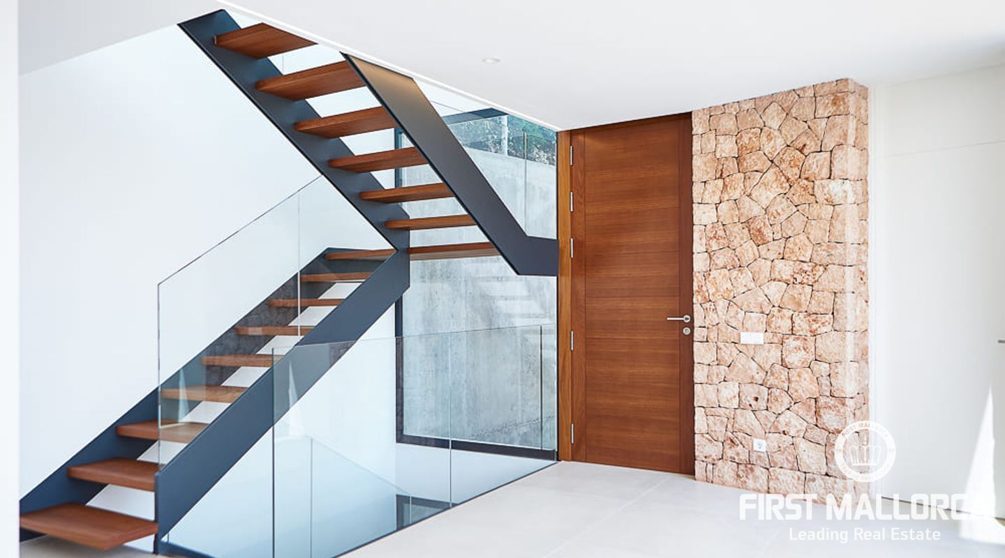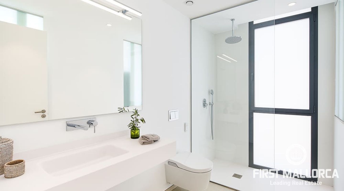 Гараж на 3 автомобиля расположен на цокольном этаже, где также есть тренажерный зал, винный погреб, прачечная и несколько кладовых. Имеется дополнительная внешняя парковка еще для 2 автомобилей. Дополнительные характеристики этой великолепной новой виллы на Майорке включают в себя кондиционер горячего/холодного воздуха, подогрев полов, лифт и каменные полы.