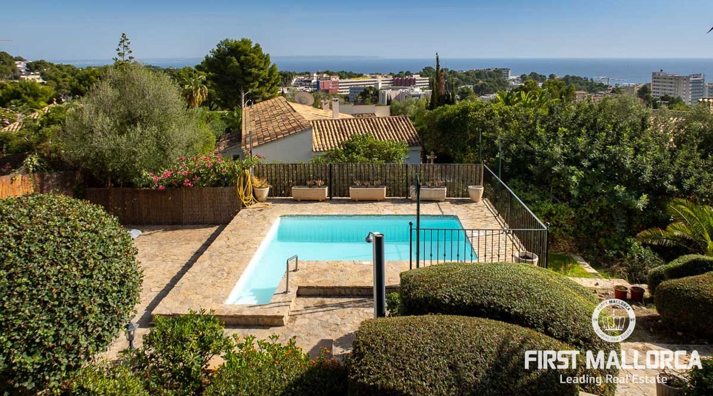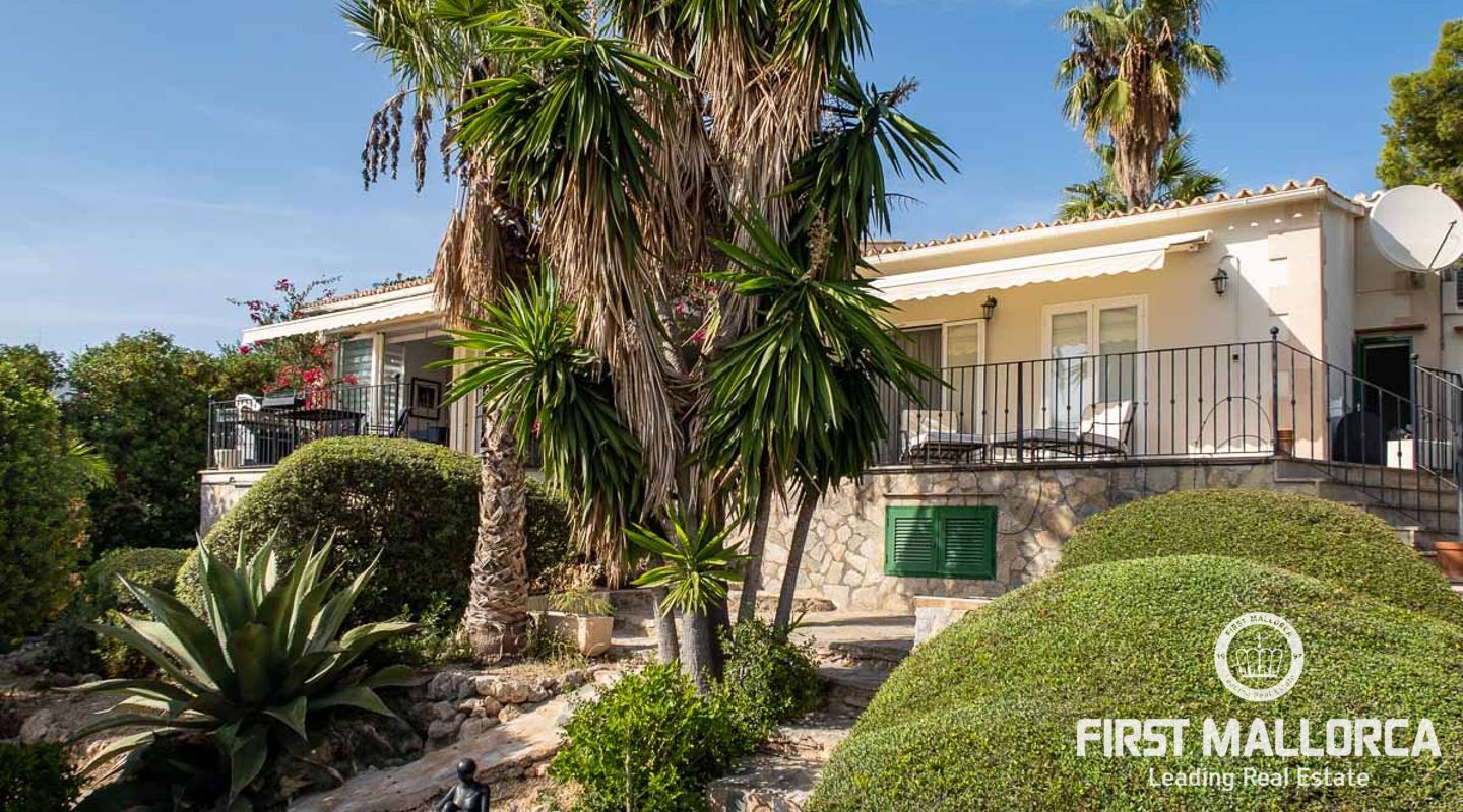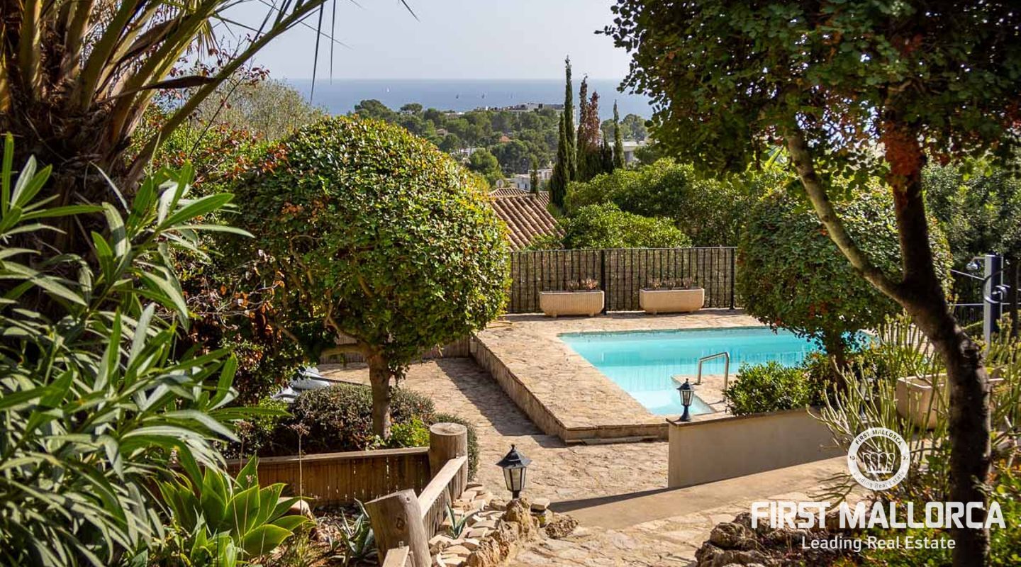 Вилла с 3 спальнями в стиле бунгало, расположенная в прекрасном зрелом саду, с великолепным видом на море и частным бассейном с подогревом. Вилла расположена в нескольких минутах ходьбы от Пуэрто Порталс, есть возможность построить еще один уровень над существующей постройкой, превратив виллу в просторное семейное жилище.