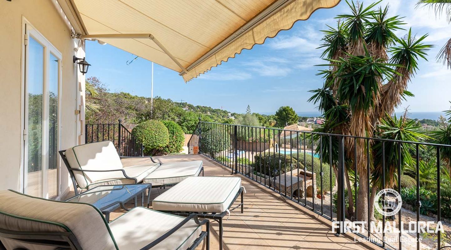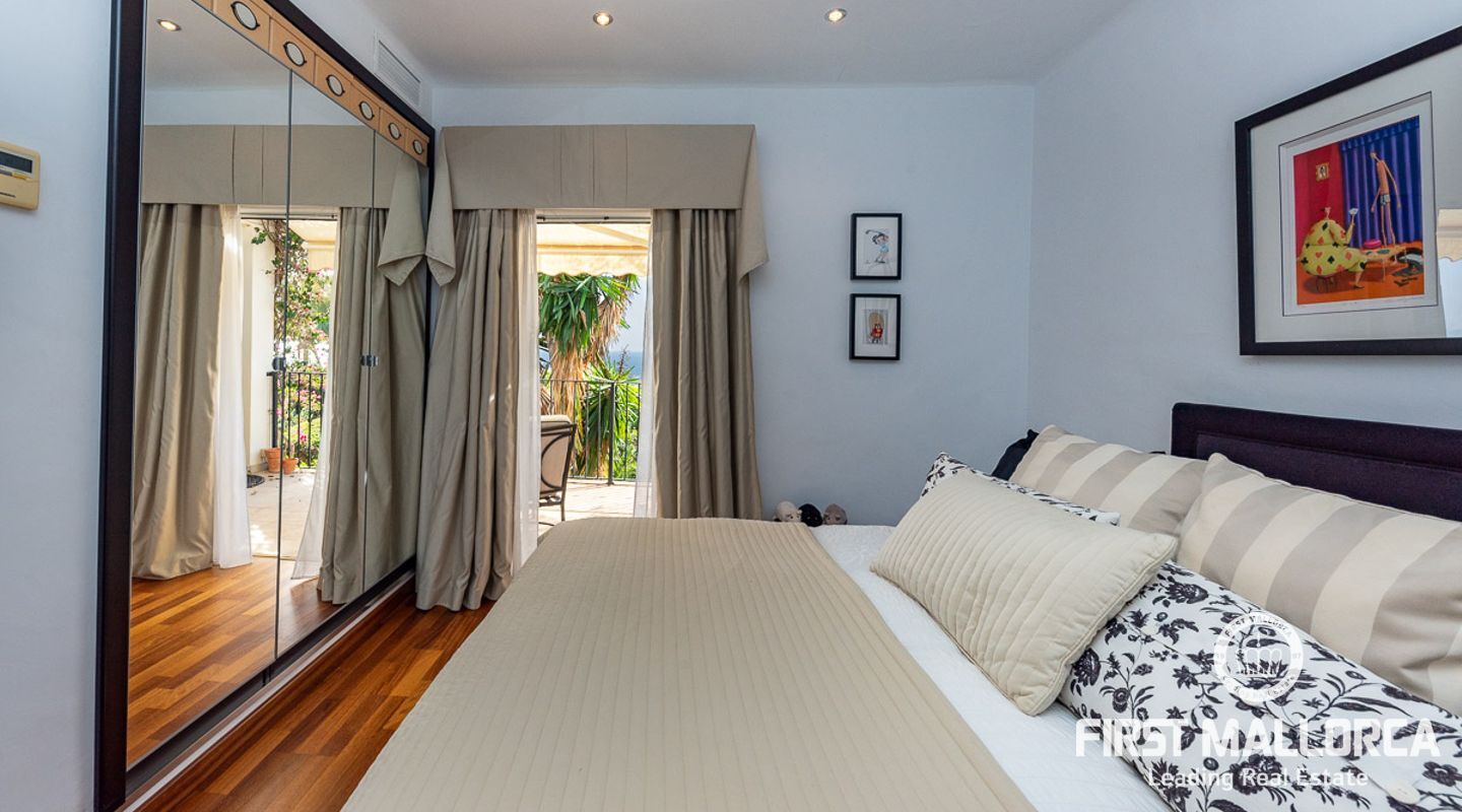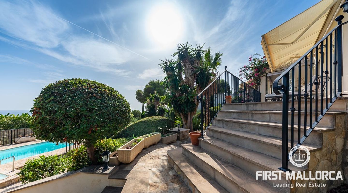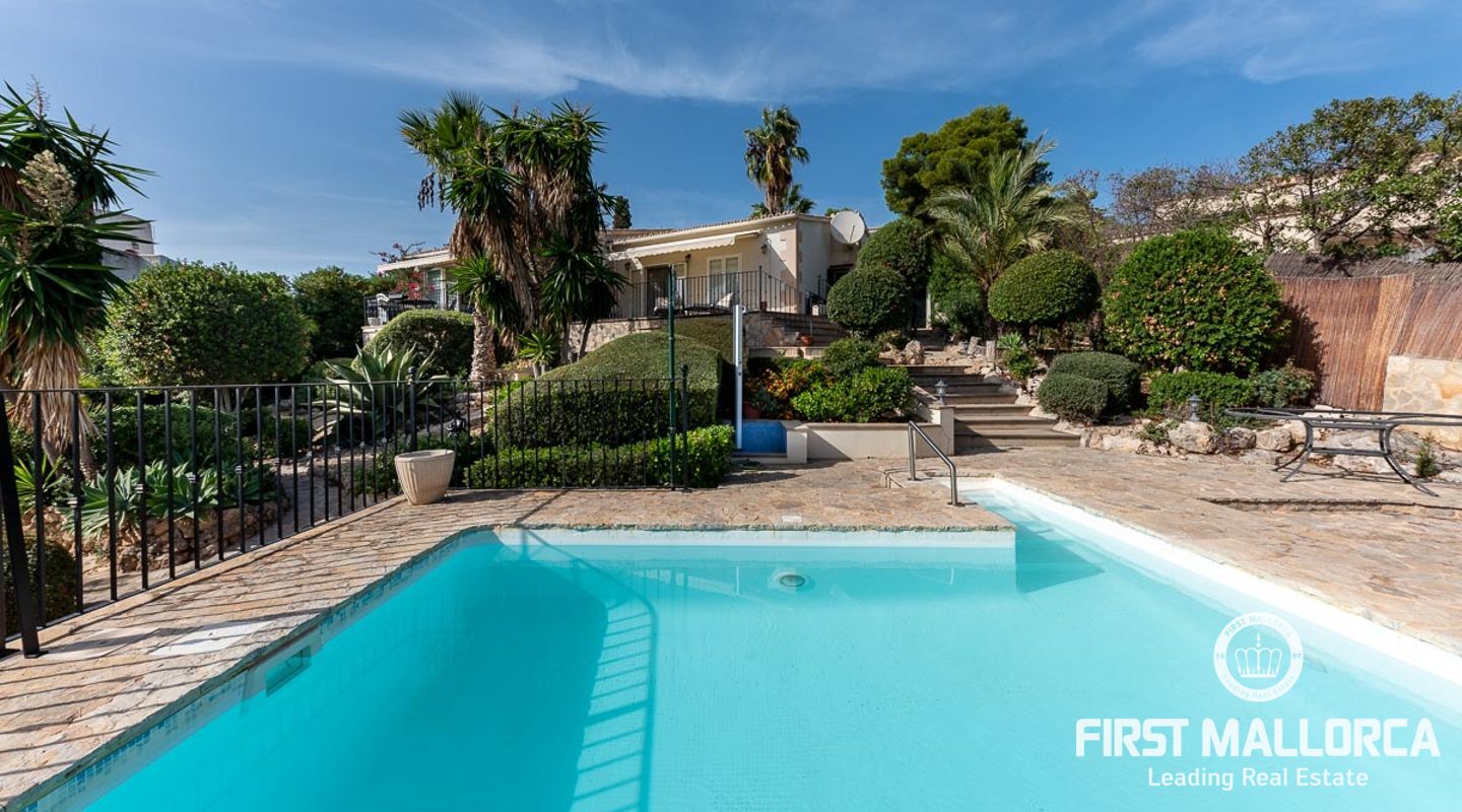 Вилла с 3 спальнями в стиле бунгало, расположенная в прекрасном зрелом саду, с великолепным видом на море и частным бассейном с подогревом. Вилла расположена в нескольких минутах ходьбы от Пуэрто Порталс, есть возможность построить еще один уровень над существующей постройкой, превратив виллу в просторное семейное жилище.