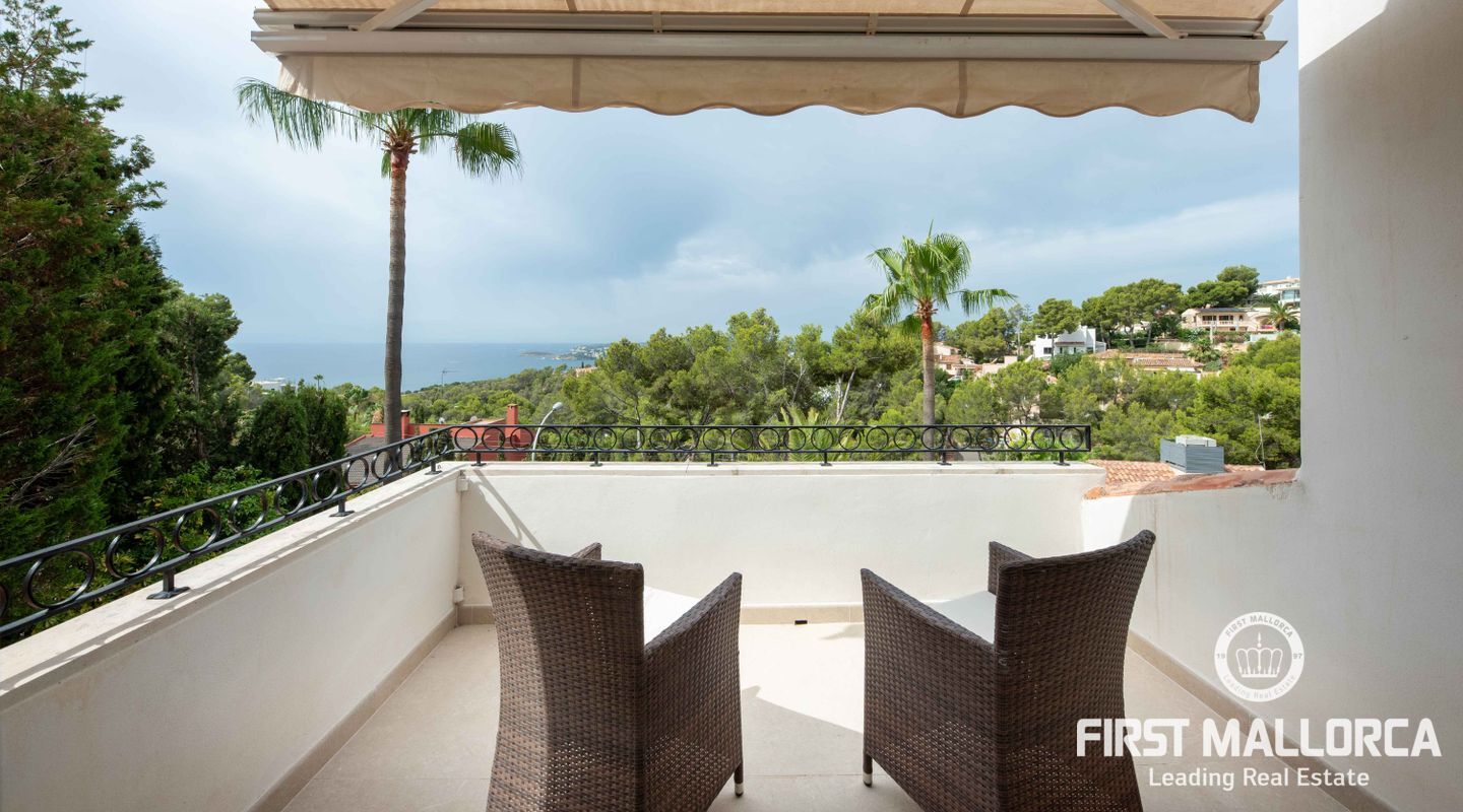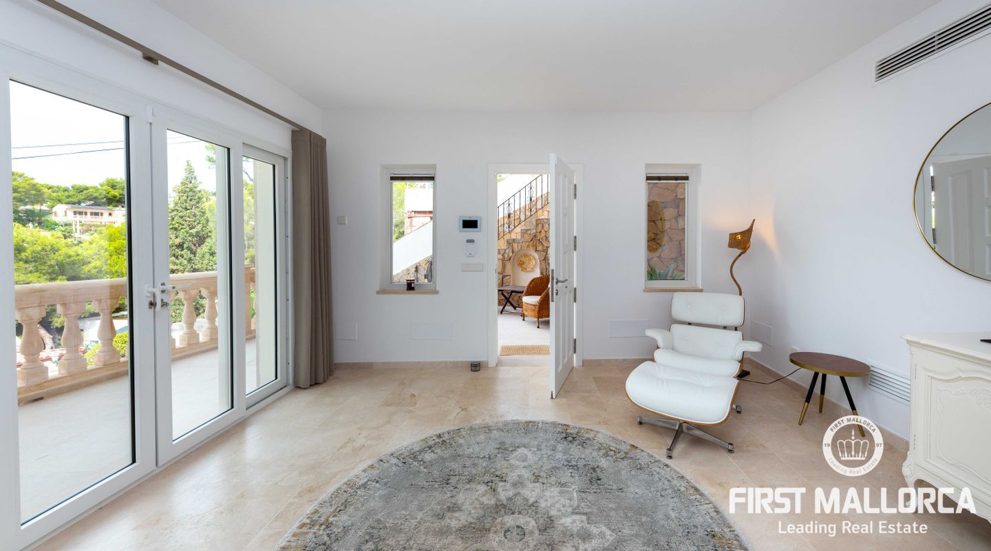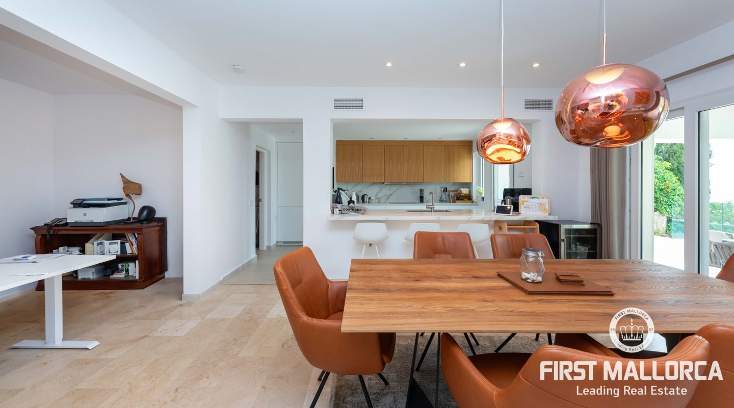 Эта прекрасная вилла с видом на море в Коста ден Бланес была полностью реконструирована и приглашает насладиться средиземноморским климатом благодаря просторным террасам с видом на море, частному бассейну и красивому саду. Вилла расположена на возвышенности в юго-западном направлении, откуда открывается прекрасный вид на море, курорт и бухту Пальманова. Войдя в виллу, вы попадаете в просторную гостиную/столовую с камином и прямым выходом на большую террасу и бассейн. Полностью оборудованная кухня имеет прилегающее подсобное помещение и прямой выход на террасу и площадку для барбекю. На этом уровне находится гардеробная и прямой выход в гараж на три машины. На верхнем этаже расположены 4 спальни с двуспальными кроватями, все с ванными комнатами, гардеробными или встроенными шкафами, а три из них имеют выход на террасу. Особенностью дома является романтическая терраса с настилом на закате в верхней части сада, откуда открывается панорамный вид на залив Пальманова и открытое море. Коста ден Бланес - привилегированный жилой район с круглосуточной охраной, частной парковкой рядом с пляжем и доступом к некоторым из самых красивых горных троп для треккинга. В районе есть несколько частных школ, а также легкий доступ ко всем услугам в деревнях Порталс Нус и Пальманова. До международного аэропорта и центра города Пальма можно добраться менее чем за 15 минут на машине.