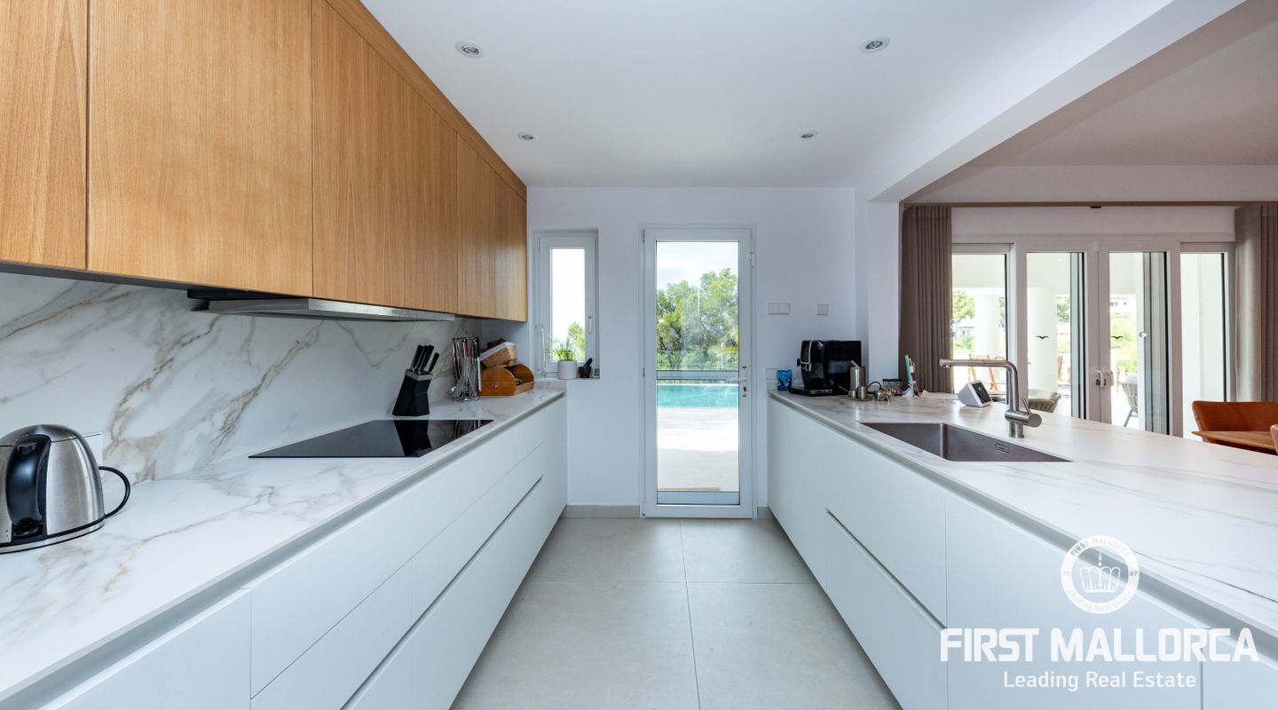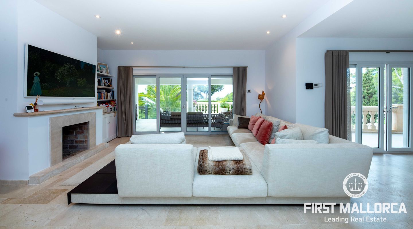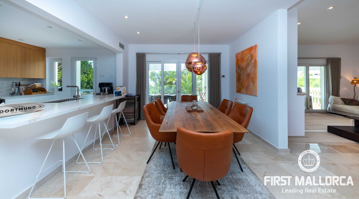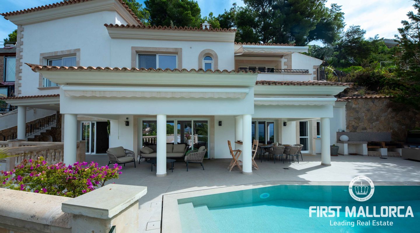 Эта прекрасная вилла с видом на море в Коста ден Бланес была полностью реконструирована и приглашает насладиться средиземноморским климатом благодаря просторным террасам с видом на море, частному бассейну и красивому саду. Вилла расположена на возвышенности в юго-западном направлении, откуда открывается прекрасный вид на море, курорт и бухту Пальманова. Войдя в виллу, вы попадаете в просторную гостиную/столовую с камином и прямым выходом на большую террасу и бассейн. Полностью оборудованная кухня имеет прилегающее подсобное помещение и прямой выход на террасу и площадку для барбекю. На этом уровне находится гардеробная и прямой выход в гараж на три машины. На верхнем этаже расположены 4 спальни с двуспальными кроватями, все с ванными комнатами, гардеробными или встроенными шкафами, а три из них имеют выход на террасу. Особенностью дома является романтическая терраса с настилом на закате в верхней части сада, откуда открывается панорамный вид на залив Пальманова и открытое море. Коста ден Бланес - привилегированный жилой район с круглосуточной охраной, частной парковкой рядом с пляжем и доступом к некоторым из самых красивых горных троп для треккинга. В районе есть несколько частных школ, а также легкий доступ ко всем услугам в деревнях Порталс Нус и Пальманова. До международного аэропорта и центра города Пальма можно добраться менее чем за 15 минут на машине.