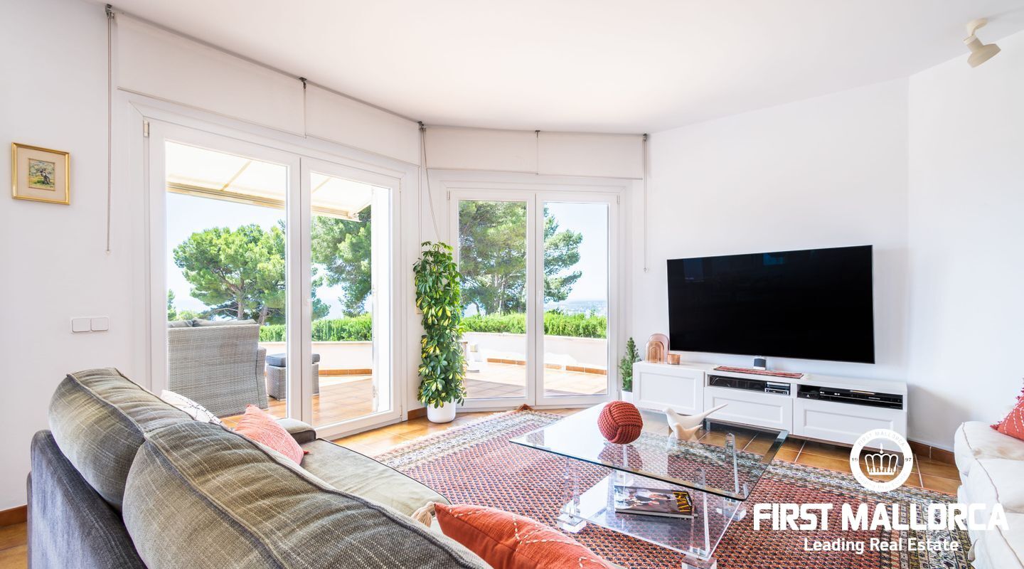 Вилла с видом на море, построенная на возвышенном участке площадью 825 м2, общей площадью 266,42 м², предлагает невероятные панорамные виды 180º от Пальмы до залива Пальманова из большинства комнат и с террас. Вилла состоит из гостиной с камином и обеденной зоной, светлой кухни, 4 спален с двуспальными кроватями, 1 отдельной спальни, 2 полных ванных комнат и гостевого туалета. Особого внимания заслуживает главная спальня с террасой и ванной комнатой.