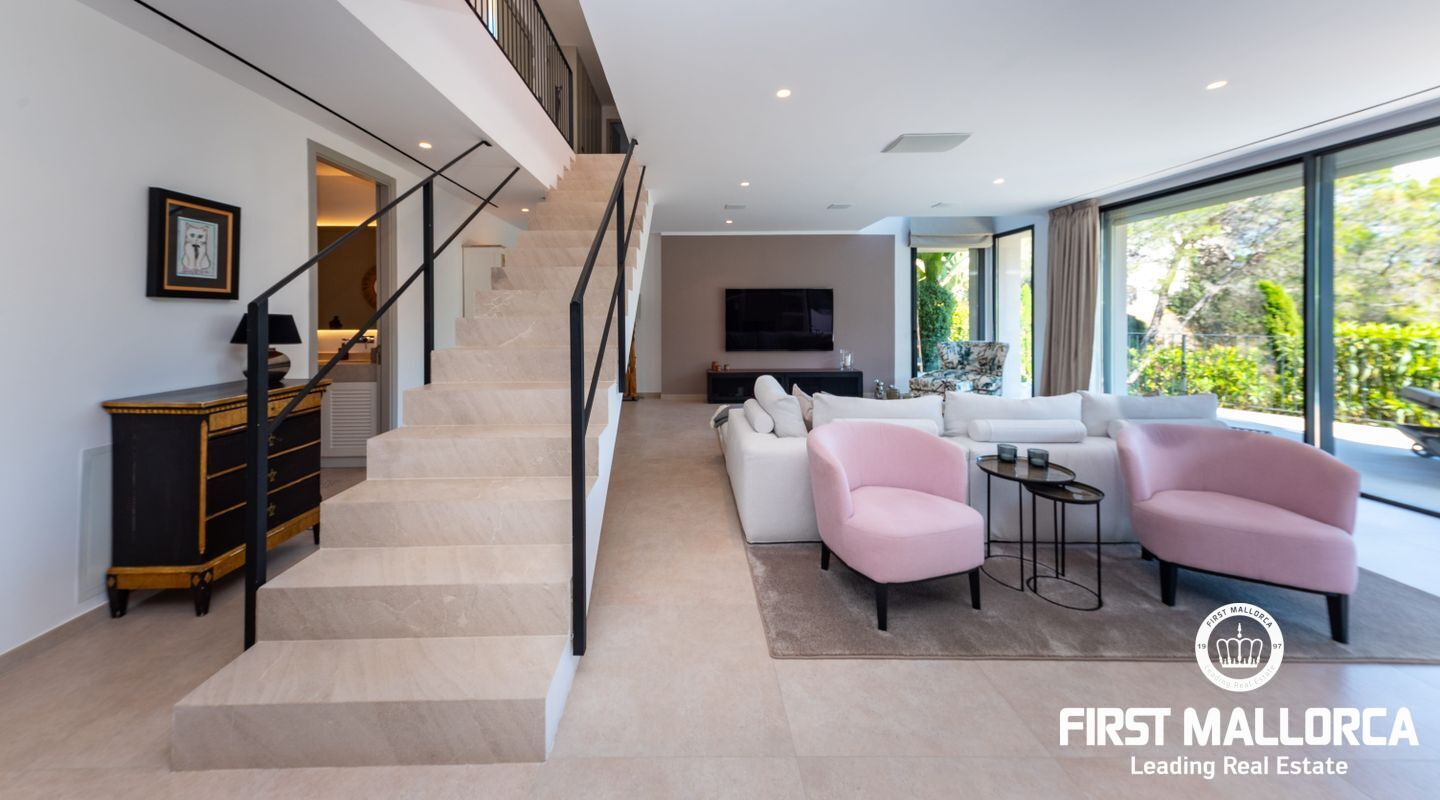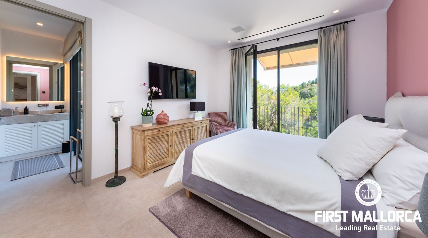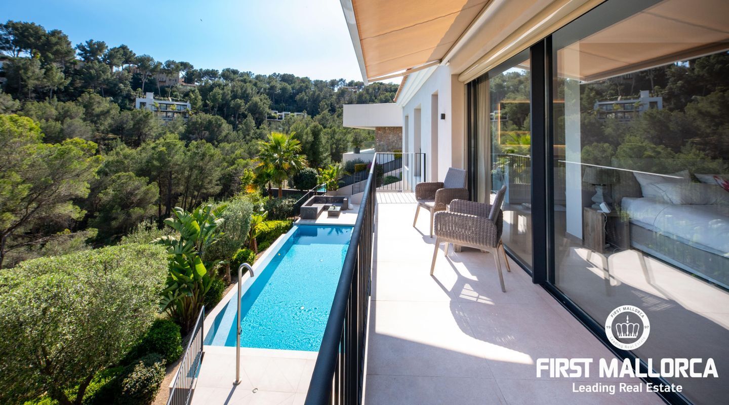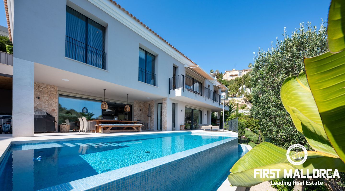 В эксклюзивном жилом районе Коста д'эн Бланес, над известной пристанью для яхт Пуэрто Порталс, продается недавно построенная вилла класса люкс.