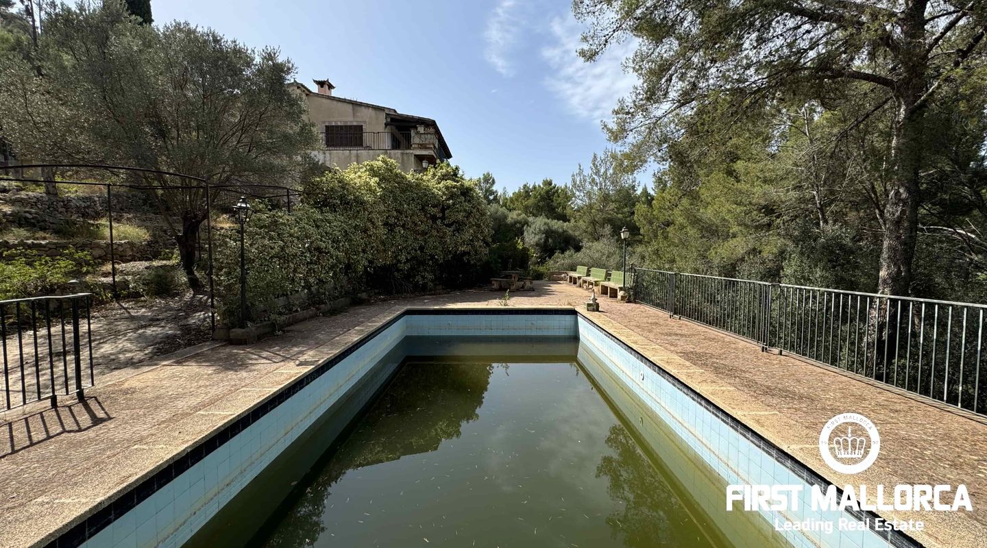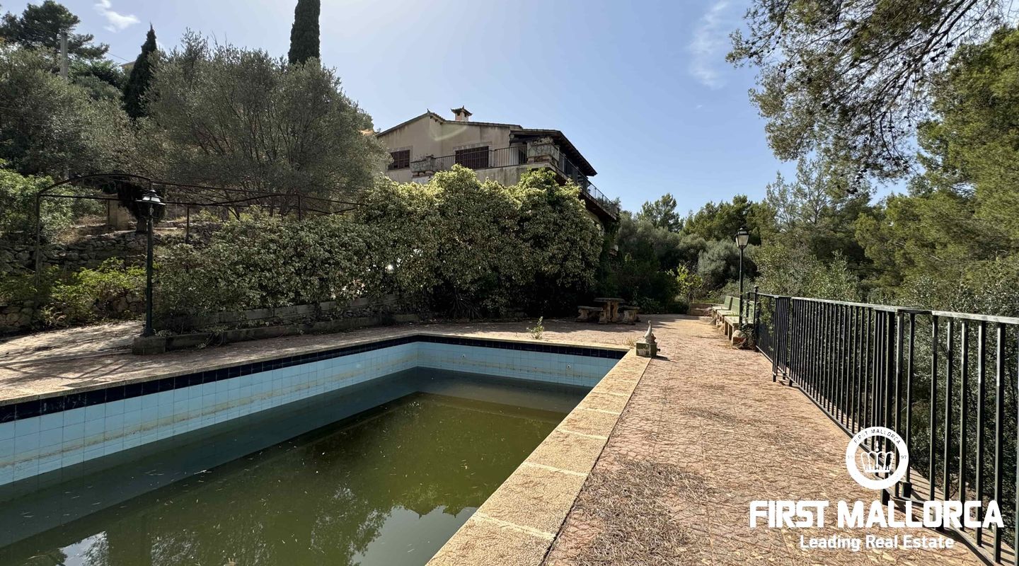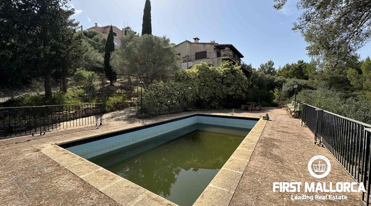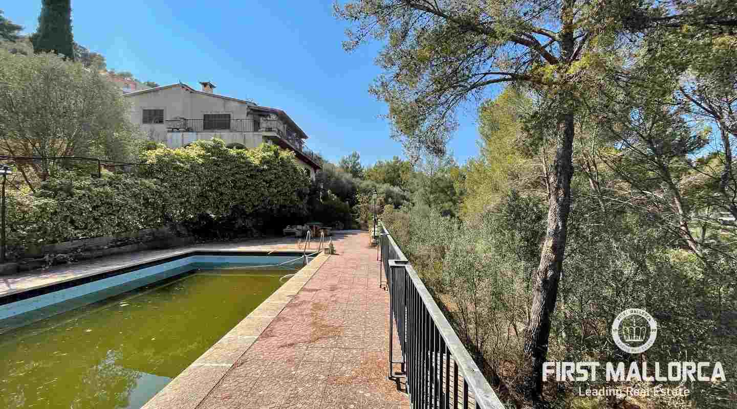 На верхнем этаже находится гостиная-столовая с камином, кухня, 2 ванные комнаты и 4 спальни. Из столовой у вас есть выход на большую террасу с видом на бассейн и окружающие горы. На нижнем этаже большая комната с возможностями. Поскольку дом требует капитального ремонта, возможен передел по вкусу. На территории есть большой сад и большой бассейн. Идеальный дом для семей, которые хотят жить в тихом месте недалеко от Пальмы.