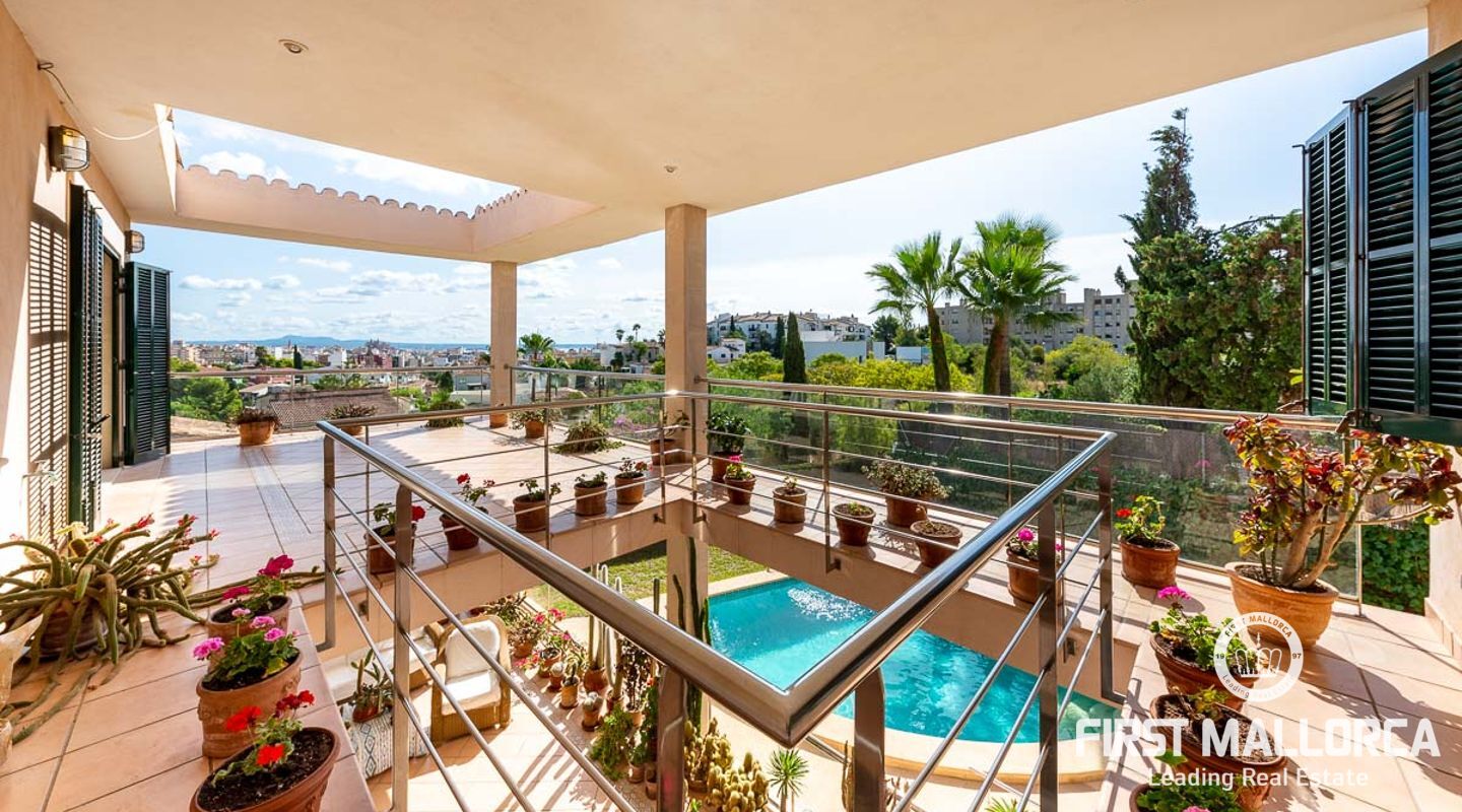 Дом расположен в тихом месте в одном из самых привлекательных жилых районов Пальмы, Сон Дурета. Всего в нескольких минутах ходьбы от лучших школ Майорки и центра Пальмы, вилла предлагает большие площади для всей семьи и прекрасный панорамный вид на город и Кафедральный собор. Построенная в 2000 году нынешними владельцами, вилла состоит из 3 этажей, на главном этаже находятся гостиная-столовая и кухня, обе с прямым выходом на большую террасу, откуда есть доступ к бассейну и саду. На втором этаже расположены 4 спальни, 3 ванные комнаты и вторая большая терраса с выходом из двух спален. А в подвале есть гараж на 4 машины и отдельное дополнительное помещение, идеально подходящее для офиса, тренажерного зала или даже гостевой зоны, так как на этом этаже также есть полноценная ванная комната. Пожалуйста, свяжитесь с нами для получения дополнительной информации и/или для посещения объекта.