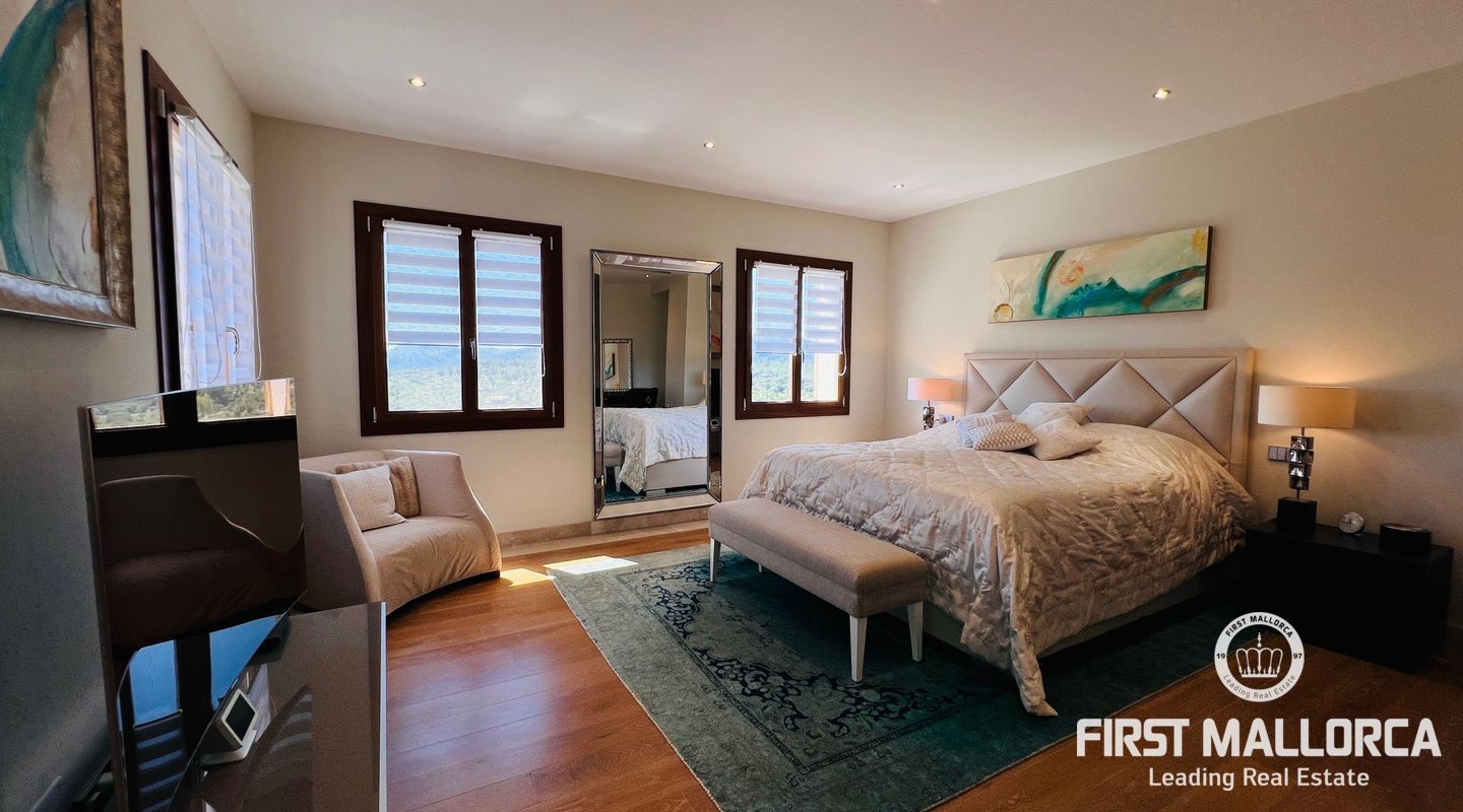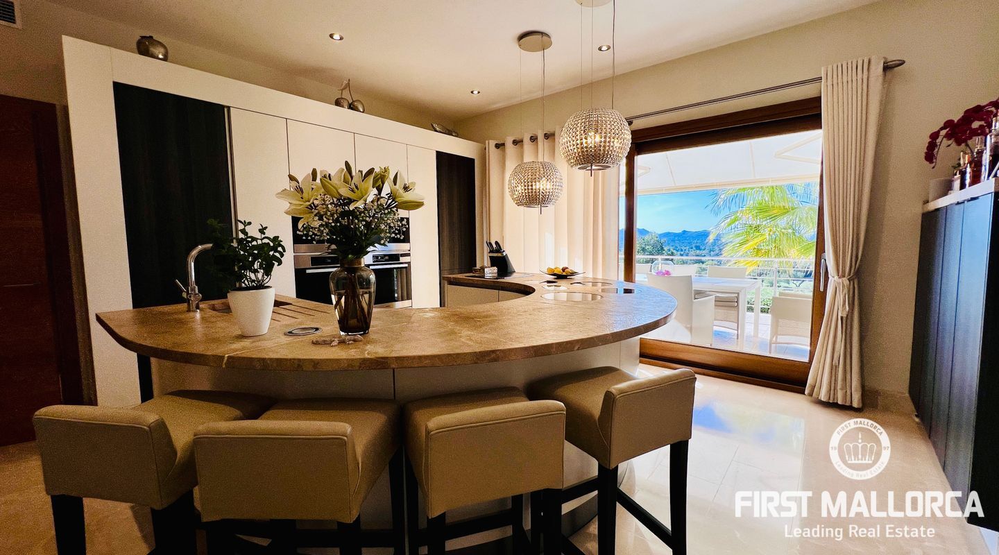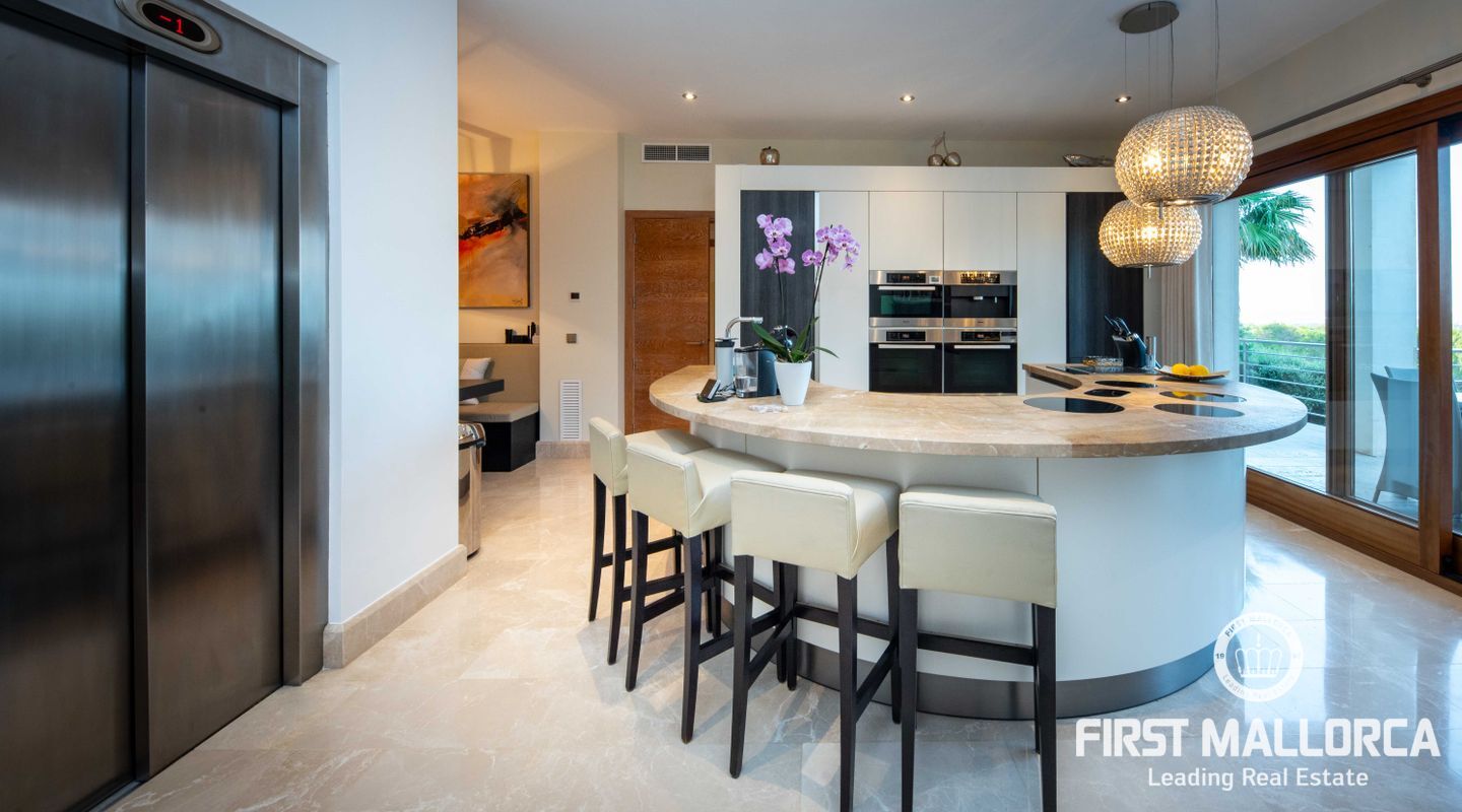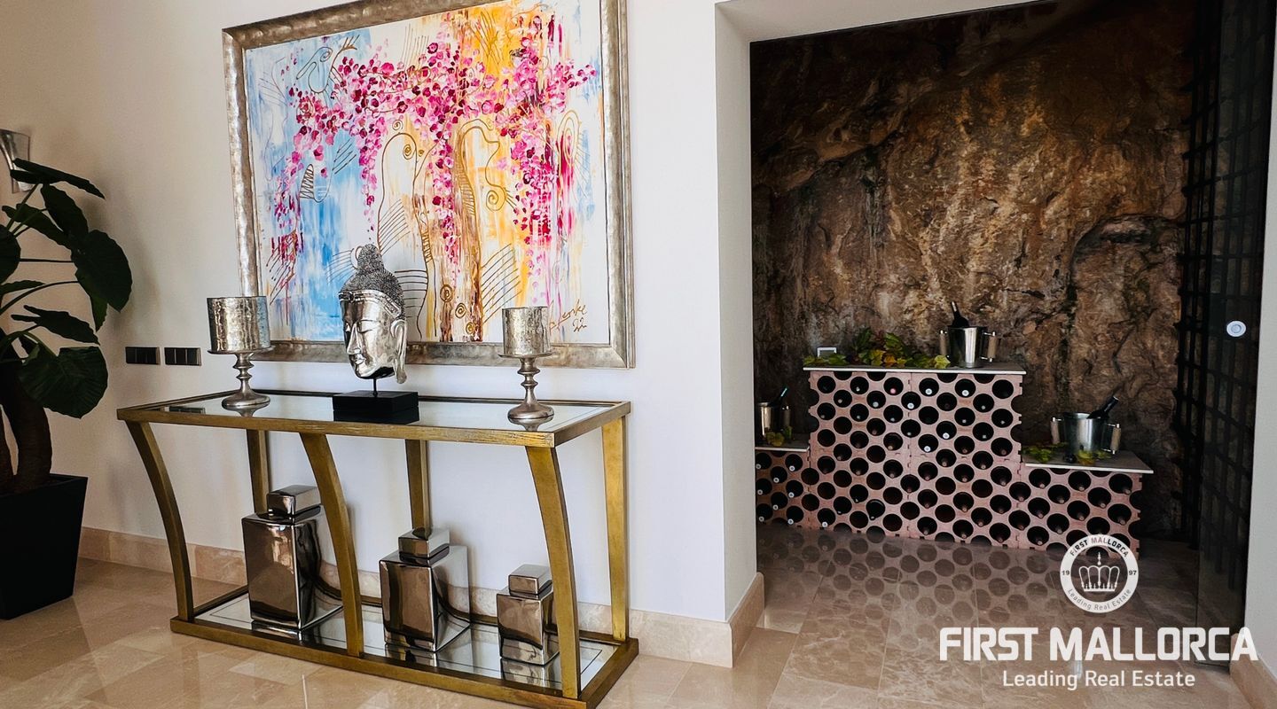 Продается один из самых впечатляющих, безупречно ухоженных объектов недвижимости класса люкс на севере Майорки. Стильная, полностью оборудованная дизайнерская вилла с панорамным видом на поле для гольфа и заливы Полленса и Алькудия. Эта исключительная вилла сочетает в себе самые современные технологии, лучшие материалы и изысканный дизайн в идеальном месте, всего в 1 минуте от поля для гольфа, в 3 минутах от Полленса и в 10 минутах от песчаного пляжа в Пуэрто-Полленса. Основные преимущества этой недвижимости: Роскошное жилое пространство с высококачественной отделкой на всех уровнях. Незакрываемый вид на поле для гольфа и море. Безбарьерный доступ на все этажи с помощью лифта. Потрясающий, ничем не загороженный вид. Подогреваемый пейзажный бассейн (5x10 м) с электрическим покрытием (с тепловым насосом). Эксклюзивный оазис здоровья с паровой сауной и джакузи. Современные строительные технологии, полное кондиционирование воздуха, система умного дома KNX и подогрев пола во всех жилых помещениях. Дизайнерская кухня внутри и полностью оборудованная летняя кухня с большим грилем, холодильником и посудомоечной машиной. Великолепный винный погреб, вырезанный в скале, настоящая изюминка для ценителей. Настоящие деревянные двери из массива дуба и другие высококачественные столярные изделия. Эта вилла предлагается полностью меблированной изысканной дизайнерской мебелью и современной развлекательной электроникой. Просторный гараж на три автомобиля. Эта недвижимость является настоящим шедевром архитектуры, идеально подходящим для взыскательных покупателей, ищущих комфорт, уединение и высочайшее качество жизни.