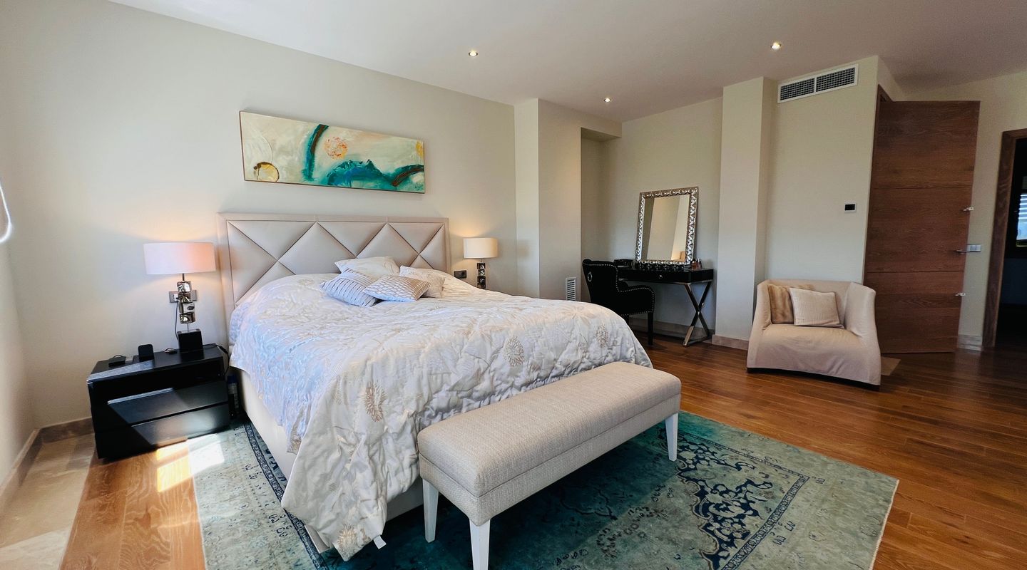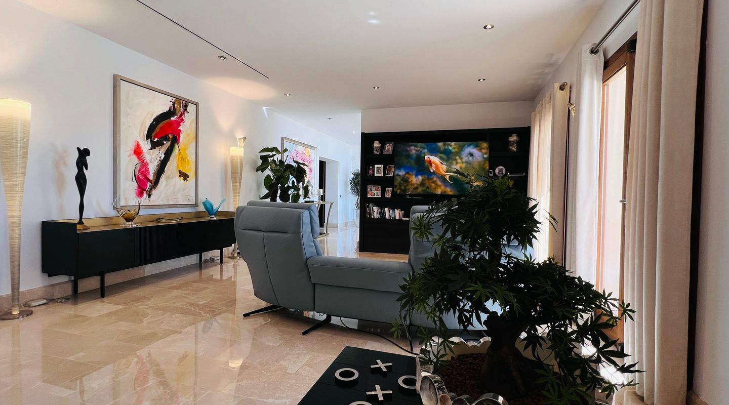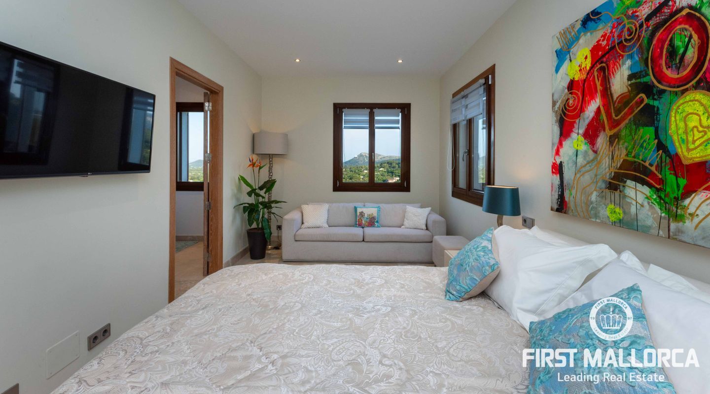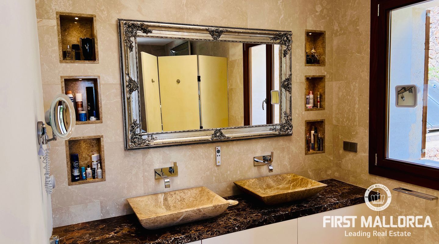 Продается один из самых впечатляющих, безупречно ухоженных объектов недвижимости класса люкс на севере Майорки. Стильная, полностью оборудованная дизайнерская вилла с панорамным видом на поле для гольфа и заливы Полленса и Алькудия. Эта исключительная вилла сочетает в себе самые современные технологии, лучшие материалы и изысканный дизайн в идеальном месте, всего в 1 минуте от поля для гольфа, в 3 минутах от Полленса и в 10 минутах от песчаного пляжа в Пуэрто-Полленса. Основные преимущества этой недвижимости: Роскошное жилое пространство с высококачественной отделкой на всех уровнях. Незакрываемый вид на поле для гольфа и море. Безбарьерный доступ на все этажи с помощью лифта. Потрясающий, ничем не загороженный вид. Подогреваемый пейзажный бассейн (5x10 м) с электрическим покрытием (с тепловым насосом). Эксклюзивный оазис здоровья с паровой сауной и джакузи. Современные строительные технологии, полное кондиционирование воздуха, система умного дома KNX и подогрев пола во всех жилых помещениях. Дизайнерская кухня внутри и полностью оборудованная летняя кухня с большим грилем, холодильником и посудомоечной машиной. Великолепный винный погреб, вырезанный в скале, настоящая изюминка для ценителей. Настоящие деревянные двери из массива дуба и другие высококачественные столярные изделия. Эта вилла предлагается полностью меблированной изысканной дизайнерской мебелью и современной развлекательной электроникой. Просторный гараж на три автомобиля. Эта недвижимость является настоящим шедевром архитектуры, идеально подходящим для взыскательных покупателей, ищущих комфорт, уединение и высочайшее качество жизни.