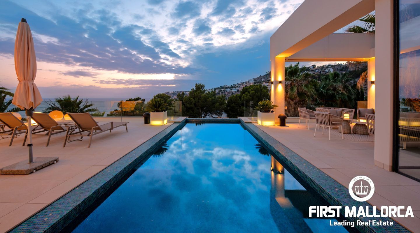 Эта особенная вилла с 5 спальнями и 6 ванными комнатами расположена в популярном жилом районе Кала Льямп в Порт Андрач. Вилла продумана до мельчайших деталей. Красивый пейзажный бассейн расположен на жилом этаже и окружен просторной террасой, с которой открывается захватывающий вид на море. Есть внутренний дворик и очень зеленая открытая площадка - оба тенистые и приятно прохладные в летние месяцы.