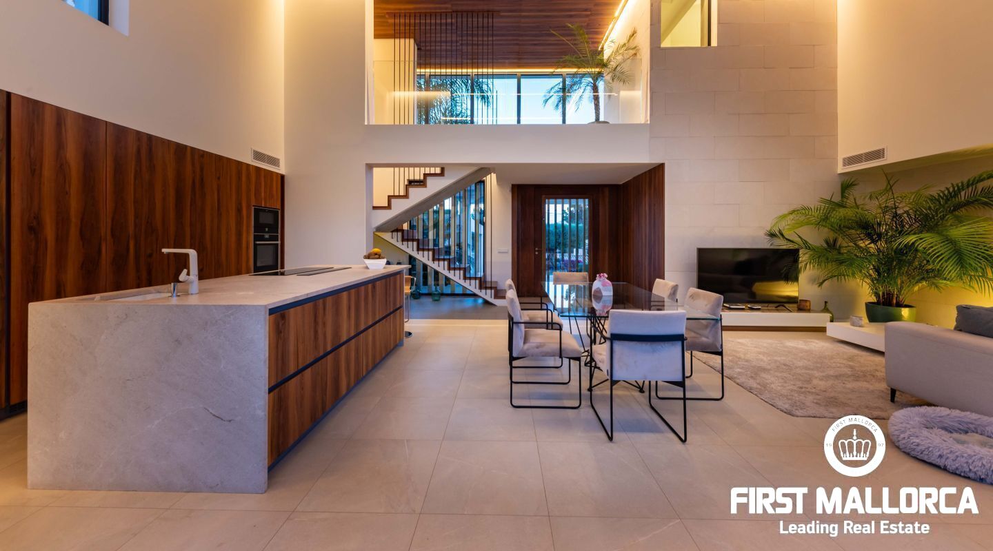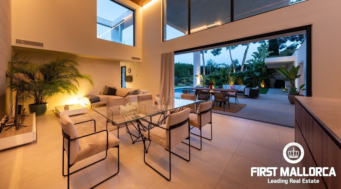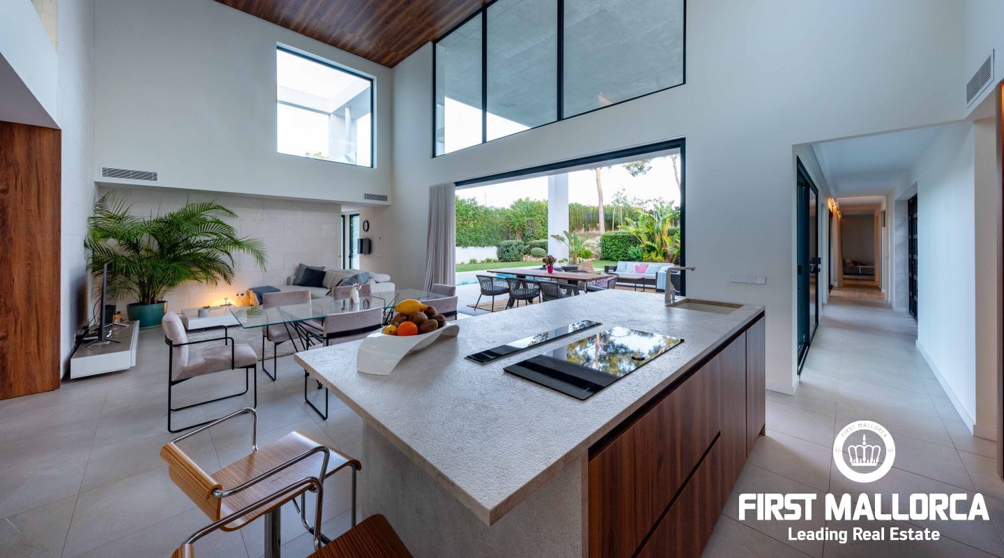 Участок расположен между Санта-Понсой и Коста-де-ла-Кальма, его площадь составляет 1,524 м2, поэтому можно добавить еще м2, хотя застроенная площадь уже составляет 391 м2. Как только мы входим на виллу, мы ошеломляемся высотой гостиной с большими окнами, а сад перед нами приглашает нас насладиться бассейном и солнечным светом. Элегантная кухня открытой планировки с бытовой техникой высочайшего качества находится с правой стороны гостиной, а светлый коридор ведет нас в главную спальню с собственной ванной комнатой и гардеробной. Слева находится дополнительная комната, которую можно использовать в качестве офиса.