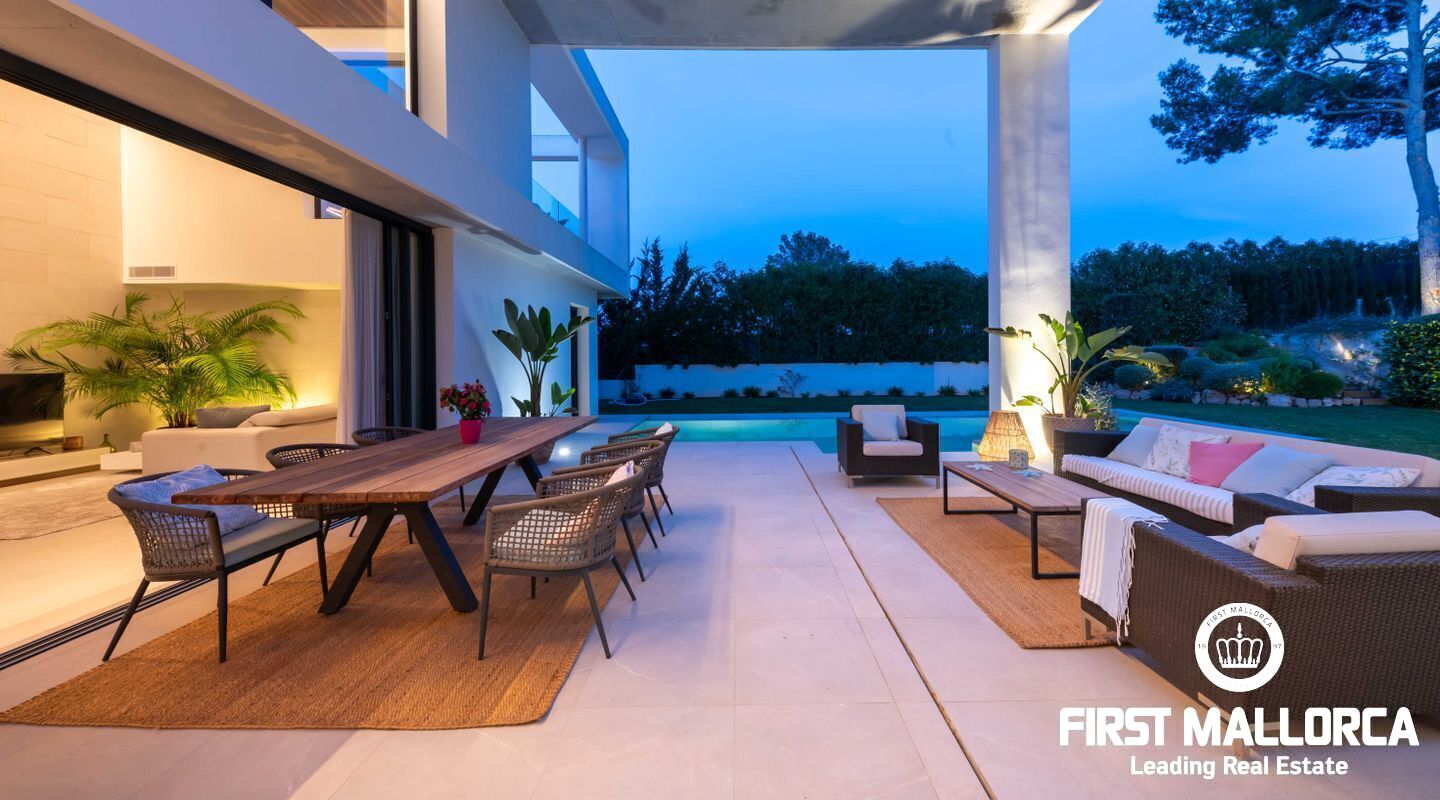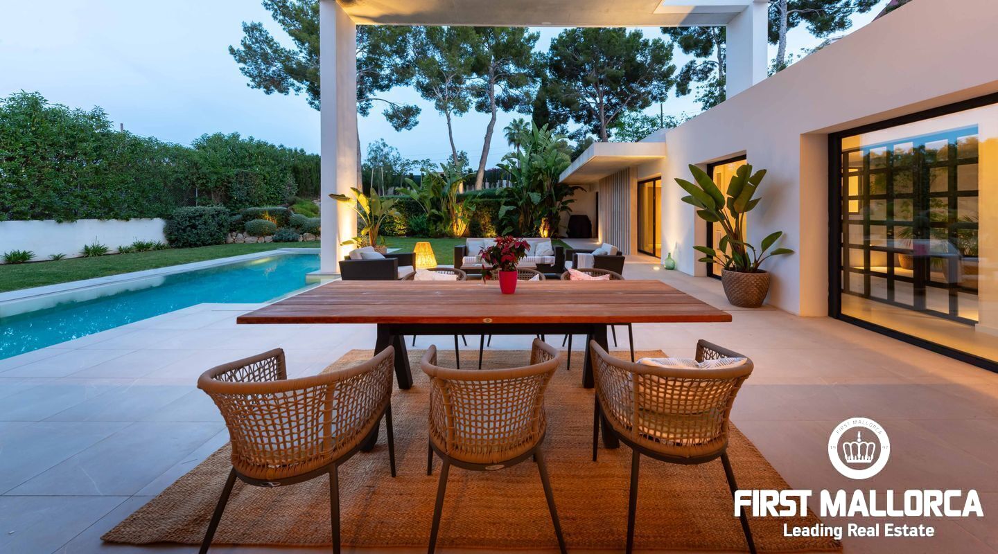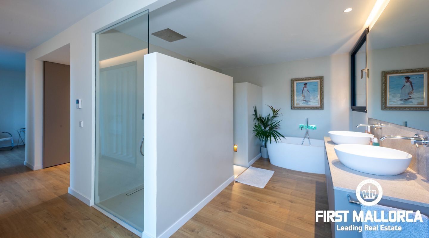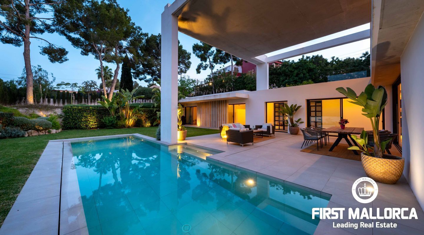 Участок расположен между Санта-Понсой и Коста-де-ла-Кальма, его площадь составляет 1,524 м2, поэтому можно добавить еще м2, хотя застроенная площадь уже составляет 391 м2. Как только мы входим на виллу, мы ошеломляемся высотой гостиной с большими окнами, а сад перед нами приглашает нас насладиться бассейном и солнечным светом. Элегантная кухня открытой планировки с бытовой техникой высочайшего качества находится с правой стороны гостиной, а светлый коридор ведет нас в главную спальню с собственной ванной комнатой и гардеробной. Слева находится дополнительная комната, которую можно использовать в качестве офиса.