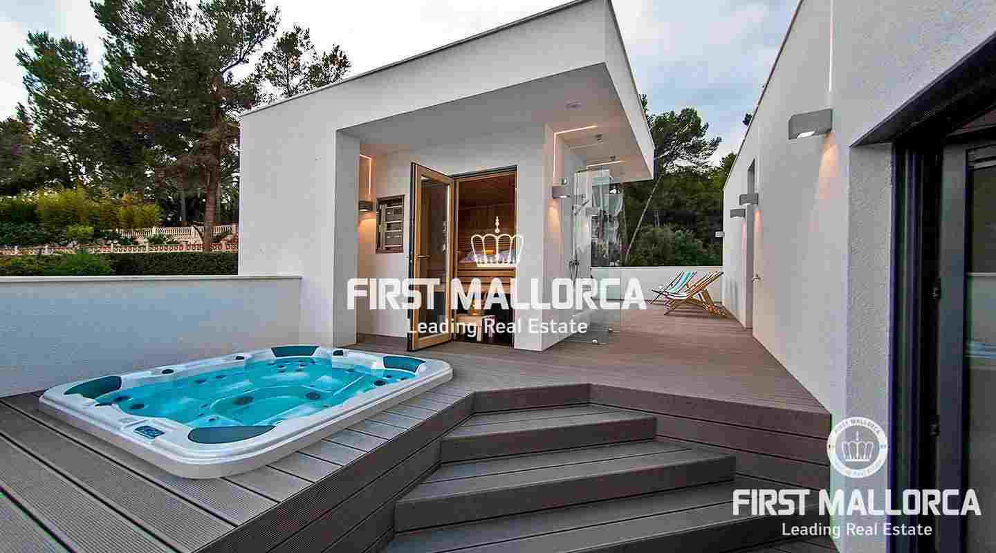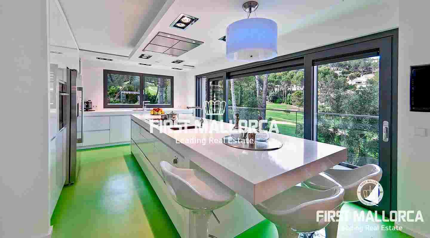 Эта привлекательная вилла на первой линии гольф-поля в Сон Вида была построена с использованием материалов самого высокого стандарта. При входе в дом вы будете очарованы превосходным качеством строительства и беспрепятственным видом на поле для гольфа. На первом этаже расположены элегантная прихожая, просторная гостиная, столовая, дизайнерская кухня, кабинет и две спальни с ванными комнатами. Все они окружают привлекательный внутренний дворик с древним оливковым деревом. Весь верхний этаж отведен под главную спальню, из которой открывается фантастический вид на поле для гольфа на 180º, а также просторную гардеробную с полностью выстроенным встроенным шкафом и элегантную ванную комнату. Комната окружена частными террасами с сауной и гидромассажной ванной. На нижнем этаже расположена независимая гостевая квартира с гостиной, кухней, спальней с собственной ванной комнатой и террасой с видом на поле для гольфа. В качестве альтернативы она может быть использована как просторный офис или фитнес-зона. Дом имеет четкий дизайн и наполнен естественным светом благодаря большим окнам. Прекрасный ландшафтный сад с самоочищающимся бассейном с подогревом и соленой водой, оздоровительный душ, зона барбекю, зона отдыха и двойной гараж дополняют это отличное предложение. Дом может быть полностью меблирован. Если вы хотите получить дополнительную информацию, не стесняйтесь связаться с нами.