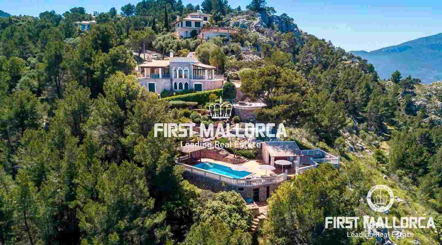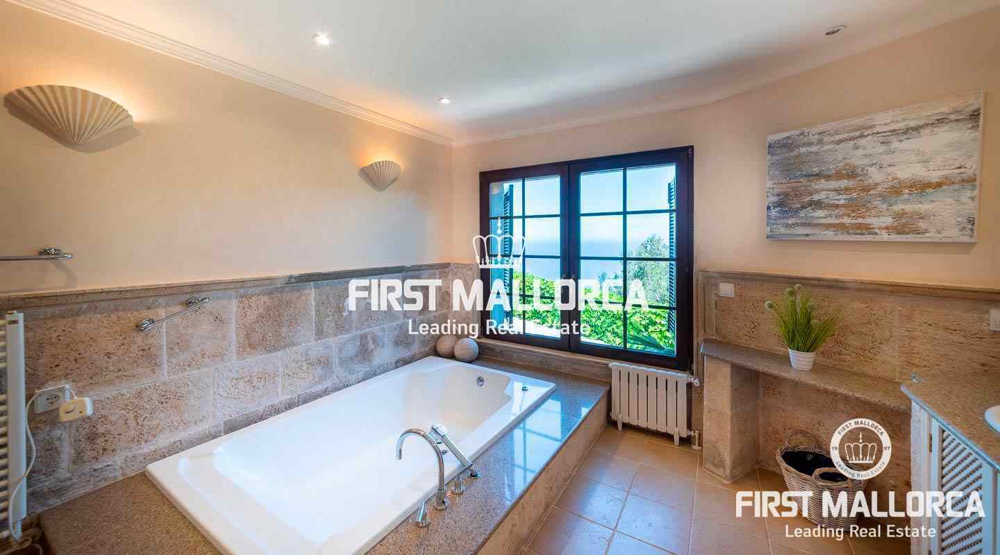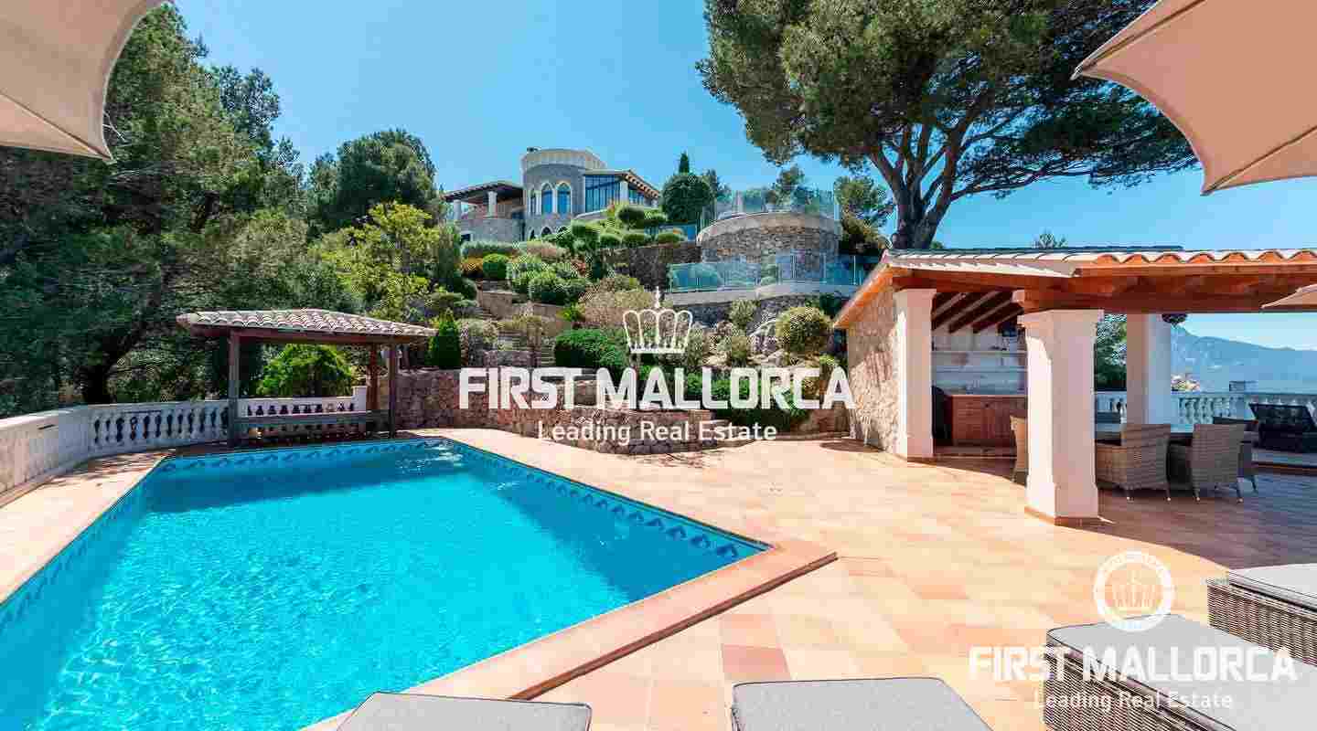 Эта тихая вилла расположена в известной урбанизации "Жорж Санд", в нескольких минутах езды от Вальдемоссы. Площадь дома распределена на двух уровнях следующим образом: круглая гостиная с камином и выходом на закрытую террасу с видом на море и зимний сад, просторная кухня Miele с выходом на крытую террасу с видом на море, столовая, кабинет и гостевой туалет на главном этаже. В подвале находится большая главная спальня с гардеробной и собственной ванной комнатой с душем и ванной, еще две спальни с собственными ванными комнатами и подсобное помещение с выходом на открытую террасу. С этого уровня до двойного гаража всего несколько минут ходьбы. Снаружи разбит красивый сад с несколькими террасами, большим бассейном и крытой летней кухней. Благодаря ориентации на солнце, вы можете наслаждаться фантастическими закатами в течение всего года. Дом мечты в отличном месте.