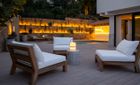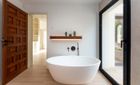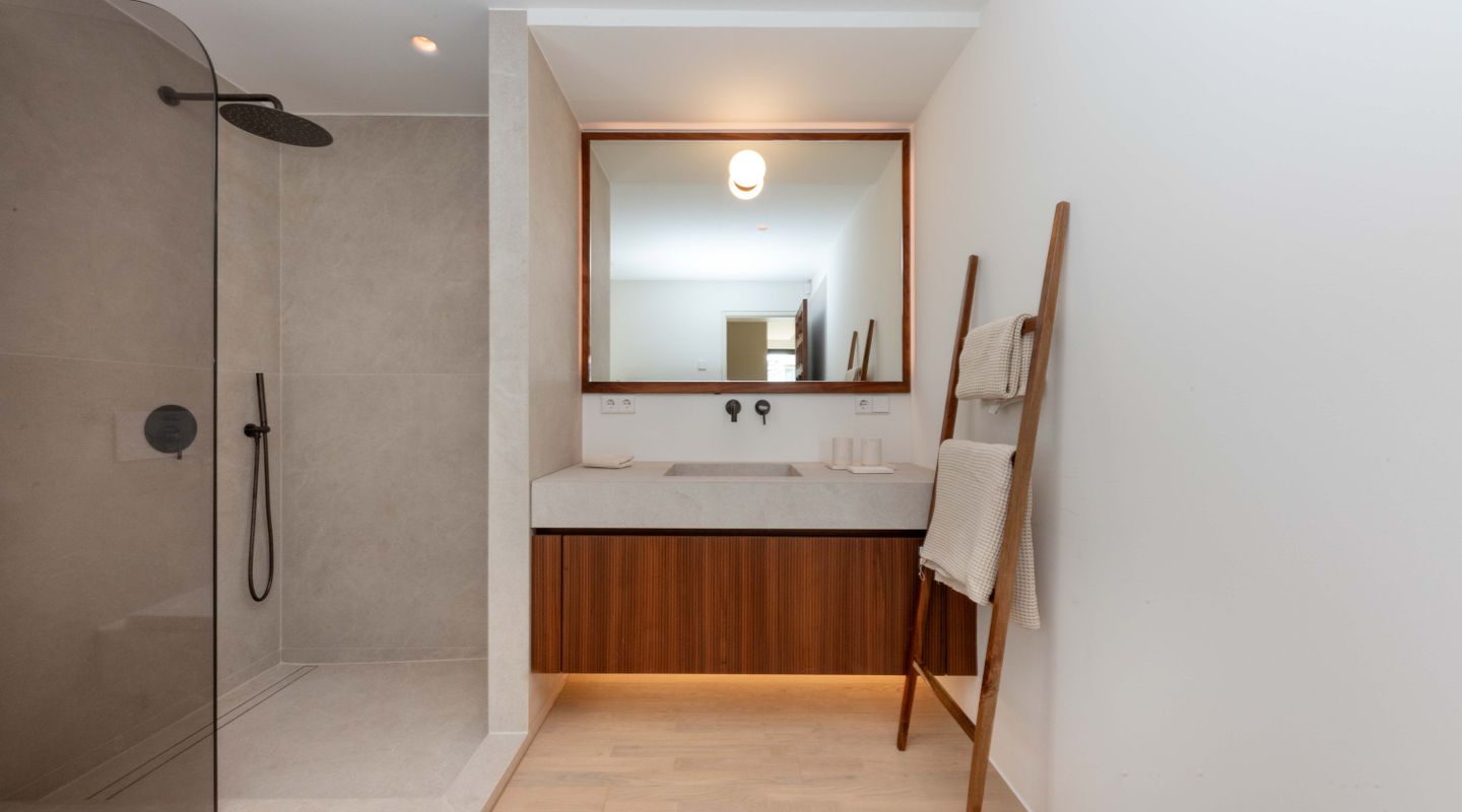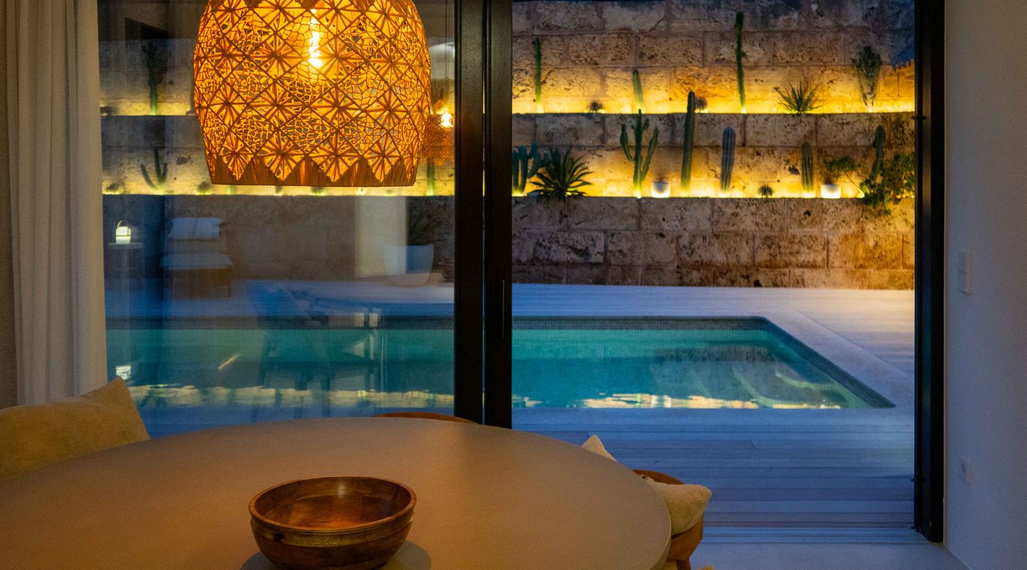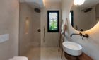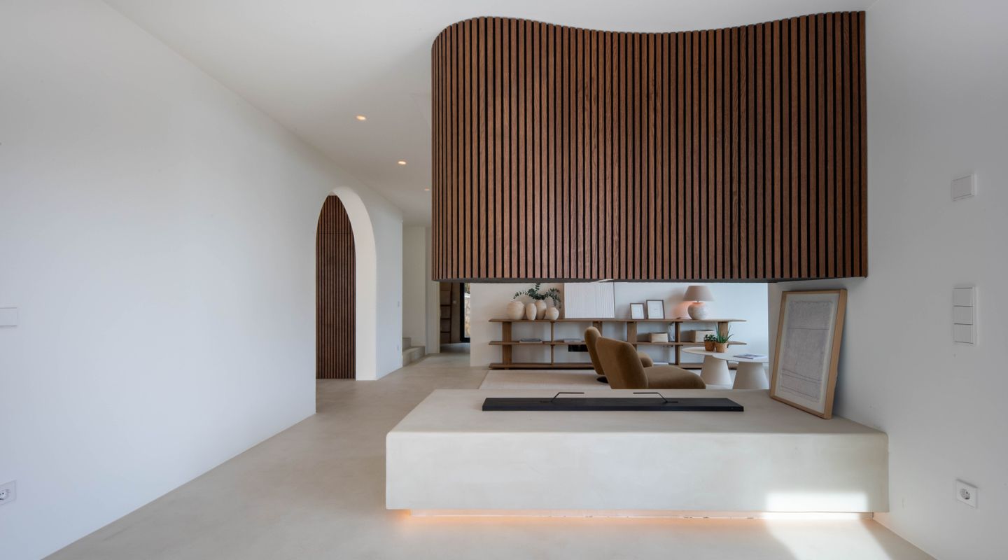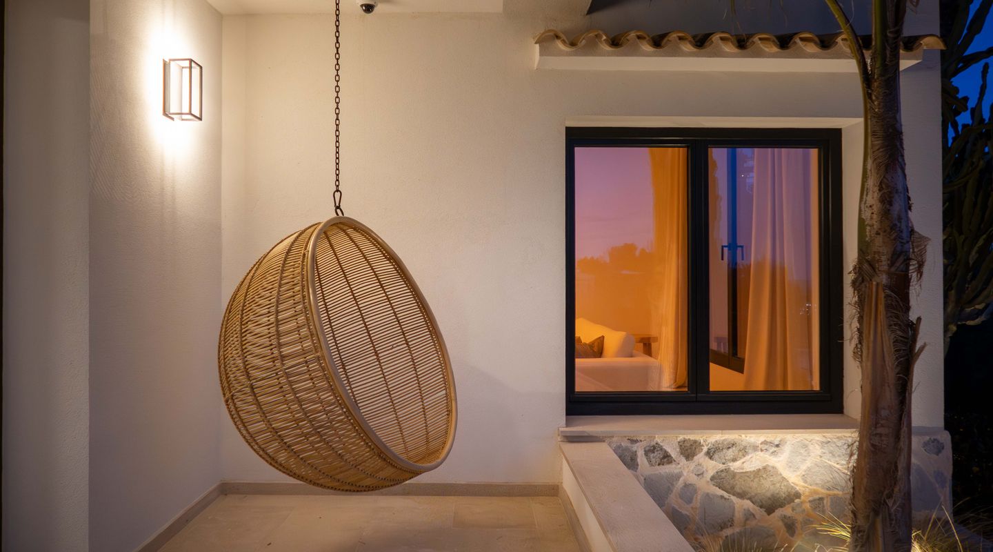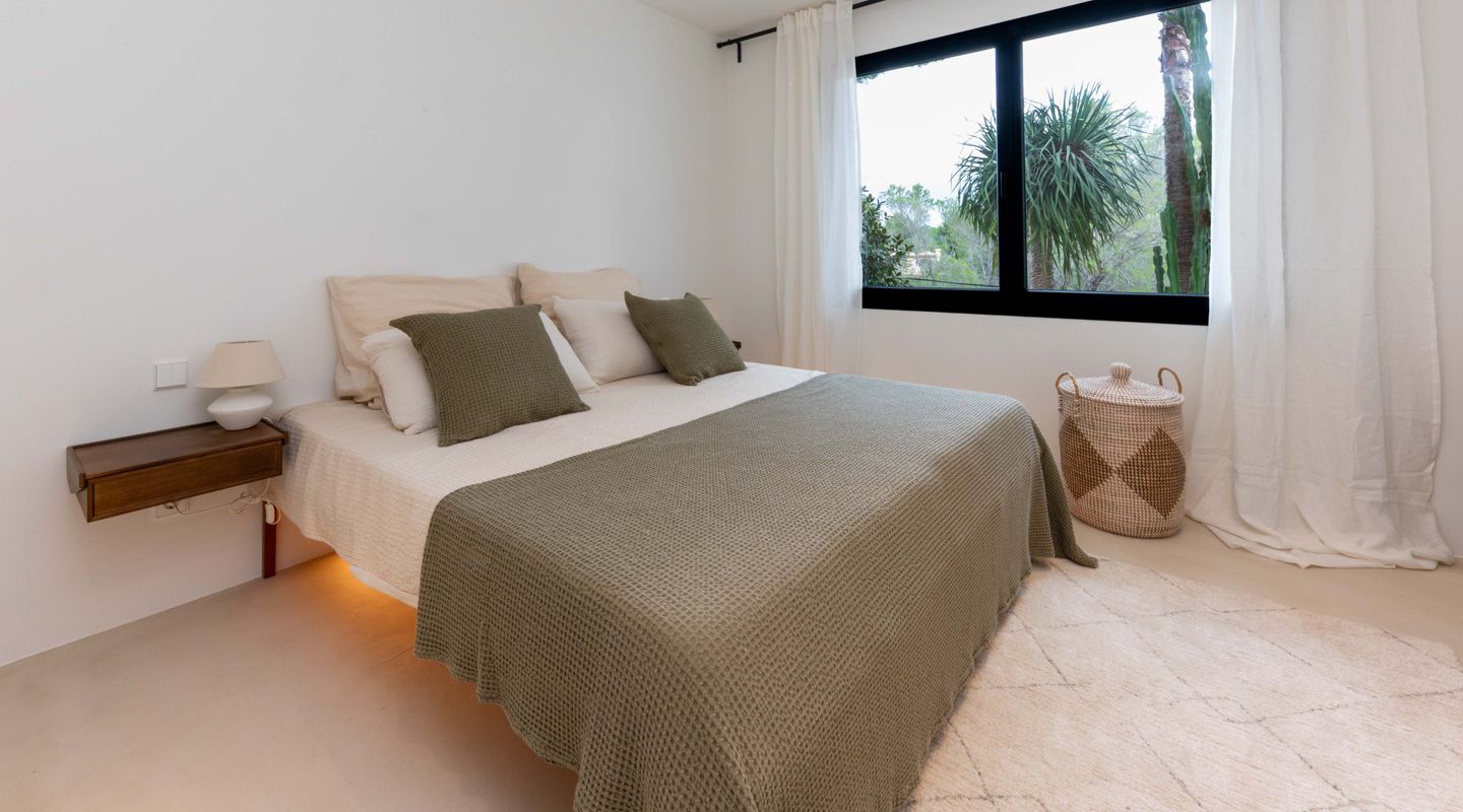 Среди преимуществ — частный бассейн, летняя кухня с барбекю, частный сад, высокие потолки, полы из микроцемента и частичный вид на море.