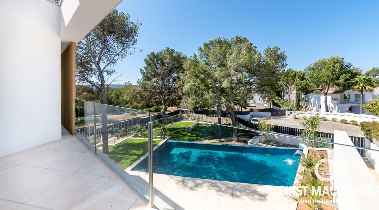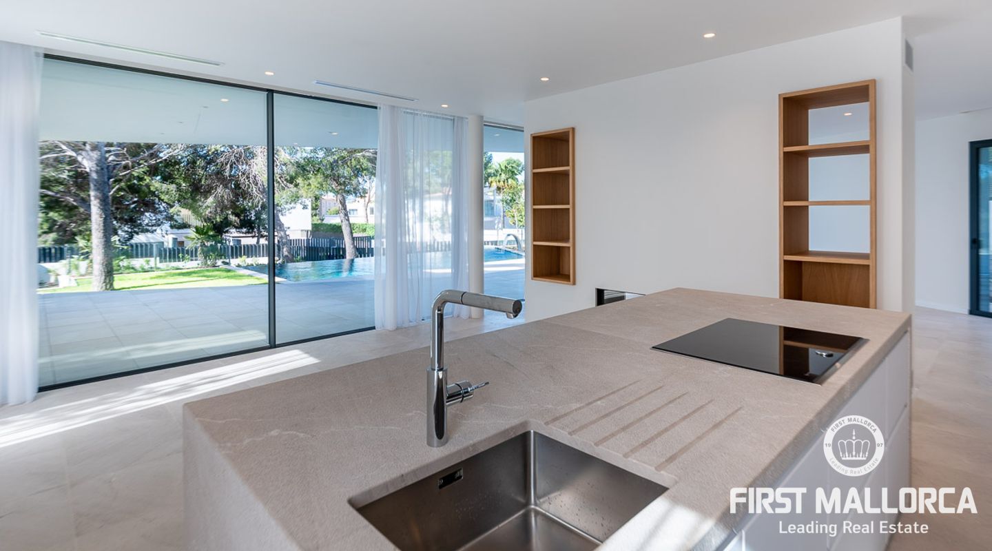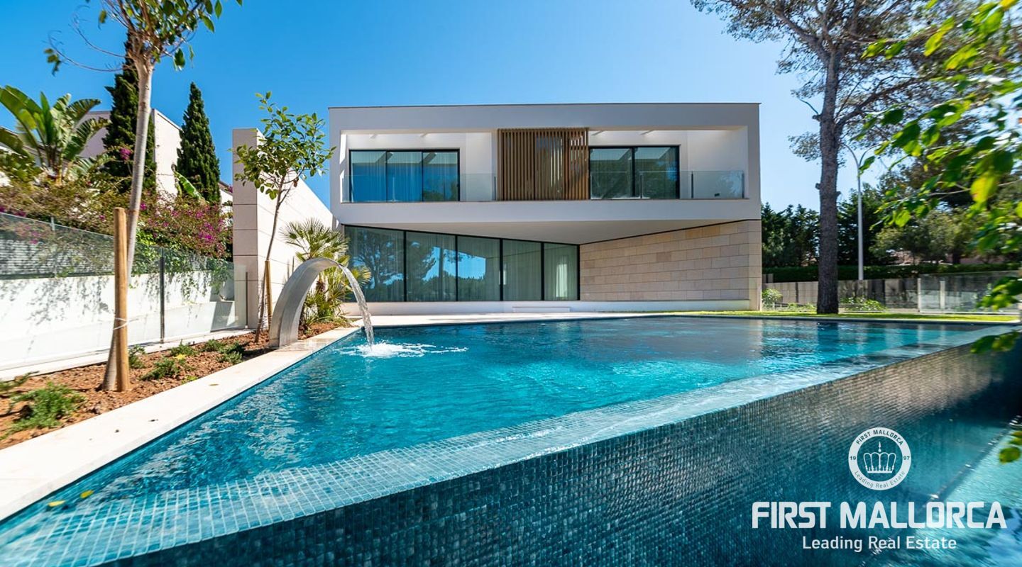 Вы ищете новую виллу в Нова Санта Понса по привлекательной цене...? Тогда эта недвижимость, строительство которой завершается недалеко от гавани Порт Адриано, как раз то, что нужно. Впечатляющая вилла в минималистском дизайне убеждает элементами современного стиля, высококачественными материалами и светлым жилым комфортом. Первый этаж предлагает владельцу и его гостям просторную гостиную, столовую, а также роскошную оборудованную кухню и спальню с просторной ванной комнатой, которая также может служить офисом. На верхнем этаже расположены 4 спальни с ванными комнатами и встроенными шкафами. На этом же уровне находится главная спальня с большой ванной комнатой, гардеробной и выходом на террасу. Из подземного гаража на 3 машины можно подняться на лифте на все уровни. Южная ориентация виллы гарантирует солнце круглый год, которым можно наслаждаться у бассейна 15 x 3,5 метра или в средиземноморском саду. Только некоторые из многочисленных деталей оборудования: Двойное остекление, алюминиевые окна и двери, кондиционер горячего/холодного воздуха, подогрев полов, сигнализация и многое другое. Пожалуйста, не стесняйтесь обращаться в дружелюбный отдел продаж First Mallorca, чтобы организовать просмотр этой виллы с очень хорошим соотношением цена/качество.
