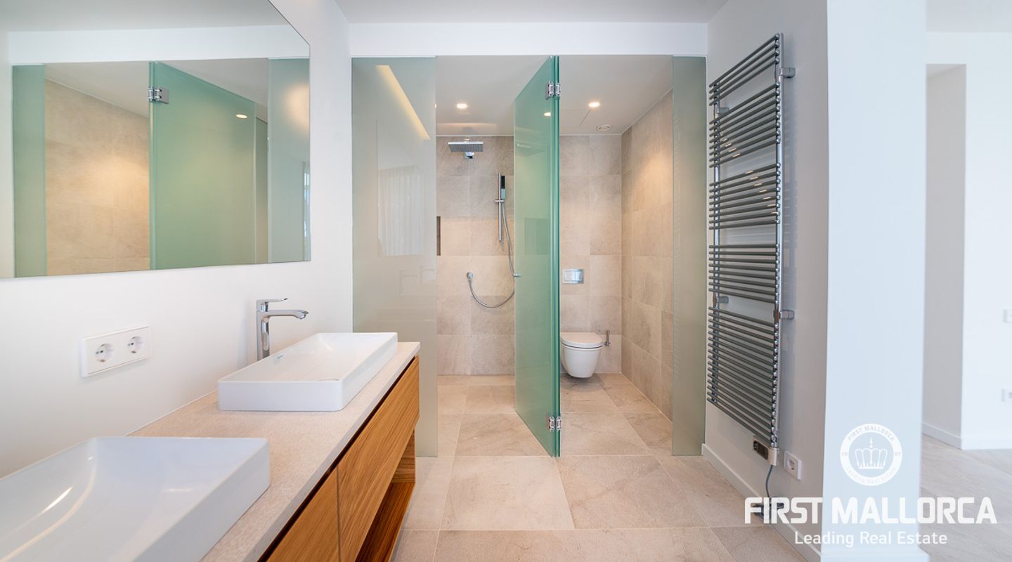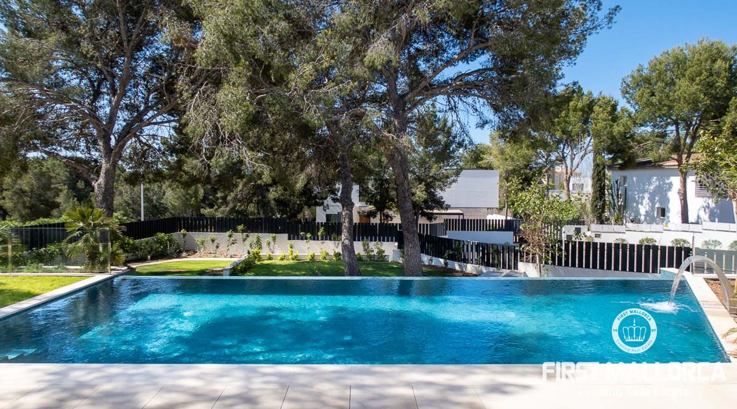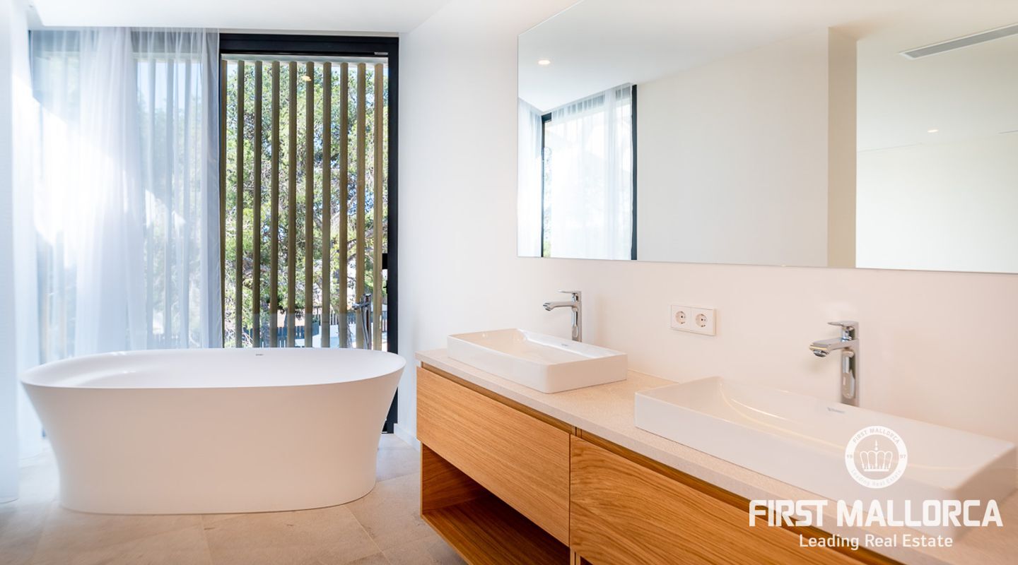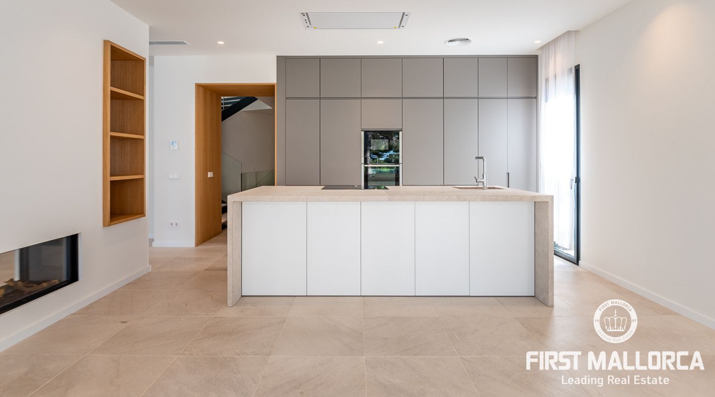 Вы ищете новую виллу в Нова Санта Понса по привлекательной цене...? Тогда эта недвижимость, строительство которой завершается недалеко от гавани Порт Адриано, как раз то, что нужно. Впечатляющая вилла в минималистском дизайне убеждает элементами современного стиля, высококачественными материалами и светлым жилым комфортом. Первый этаж предлагает владельцу и его гостям просторную гостиную, столовую, а также роскошную оборудованную кухню и спальню с просторной ванной комнатой, которая также может служить офисом. На верхнем этаже расположены 4 спальни с ванными комнатами и встроенными шкафами. На этом же уровне находится главная спальня с большой ванной комнатой, гардеробной и выходом на террасу. Из подземного гаража на 3 машины можно подняться на лифте на все уровни. Южная ориентация виллы гарантирует солнце круглый год, которым можно наслаждаться у бассейна 15 x 3,5 метра или в средиземноморском саду. Только некоторые из многочисленных деталей оборудования: Двойное остекление, алюминиевые окна и двери, кондиционер горячего/холодного воздуха, подогрев полов, сигнализация и многое другое. Пожалуйста, не стесняйтесь обращаться в дружелюбный отдел продаж First Mallorca, чтобы организовать просмотр этой виллы с очень хорошим соотношением цена/качество.