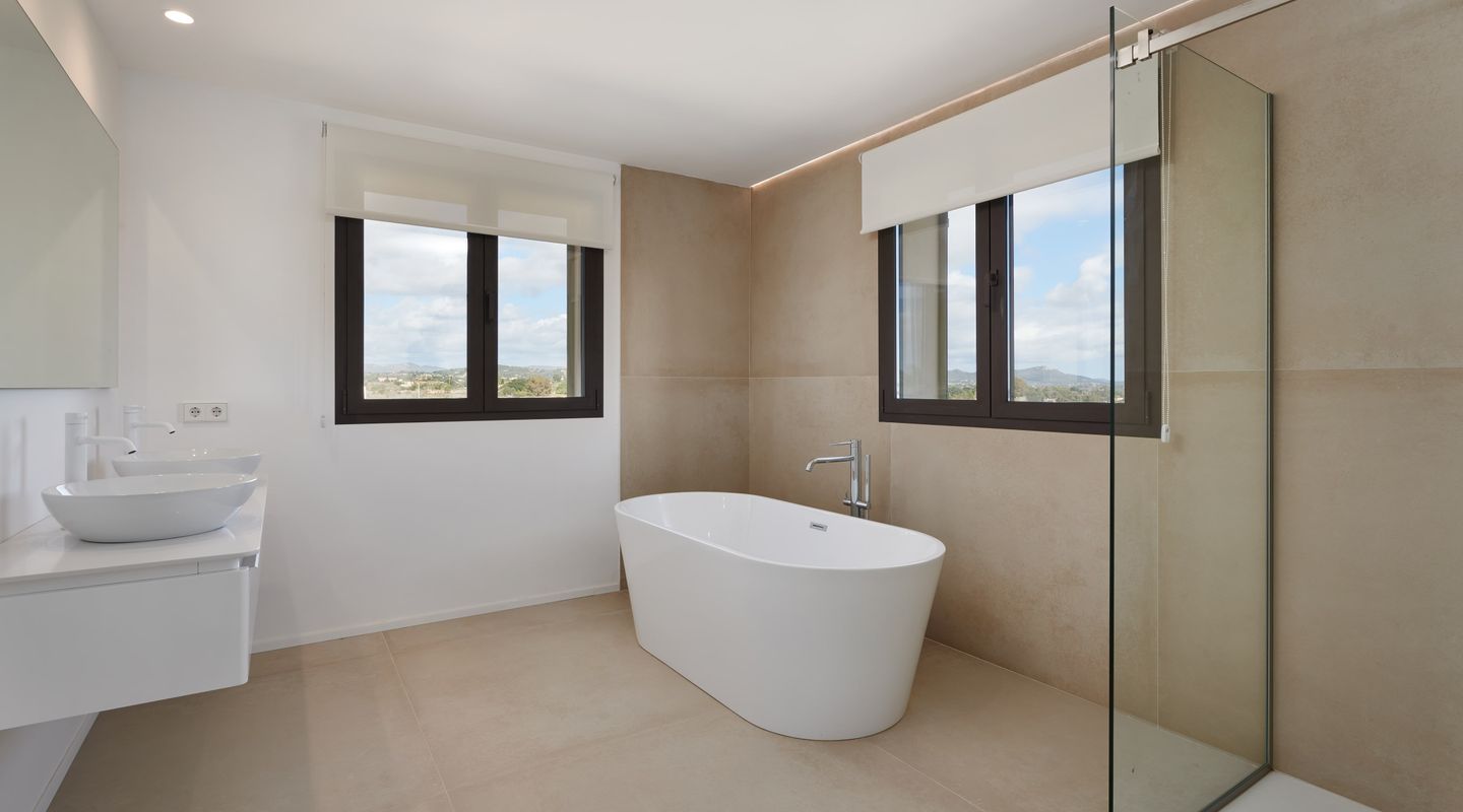 Вилла, построенная в 2023 году и расположенная на участке площадью 18900 м2 перед восточным побережьем Майорки, имеет 310 м2 застроенной площади и 66 м2 террас, распределенных на двух этажах, с 4 спальнями и 4 ванными комнатами, две из которых ensuite, а также гостевой туалет.
