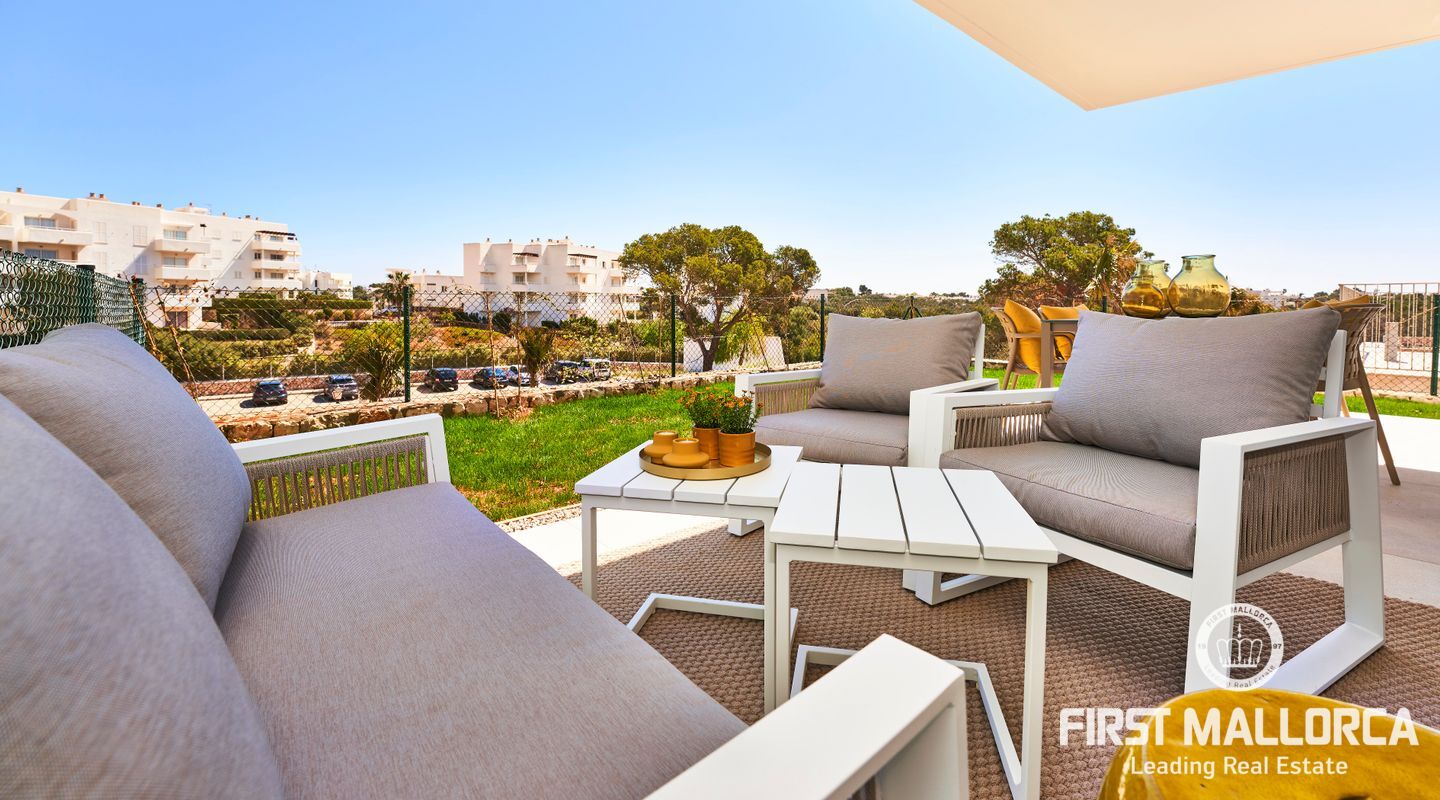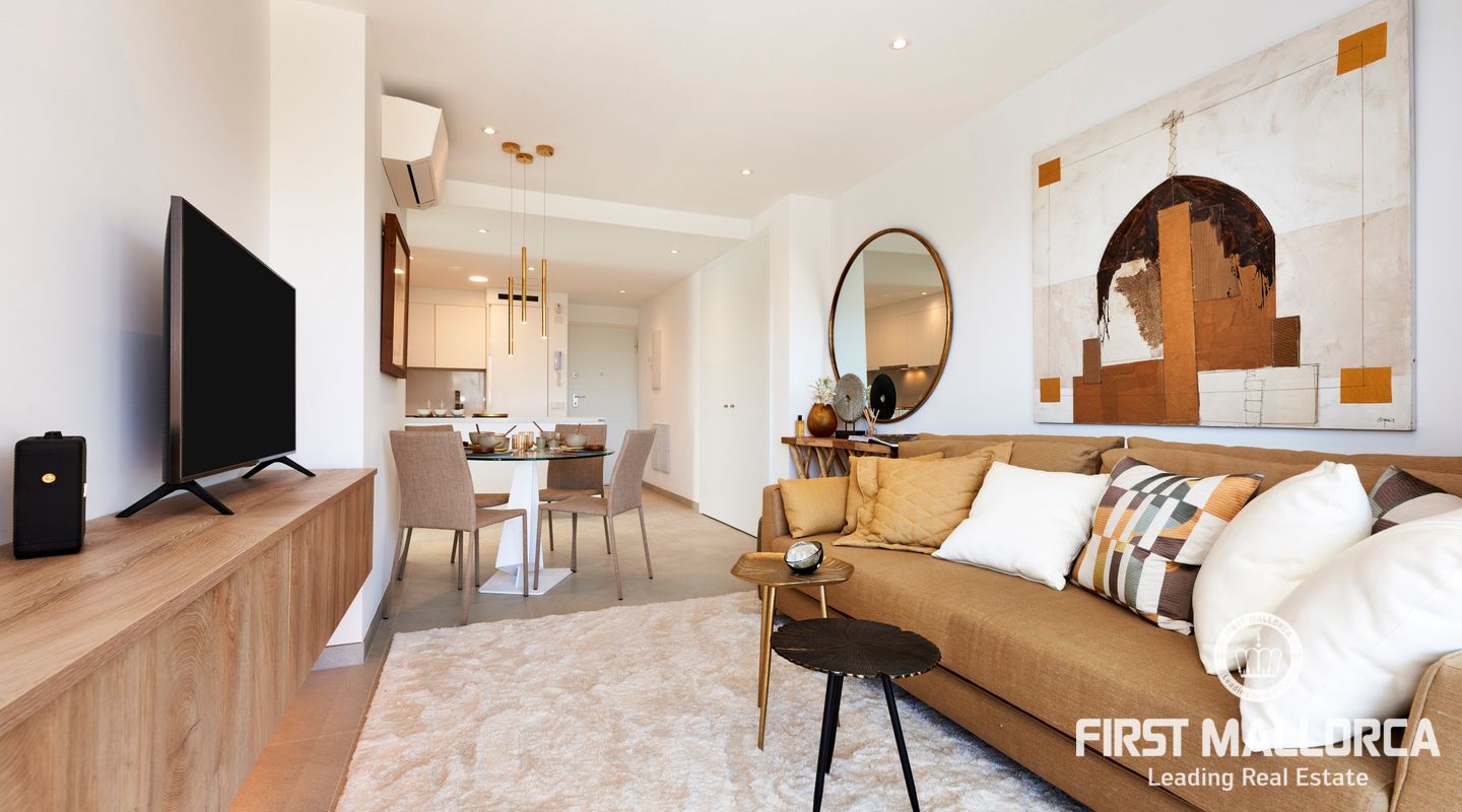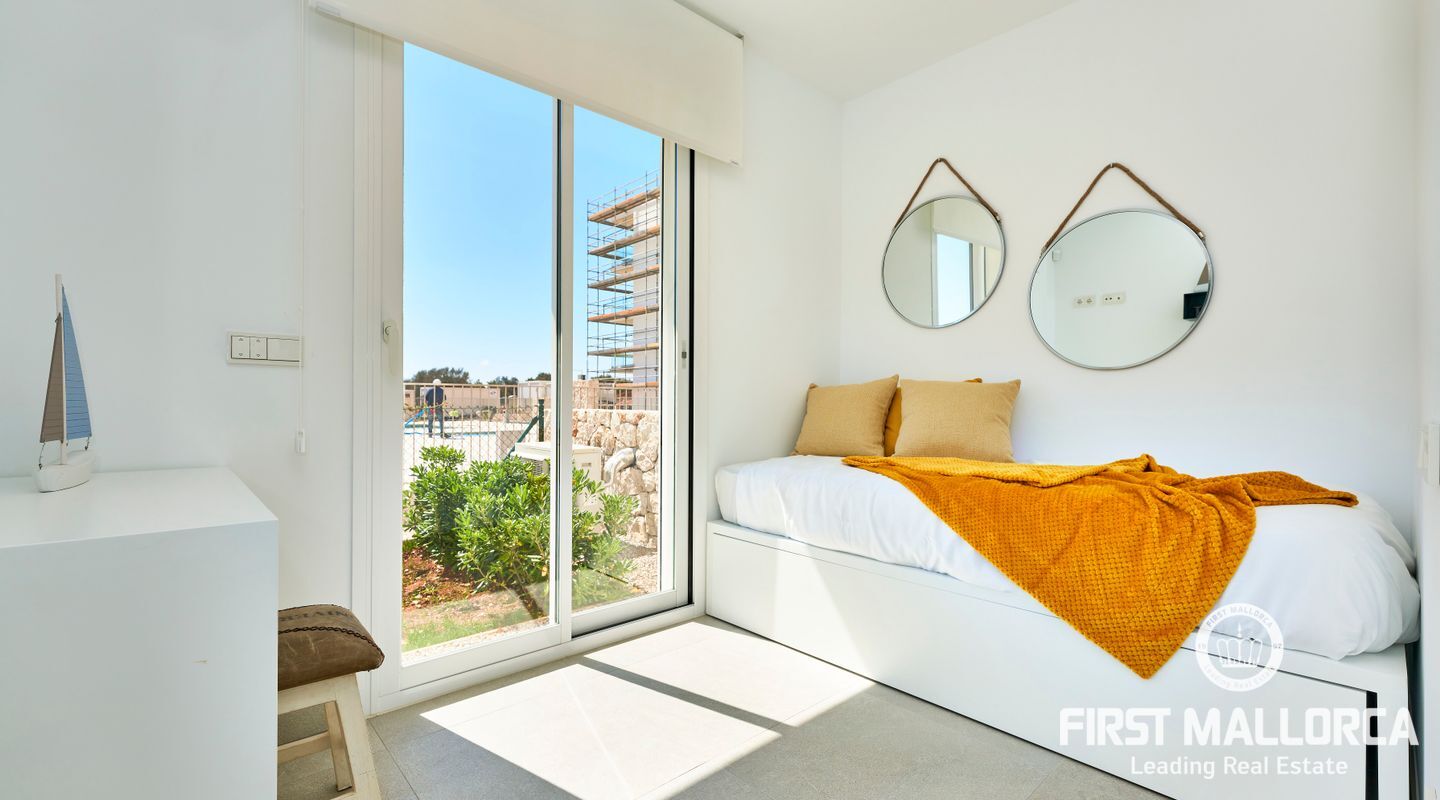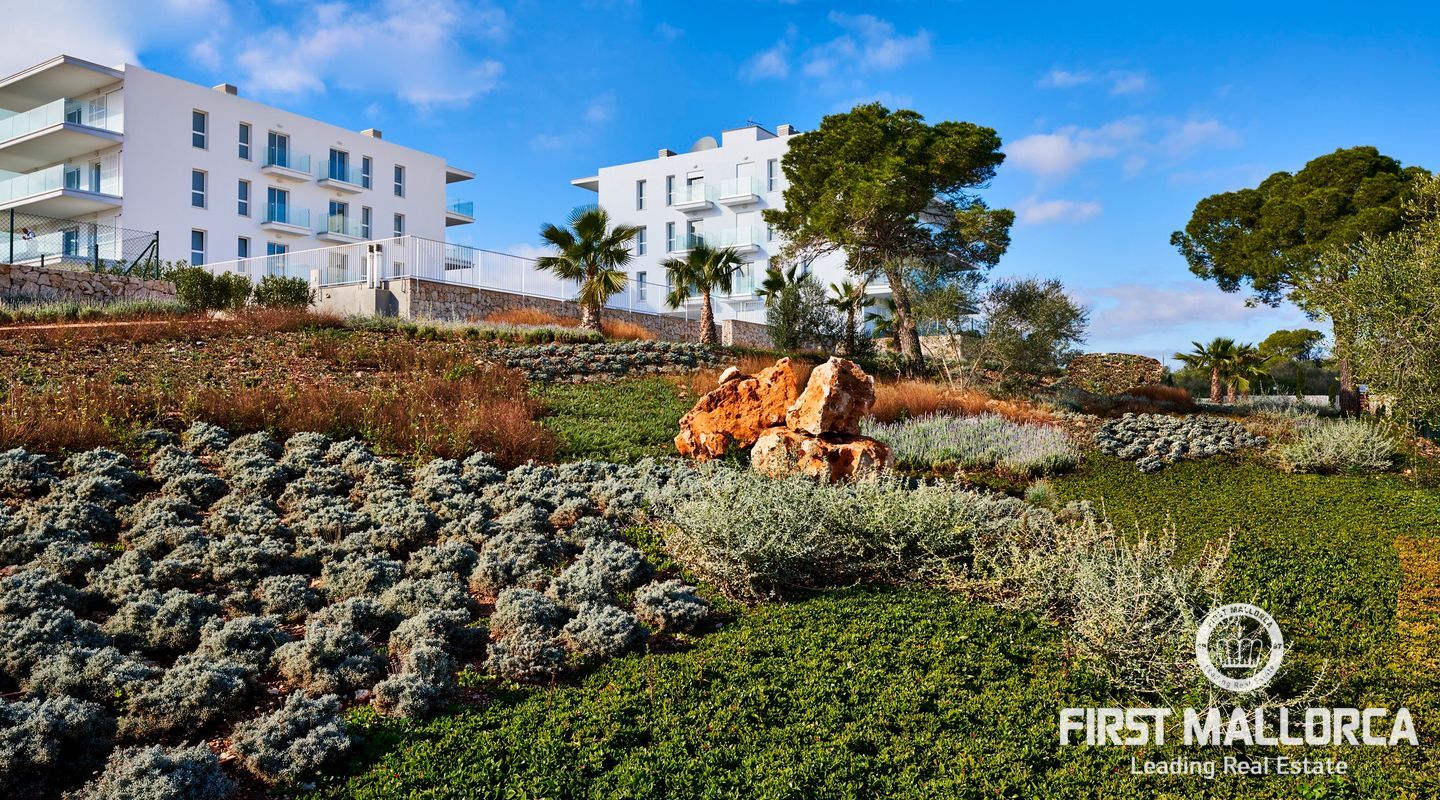 De moderna lägenheterna är inredda i vit ibizisk stil och har en mycket hög kvalitet. Lägenheterna har gott om utrymme i 2 sovrum med badrum, vardagsrum/matsal och stora terrasser eller, när det gäller lägenheterna på bottenvåningen, verandor med trädgård. Rymliga trädgårdar omger området och 2 stora gemensamma pooler bjuder in dig att njuta av Medelhavslivet. Till varje lägenhet hör också en parkeringsplats.