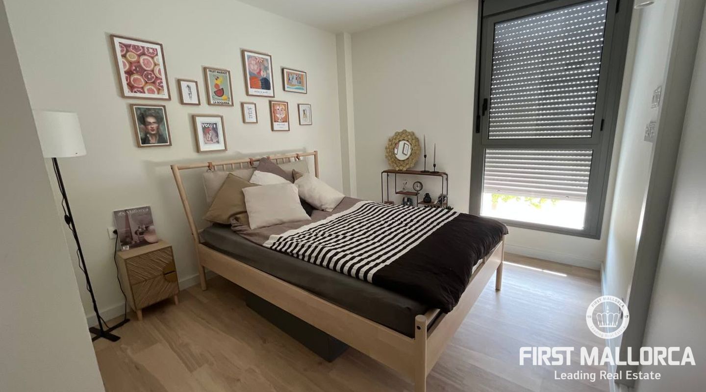 Den här vackra nybyggda lägenheten ligger i ett kollektivt komplex i det familjevänliga området Son Guell, som just har färdigställts 2021. Den charmiga lägenheten erbjuder en öppen planlösning mellan vardagsrum och matplats, 2 sovrum, 2 badrum, varav ett badrum och en balkong i östläge. Det vackert utformade kommunala komplexet har en stor gemensam pool samt ett fitnessrum. Det finns också en underjordisk parkeringsplats. Lägenheten har ett perfekt läge för den som gillar Palma och Portixol, men samtidigt inte vill vara mitt i det hela - ett riktigt bra erbjudande.
