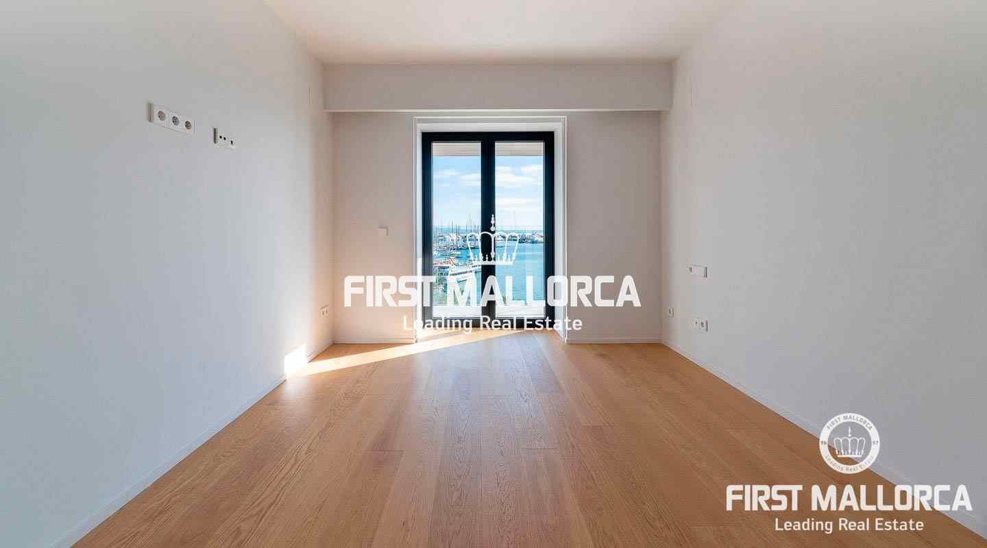 Denna lägenhet under uppförande i ett utmärkt läge på Paseo Marítimo har maximalt med naturligt ljus och en otrolig utsikt över Palmas hamn, tack vare en noggrant planerad design. Fastigheten med 2 sovrum har 2 badrum och ett kök med utrustning av högsta kvalitet. För sin inredning kan du välja mellan naturstensgolv och naturparkett.