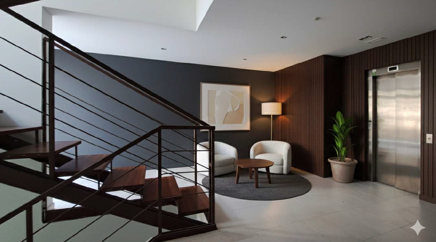 Bostadsområdet erbjuder utmärkta gemensamma utrymmen som inkluderar pool, trädgård, gym, lekplats, badrum och hiss. Dessutom har fastigheten förråd och möjlighet att köpa garageplatser till ett separat pris.