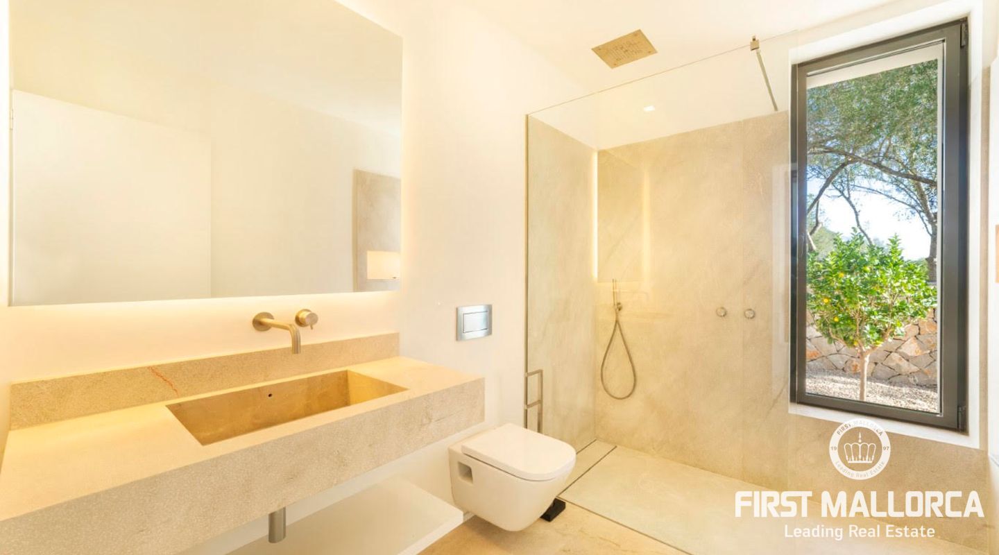 Lätt tillgänglig från 3 vägar, den helt plana tomten täcker en yta på 22,898m2, med ett obehindrat 360-graders panorama (vi skickar gärna en video till dig. av utsikten). Den kommer att ha 2 ingångar, en huvudingång där uppfarten börjar, med träd på båda sidor, som leder till parkeringsområdet och det rymliga garaget. Vi rör oss sedan mot husets entré och den första effekten vi får är ett djup som ges av de stora fönstren som gör att vi kan njuta av utsikten genom huset. Vi kommer in i vardagsrummet, intelligent utformat av ägaren för att ta emot ljus hela dagen (ingången har en sydostlig orientering, medan baksidan som leder till poolen är nordvästlig), ett bekvämt kök i öppen planlösning kommer att ligga till höger och framför oss, utgången som leder till poolområdet, där oförglömliga luncher och middagar utomhus kan organiseras. En annan smart idé från ägaren var att placera de 3 sovrummen i 2 separata block av huset och ändå förbundna med den centrala delen genom korridorer med förstärkta glasväggar för att få ljus från morgonen. På den västra sidan har vi det stora sovrummet, med eget badrum och walk-in-garderob, och på den andra sidan de andra två sovrummen, med ett komplett badrum och gästtoalett. I trädgården har 350 olivträd och en vingård på ca 1000 m2 redan planterats och kommer att börja producera olja och vin om några år. I projektet ingår även plantering av grönsaker och fruktträd, som tillsammans med energiförsörjningen kommer att göra detta hus helt oberoende. Enligt de nya lagarna för "Rustico"-områden kommer huset att ha solenergi, en reservgenerator och eventuellt även installation av ett vindkraftssystem. Vattnet kommer att komma från brunnen. Byggnadstillståndet kommer att beviljas 2023 och ägaren säljer detta projekt med olika alternativ. Den nya ägaren kan bestämma om han eller hon vill ta över byggandet helt och hållet, eller om han eller hon vill använda arkitekten som arbetar med projektet och alla inblandade yrkesmän. Den nuvarande ägaren, som har erfarenhet av projekt av denna typ på Mallorca, är också villig att erbjuda sin övervakning av byggandet. Allt är planerat för att göra byggandet av detta underbara hus så enkelt, bekvämt och snabbt som möjligt.