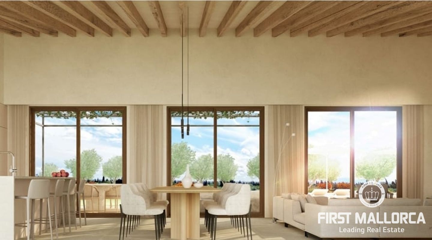 Denna magnifika nybyggda fastighet, fördelad på en våning med en stor källare, ligger på en tomt på nästan 15 000 m² och erbjuder en oöverträffad livsupplevelse i en lugn och naturlig miljö med utsikt över Sierra de Tramuntana.