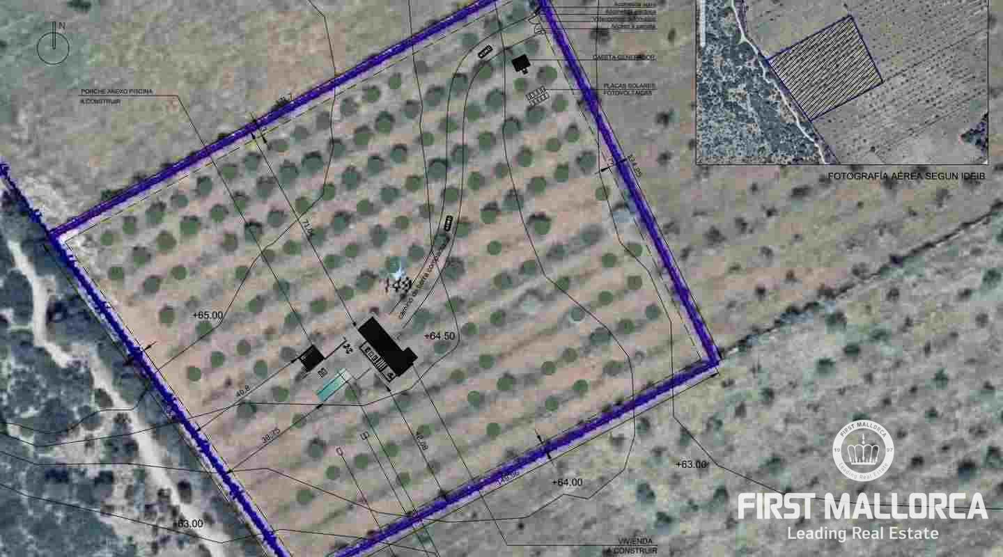 Med en byggd yta på över 542 m² erbjuder finkan tillräckligt med utrymme för fyra stora sovrum. Du kommer in i ditt framtida hem och befinner dig direkt i det över 50 m² stora vardagsrummet/matsalen. I anslutning till det finns det öppna köket. På bottenvåningen finns dessutom ett sovrum med eget badrum, ett stort förråd och naturligtvis tillgång till det rymliga utomhusområdet och poolterrassen. Husets hjärta ligger precis här. Mittemot den 12 meter långa poolen finns en täckt terrass med utekök och sittgrupp - ditt vardagsrum under Mallorcas ljumma sommarnätter.