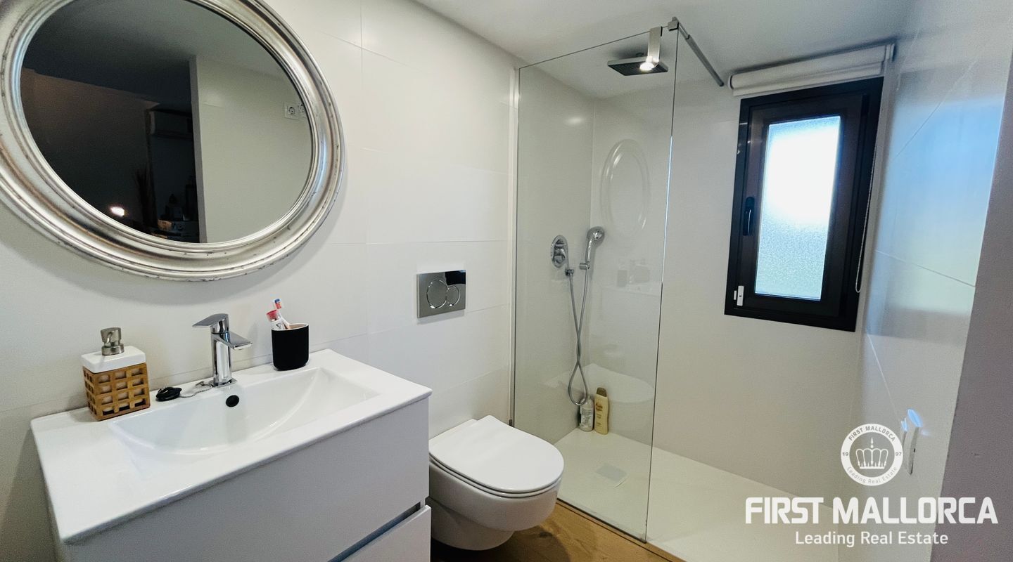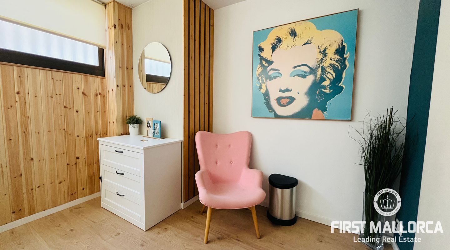 Charmig totalrenoverad lägenhet på en mycket lugn gata, belägen endast 5 minuters gångavstånd till stranden i Palmanova. På en boyta på 105 m2 har den tre sovrum och två badrum, inklusive ett sovrum med omklädningsrum. Vardagsrummet ligger intill matsalen och ett rymligt utrustat kök. Lägenheten har en gasspis och tillgång till den rymliga terrassen. Den har också en parkeringsplats.