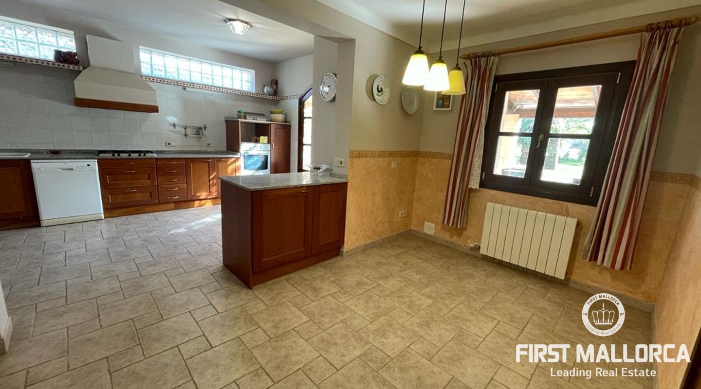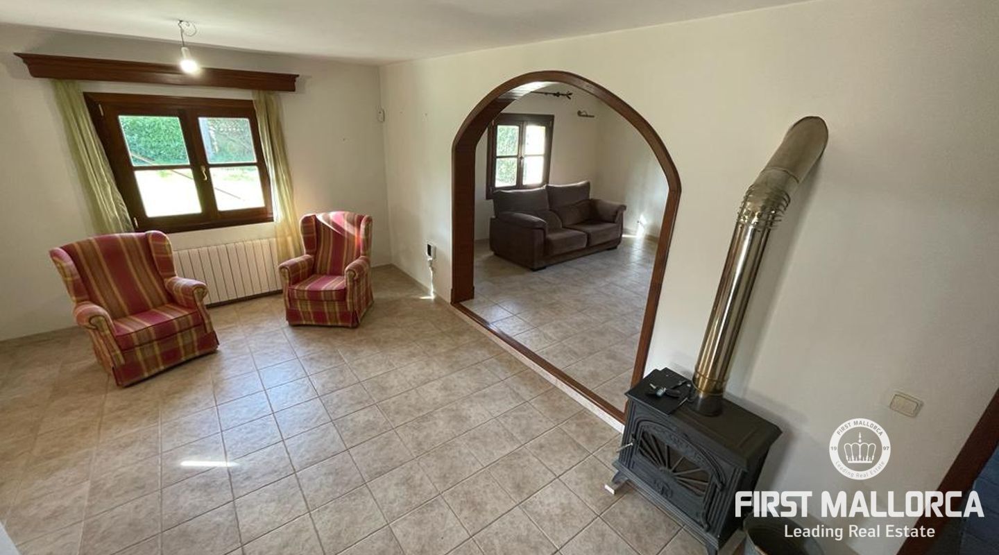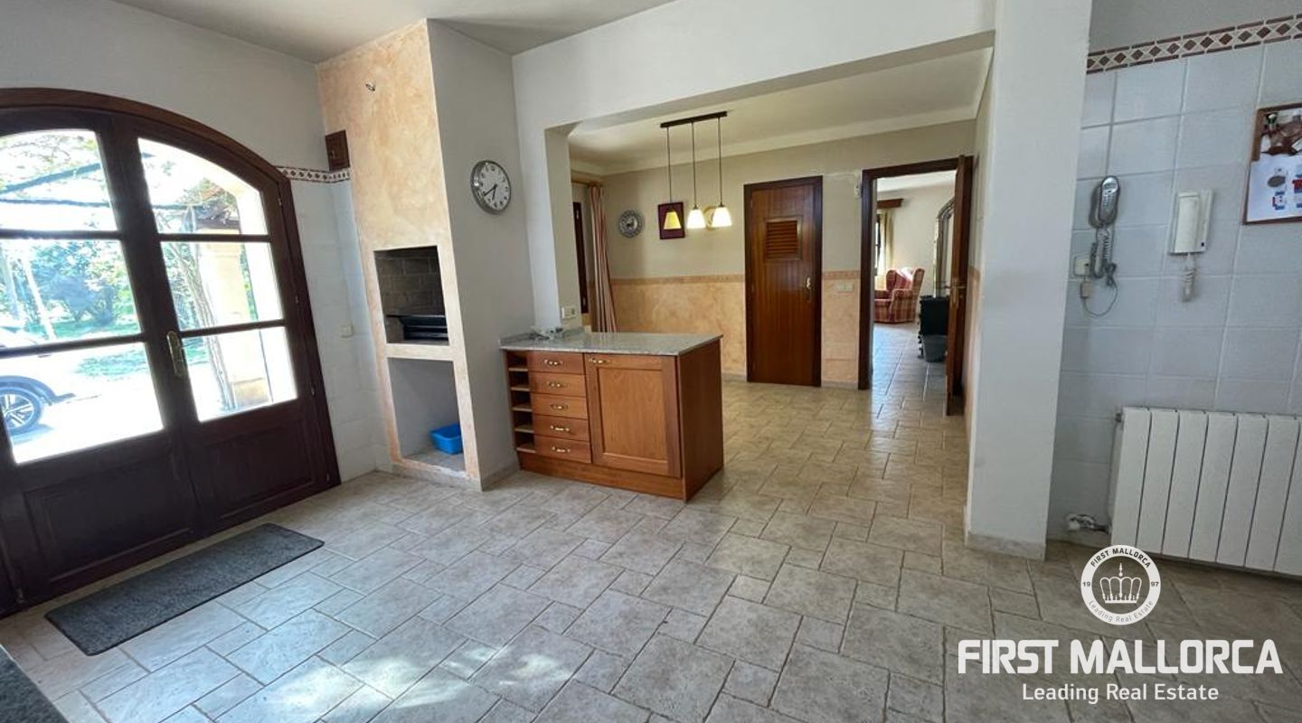 Rymligt hus på landet på en tomt på mer än 8 300m2 och mindre än 20 minuter från Palma (i området mellan Son Gallien och Algaida).. Huset är helt inhägnat, har en lång uppfart till huset, planterade med höga träd på ena sidan och erbjuder mycket avskildhet. Huset (byggt 1985) totalrenoverades 2004 med utmärkt kvalitet och erbjuder nu tvåglasfönster med träbågar, mycket bra isolering tack vare de 45 cm tjocka stenväggarna, värme, stadselektricitet och vatten (tre cisterner som distribuerar vatten till dricksvatten). , hushållsbruk och bevattning .Automatisk trädgårdsbevattning med timer Luftkonditionering är inte nödvändig på grund av den mycket goda isoleringen. Layouten är följande: på bottenvåningen finns ett öppet vardagsrum/reception rum med varsin öppen spis och ett mycket rymligt kök med gott om plats för ett matbord. Härifrån har du tillgång till verandan, samt tvättstugan och även elrummet (som även kan fungera som förråd). På denna nivå hittar du även ett sovrum och ett badrum med dusch. Den övre våningen har två dubbelrum med högt i tak, två enkelrum och ett rymligt badrum med badkar. Det finns också ett trädgårdshus, en carport, många soliga terrasser och en grönsaksträdgård samt inhemska växter. Tveka inte och kontakta oss för mer information.