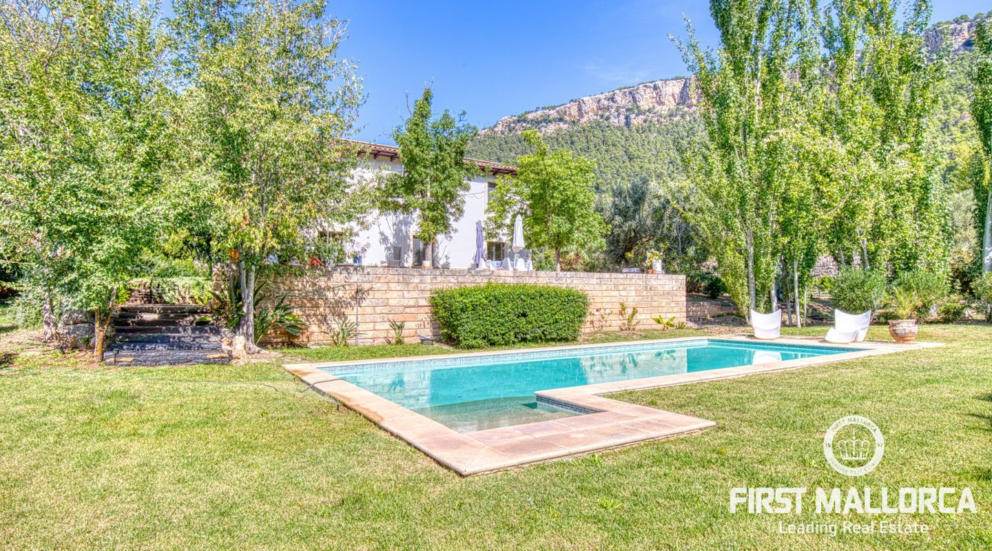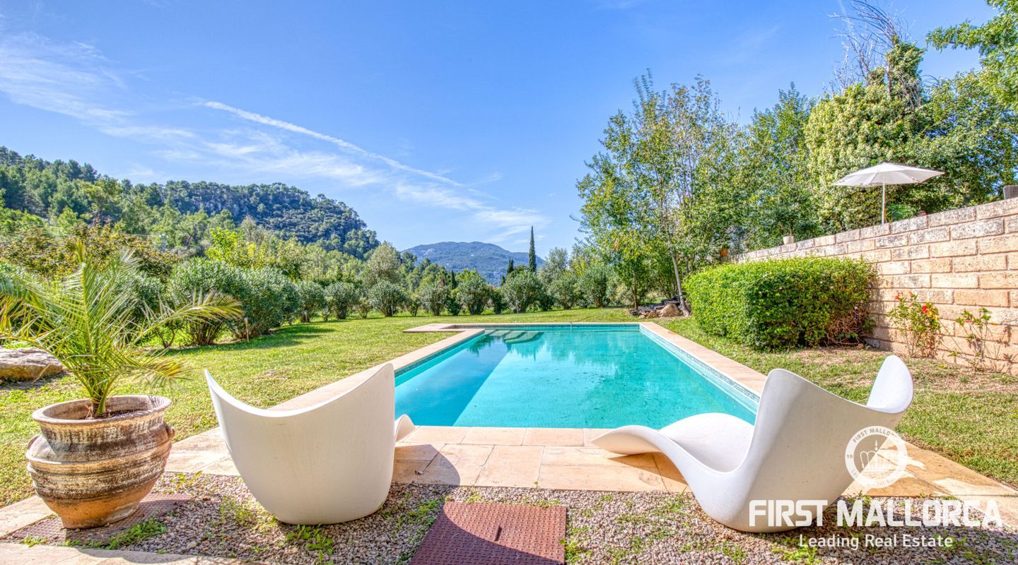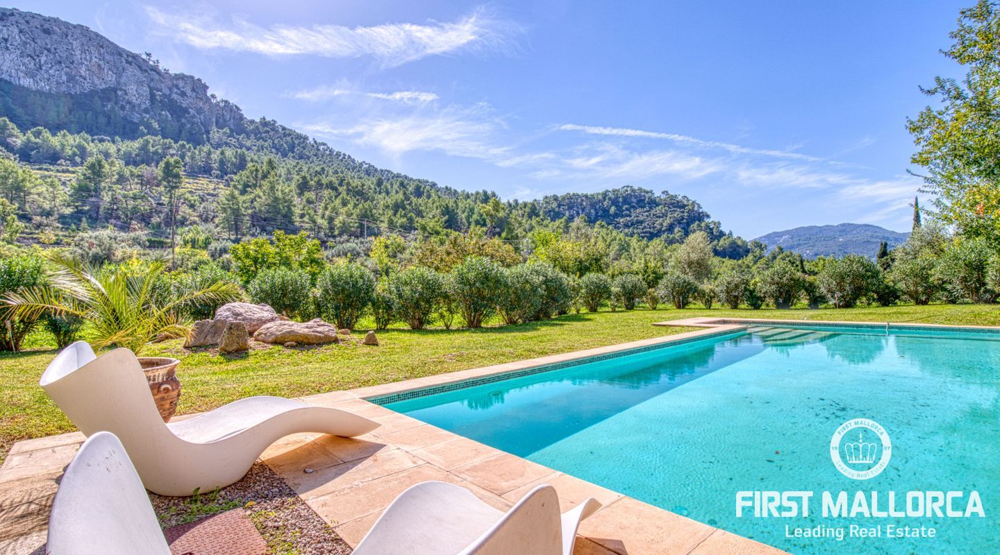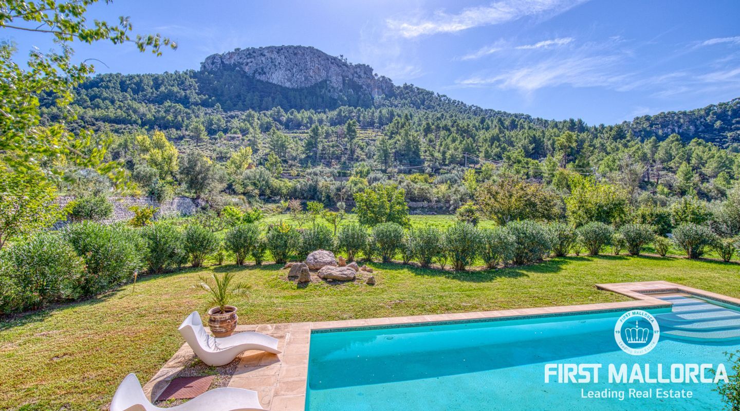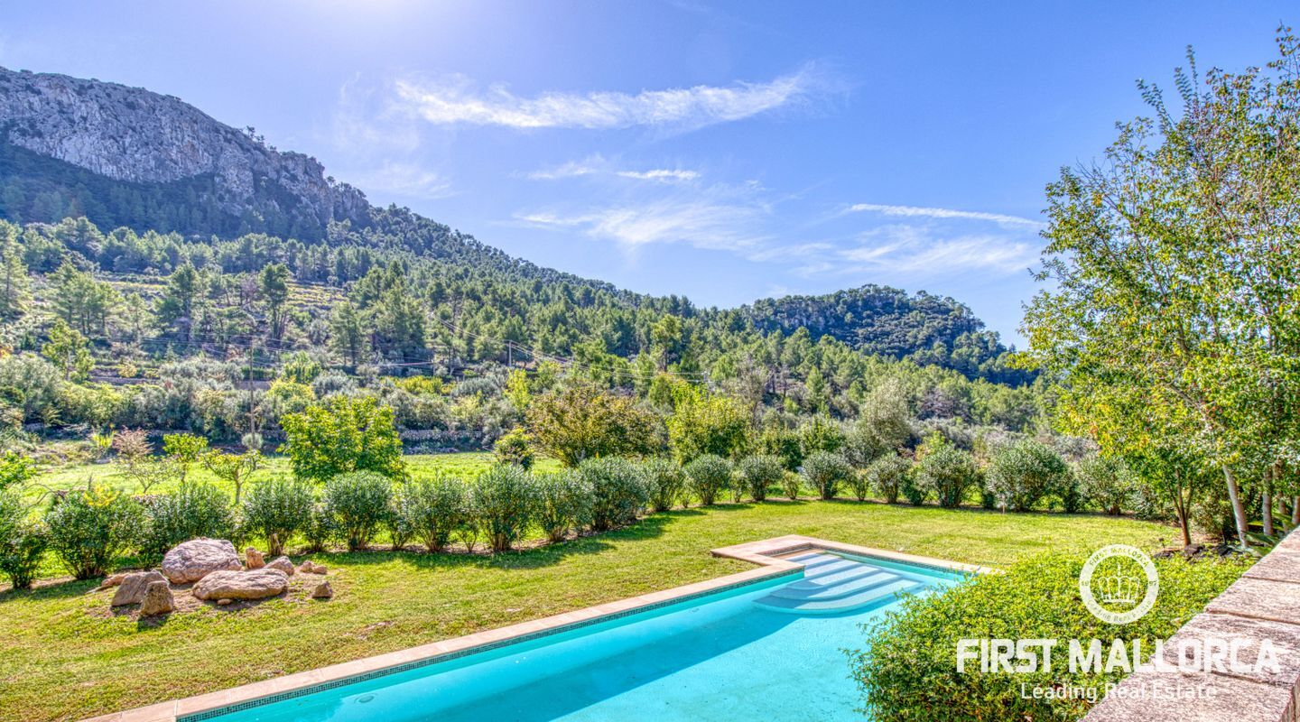 Denna villa ligger i det privilegierade området av den skyddade naturparken i Son Cabaspre på en lantlig tomt på 8.000 m² med fantastisk utsikt över Tramuntana-bergen.