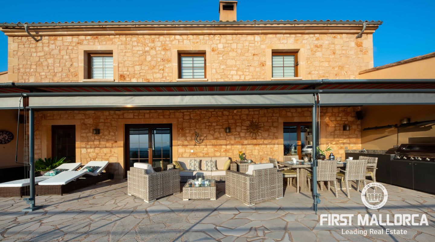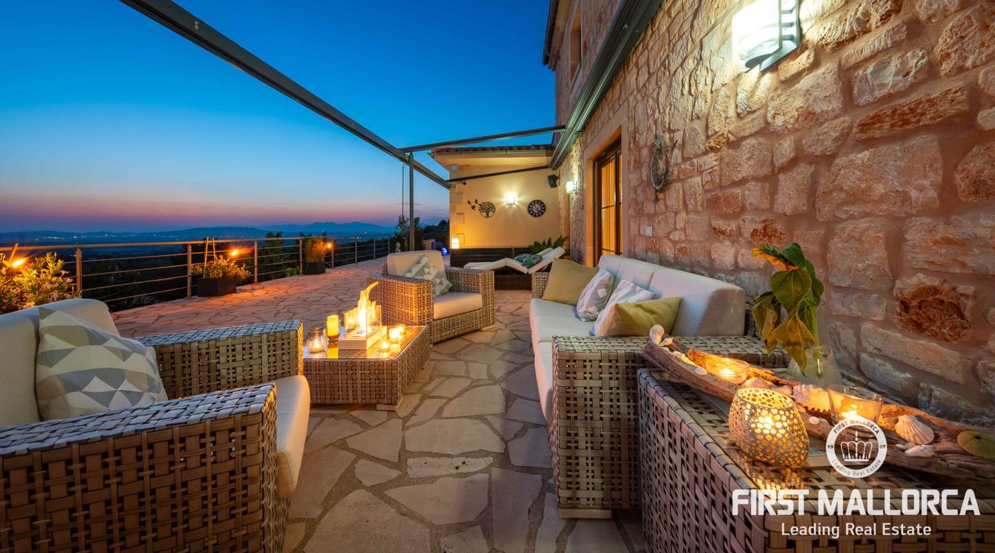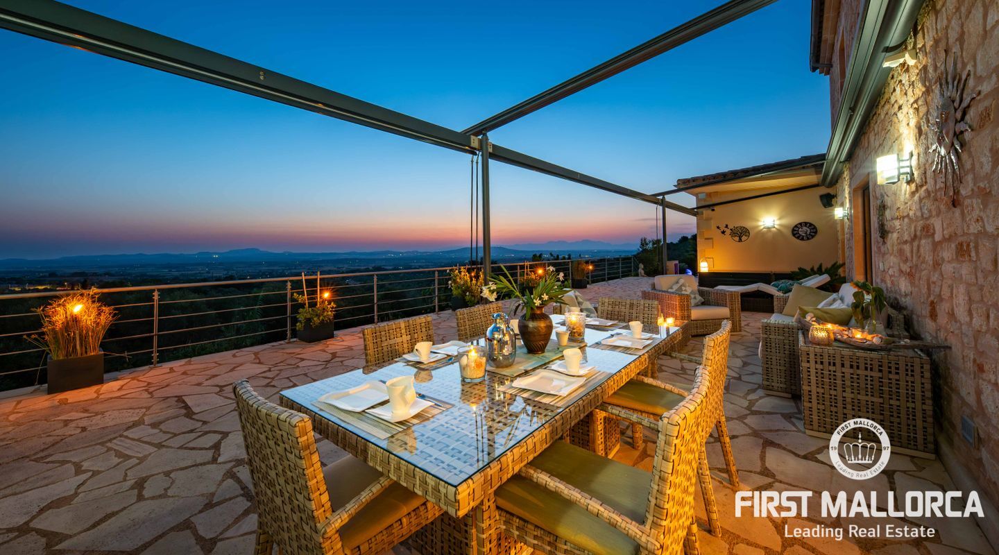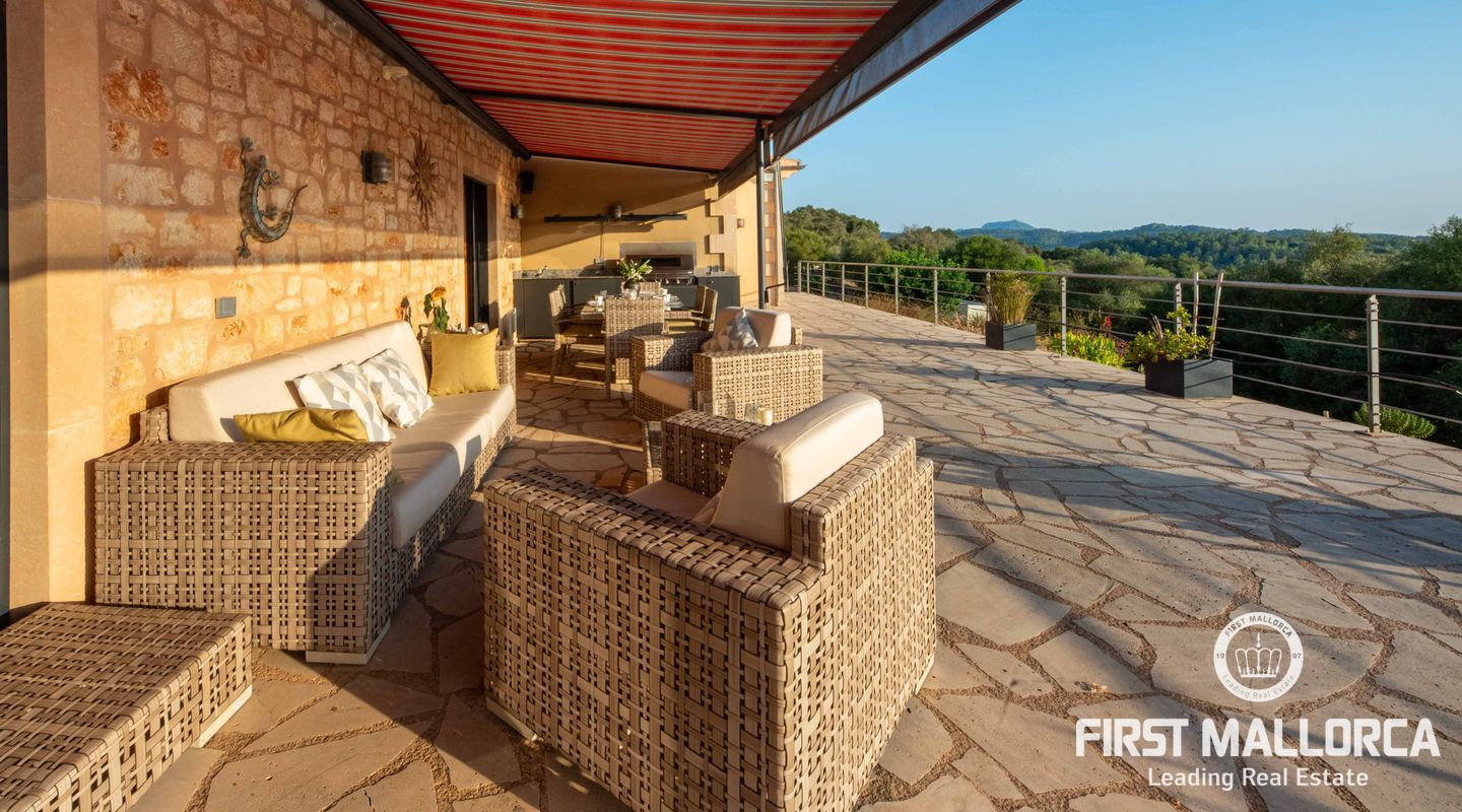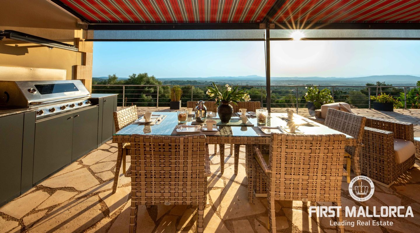 Stora dörrar från vardagsrummet leder till en rymlig terrass med ett integrerat sommarkök – perfekt för avkoppling utomhus med fantastisk utsikt över landskapet och Mallorcas berg. Medelhavsträdgården är kärleksfullt anlagd med oliv- och mandelträd, palmer och andra inhemska växter.