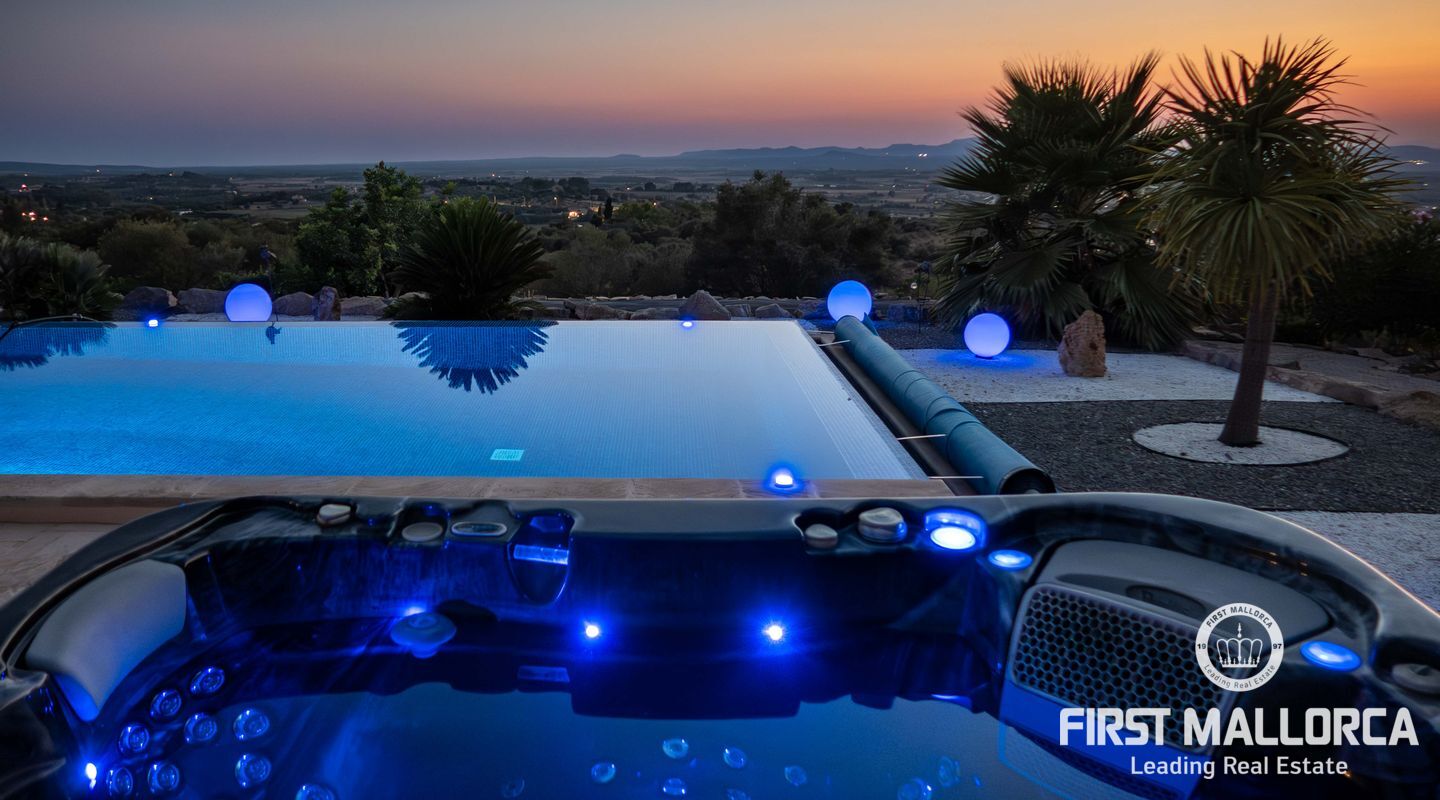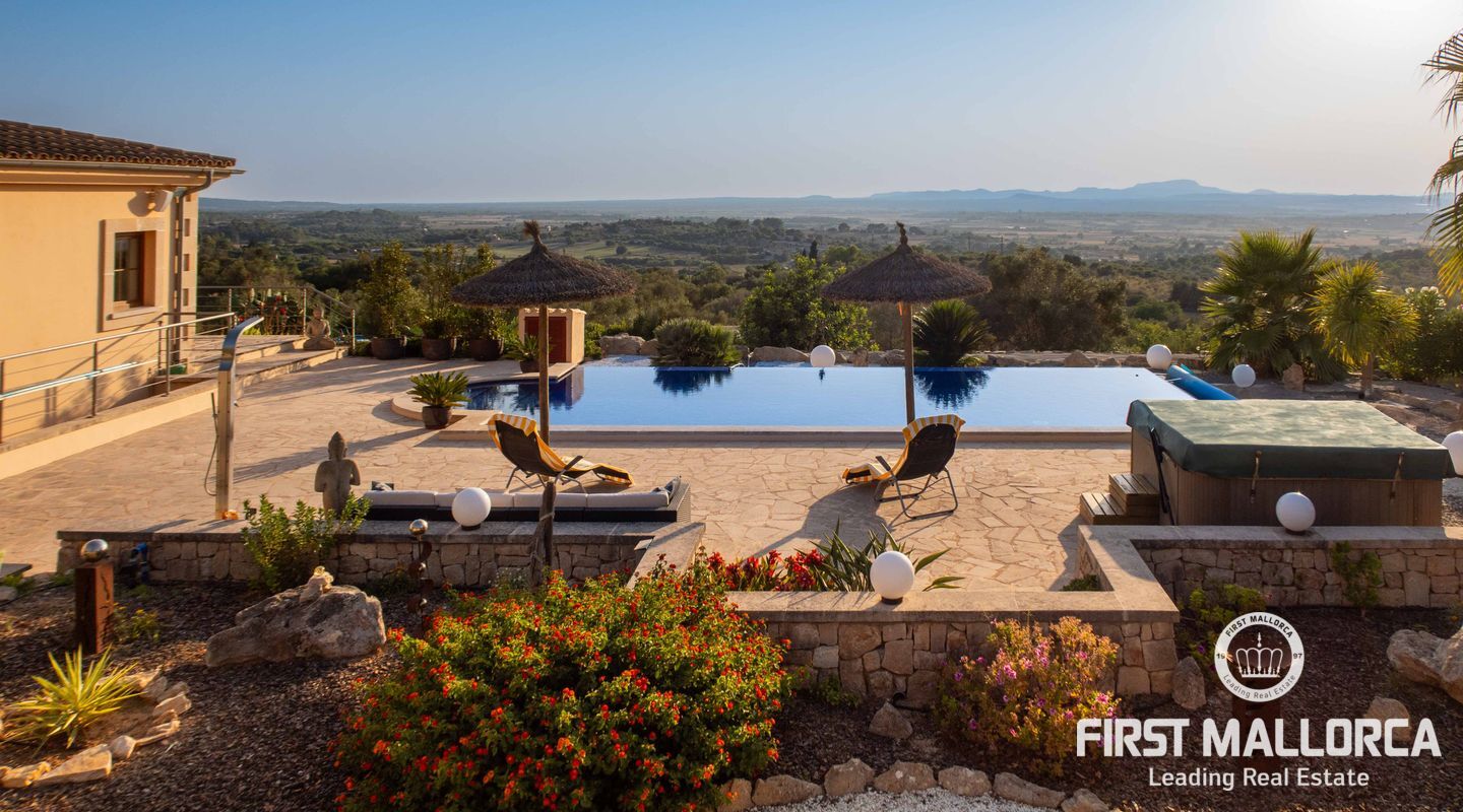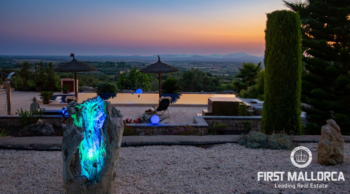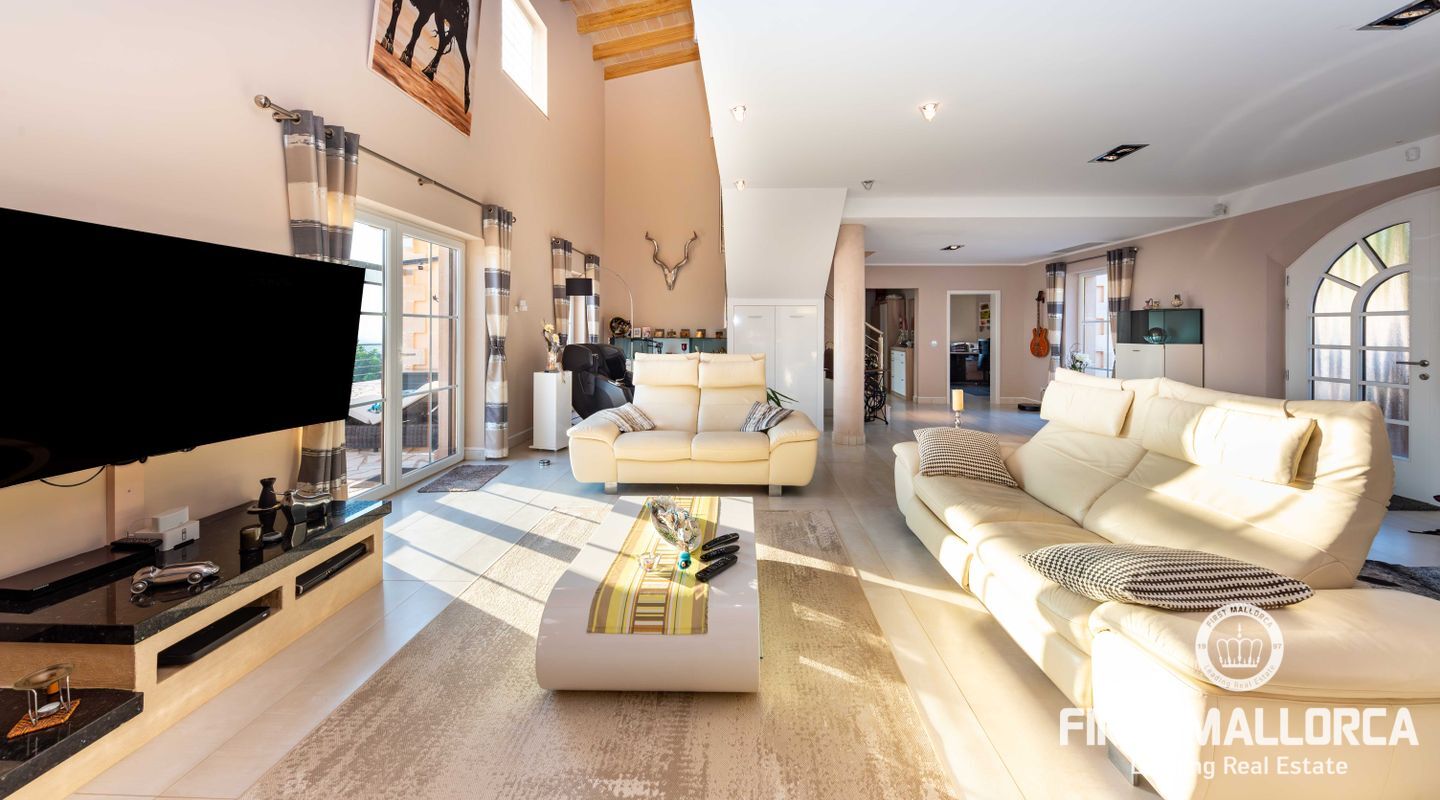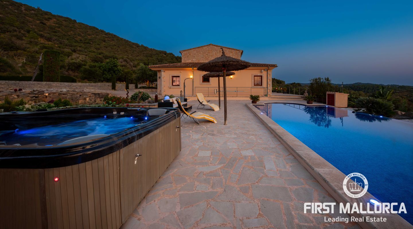 Stora dörrar från vardagsrummet leder till en rymlig terrass med ett integrerat sommarkök – perfekt för avkoppling utomhus med fantastisk utsikt över landskapet och Mallorcas berg. Medelhavsträdgården är kärleksfullt anlagd med oliv- och mandelträd, palmer och andra inhemska växter.