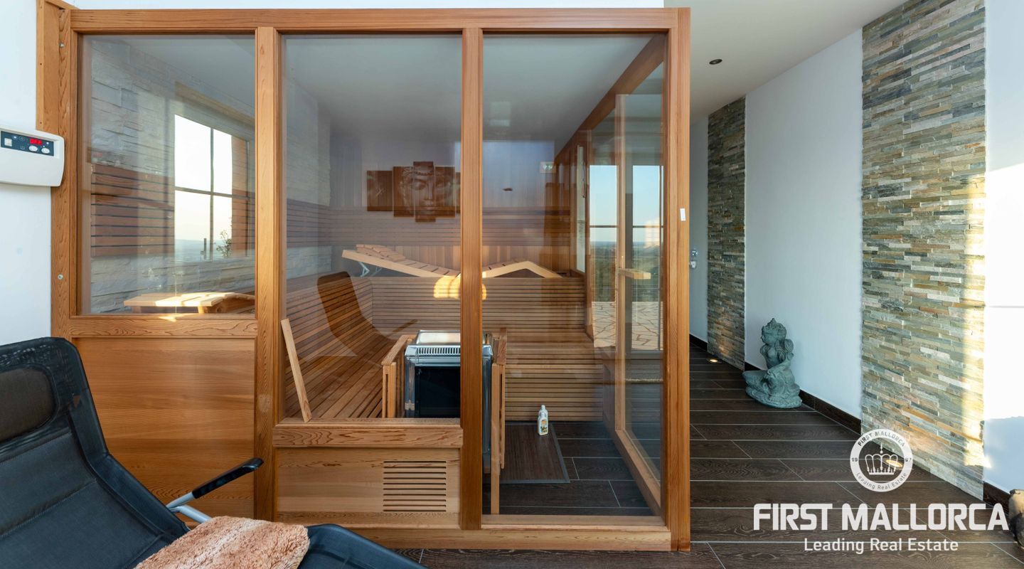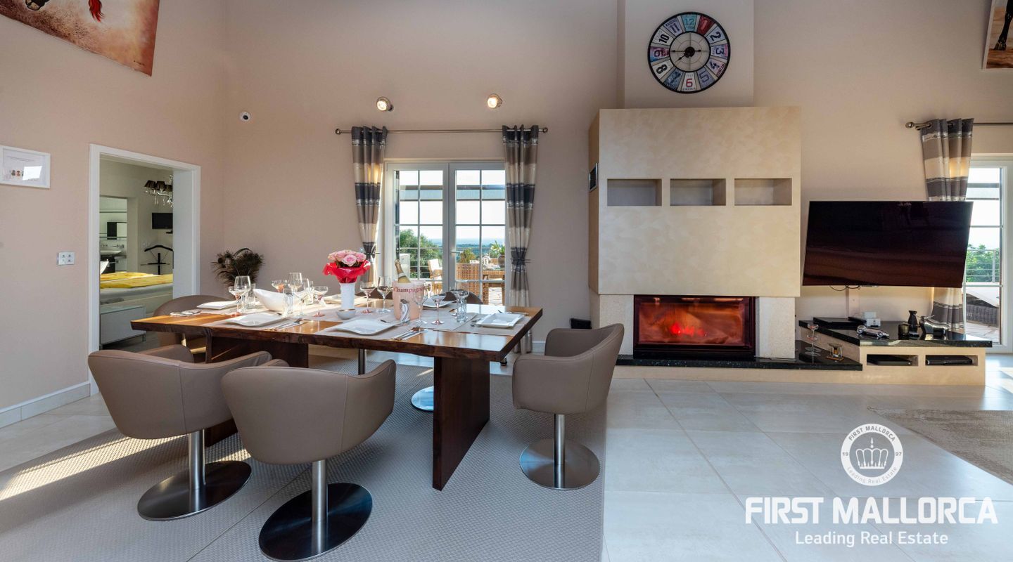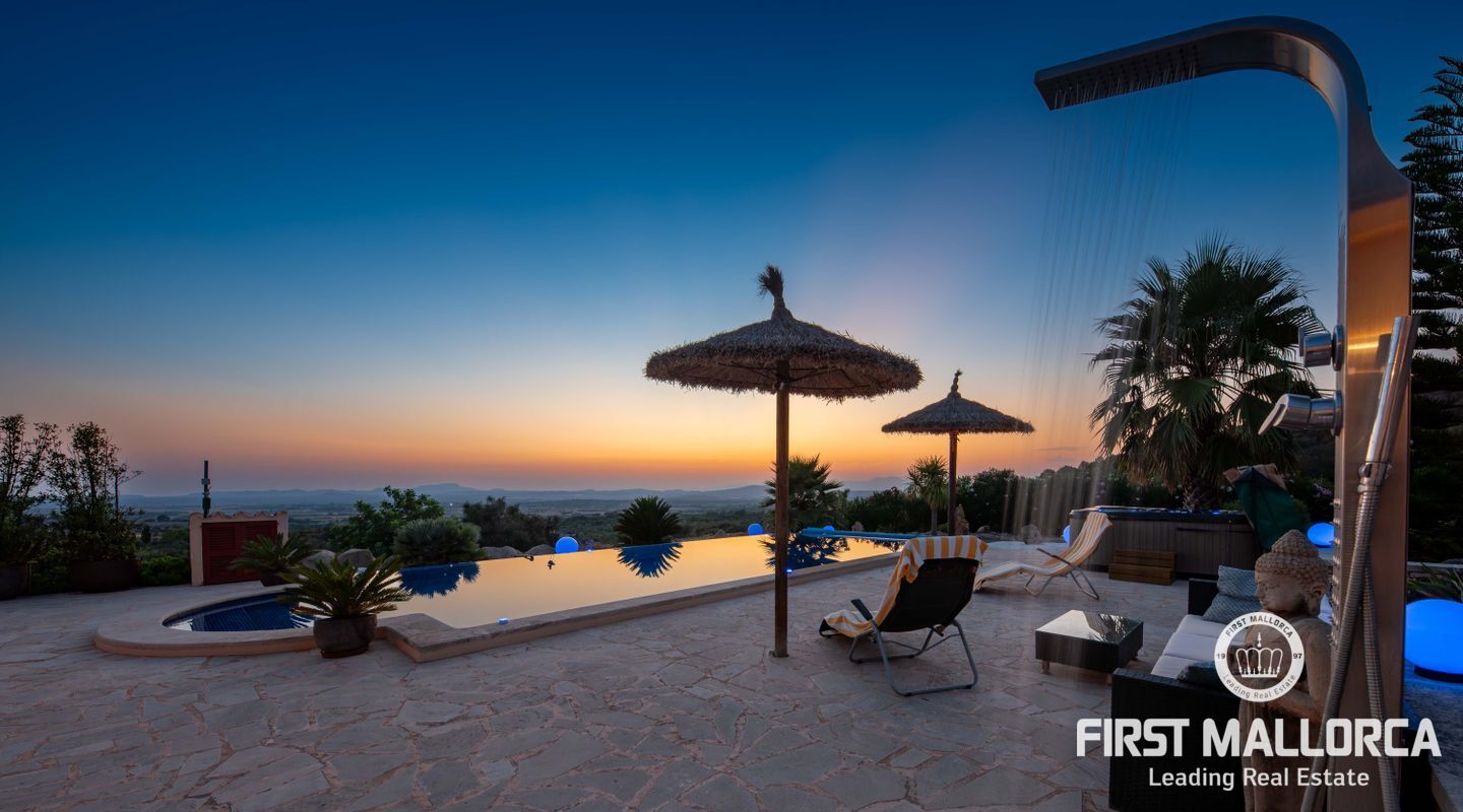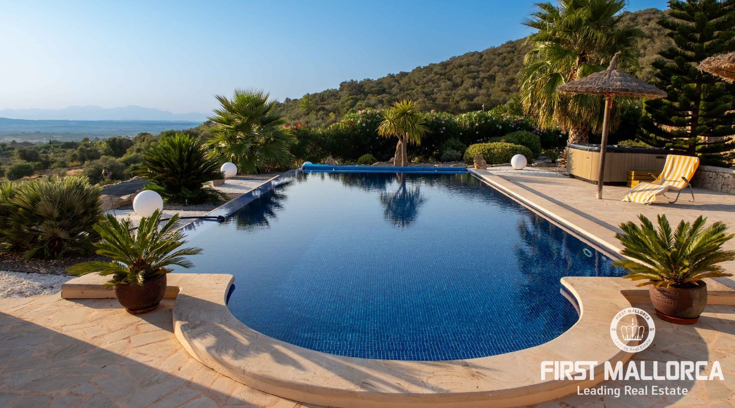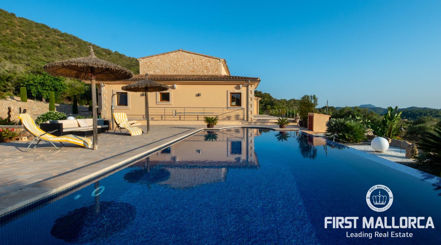 Stora dörrar från vardagsrummet leder till en rymlig terrass med ett integrerat sommarkök – perfekt för avkoppling utomhus med fantastisk utsikt över landskapet och Mallorcas berg. Medelhavsträdgården är kärleksfullt anlagd med oliv- och mandelträd, palmer och andra inhemska växter.