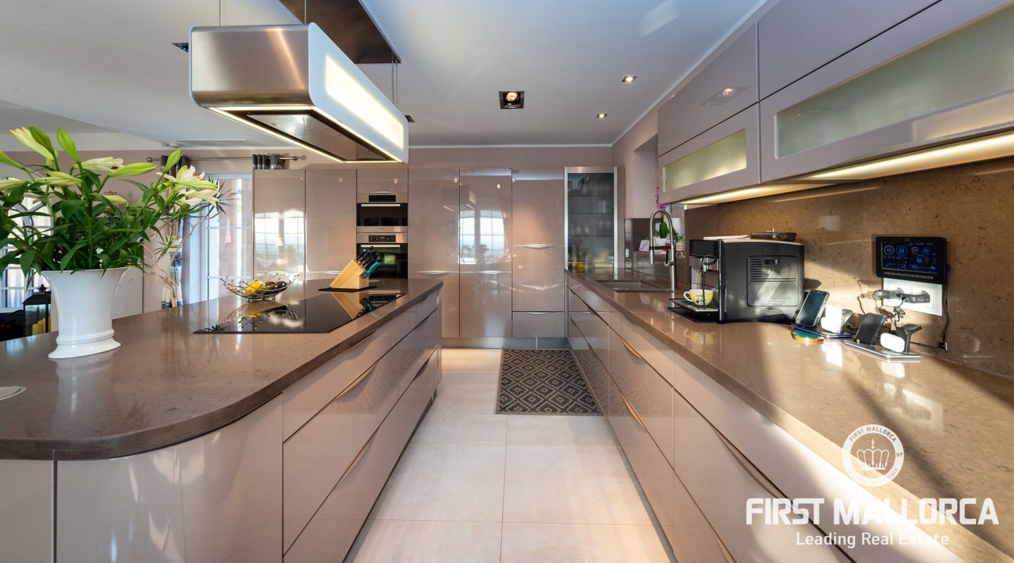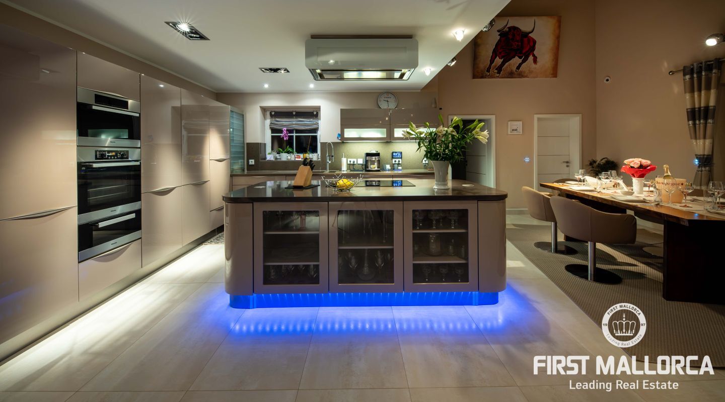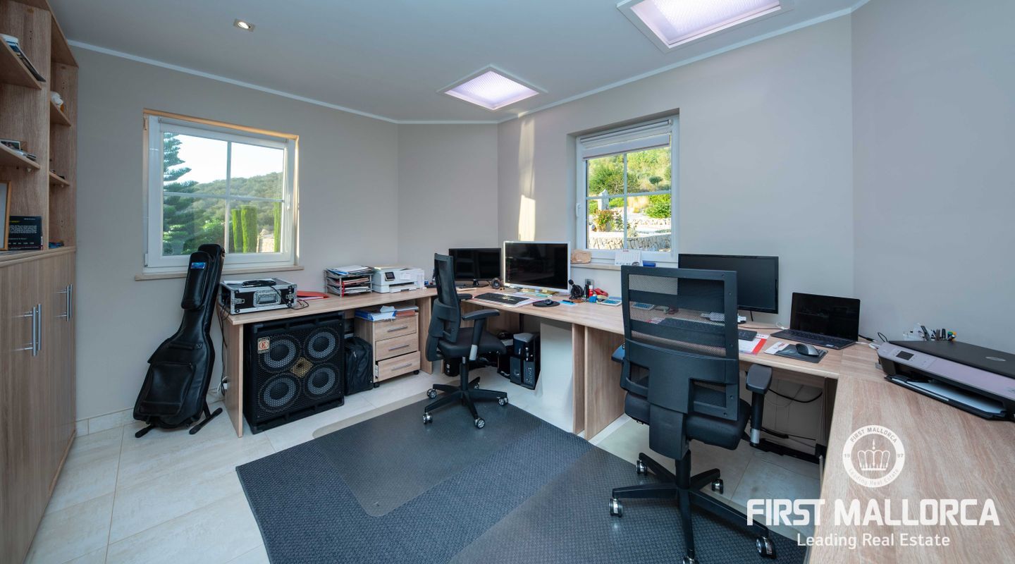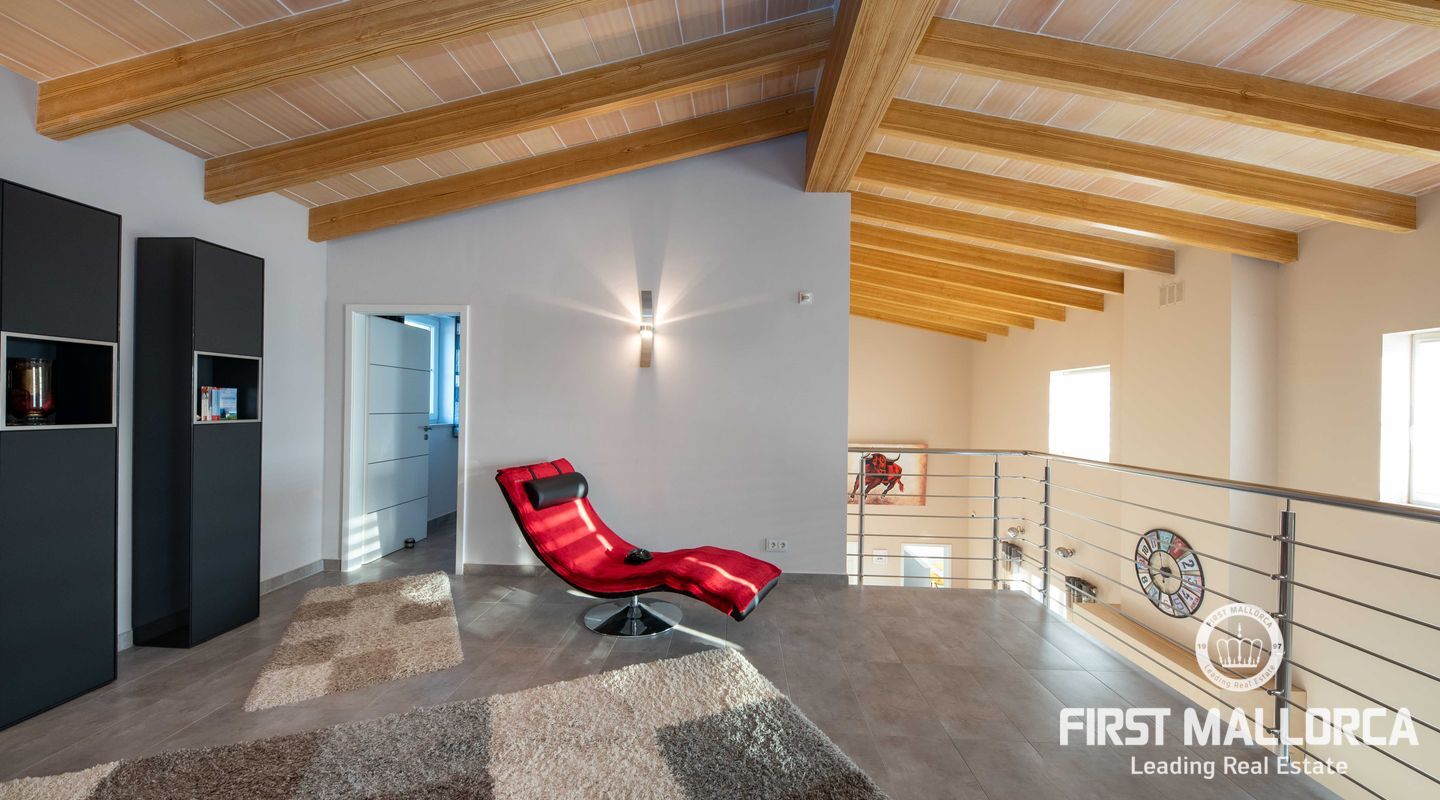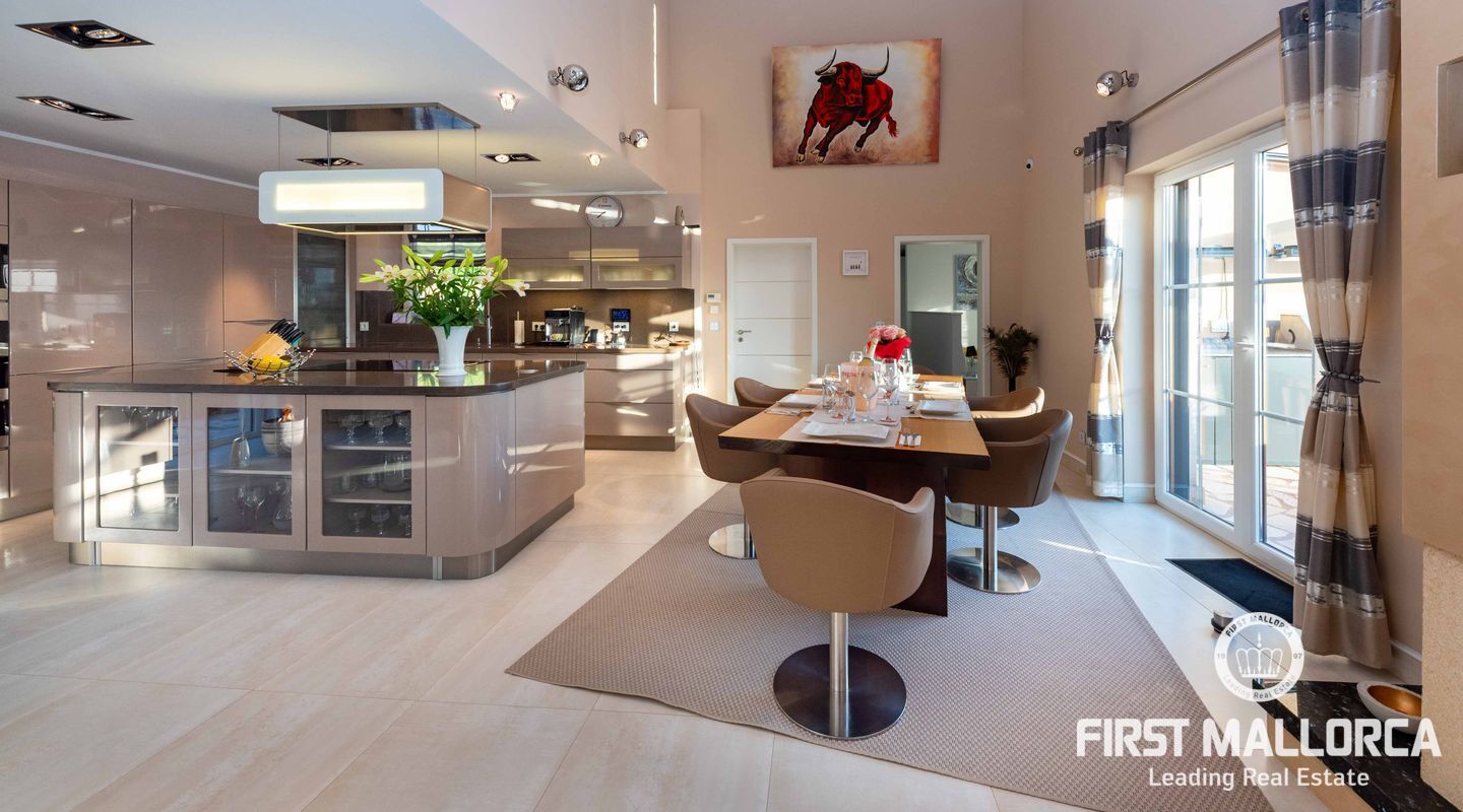 Stora dörrar från vardagsrummet leder till en rymlig terrass med ett integrerat sommarkök – perfekt för avkoppling utomhus med fantastisk utsikt över landskapet och Mallorcas berg. Medelhavsträdgården är kärleksfullt anlagd med oliv- och mandelträd, palmer och andra inhemska växter.