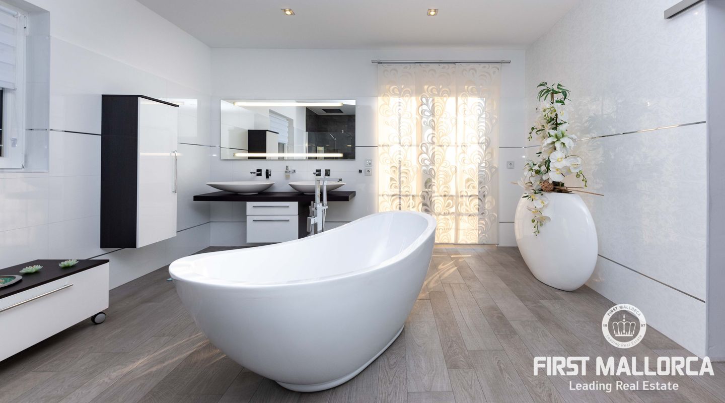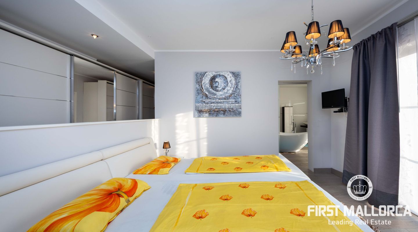 Det stora sovrummet har en klädkammare, ett eget badrum med fristående badkar och direkt tillgång till utomhusterrassen. Wellnessavdelningen, inklusive bastu, rymlig dusch och tillgång till poolterrassen, inbjuder dig att koppla av. Infinitypoolen (10 m x 5 m) understryker denna exklusiva oas av välbefinnande.