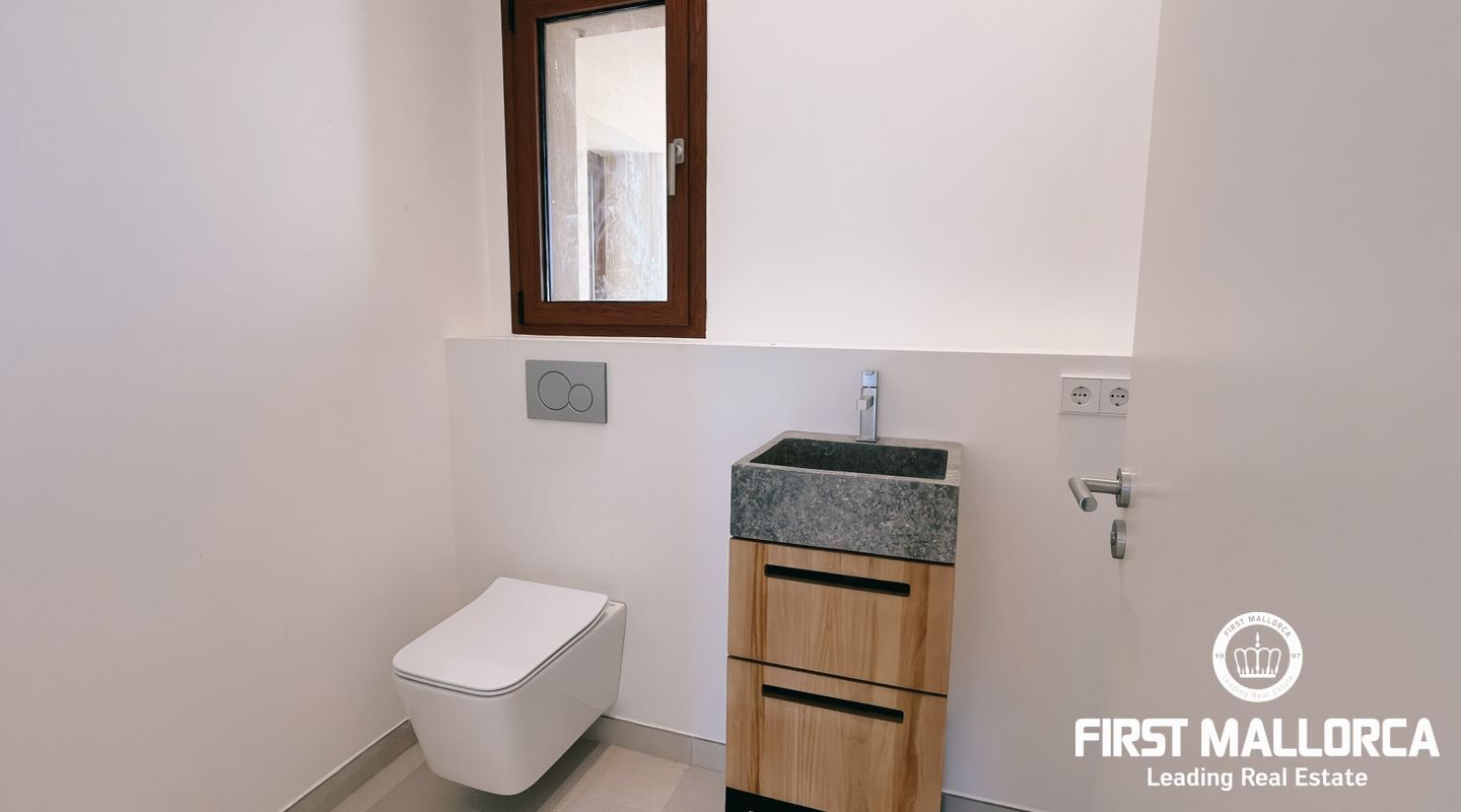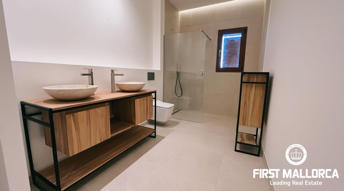 Finca Luna i Manacor kommer att stå klar hösten 2024 och kommer inte bara att imponera med sin elegans, utan framför allt med sin absoluta självförsörjning. Beroende på hur långt byggandet fortskrider kommer du att ha möjlighet att delta i designen. Toppmodern teknik och exceptionella material garanterar högsta möjliga livskvalitet. Detta familjehem i finca-stil erbjuder maximal avskildhet. Tomten på ca 14.680 m2 i ett avskilt läge omgärdas av en 160 m lång naturstensmur. En vacker allé med palmer ger tillgång till fastigheten genom en modern entrégrind med kameraövervakning. Framför huvudentrén finns parkeringsplatser för två fordon. Den moderna och enkla loftstilen skapar en hemtrevlig känsla så snart du kommer in. På bottenvåningen, som har en boyta på ca 295 m², finns ett rymligt vardagsrum/matsal med öppen spis och kök i öppen planlösning, ett förråd med torktumlare och tvättmaskin samt ett torkrum. Vidare, från den öppna entrén, 1 master bedroom med badrum en suite, ytterligare 2 sovrum, 1 badrum med dusch och en gästtoalett. Den modernaste värmepumpstekniken och centrala luftkonditioneringsreglage. Alla vardagsrum och sovrum är utrustade med golvvärme och luftkonditionering och kan värmas upp enligt dina önskemål. Fönstren från golv till tak erbjuder en underbar utsikt över vegetationen och naturen i sin renaste form. Det magnifika naturstensgolvet, i samma stil som fortsätter i hela huset, leder dig till terrassen och trädgården / poolområdet. På den puristiskt utformade terrassen kommer du att frestas att hoppa i den imponerande infinitypoolen med bänk, där solen är garanterad. @copyright, Daniel Haeser