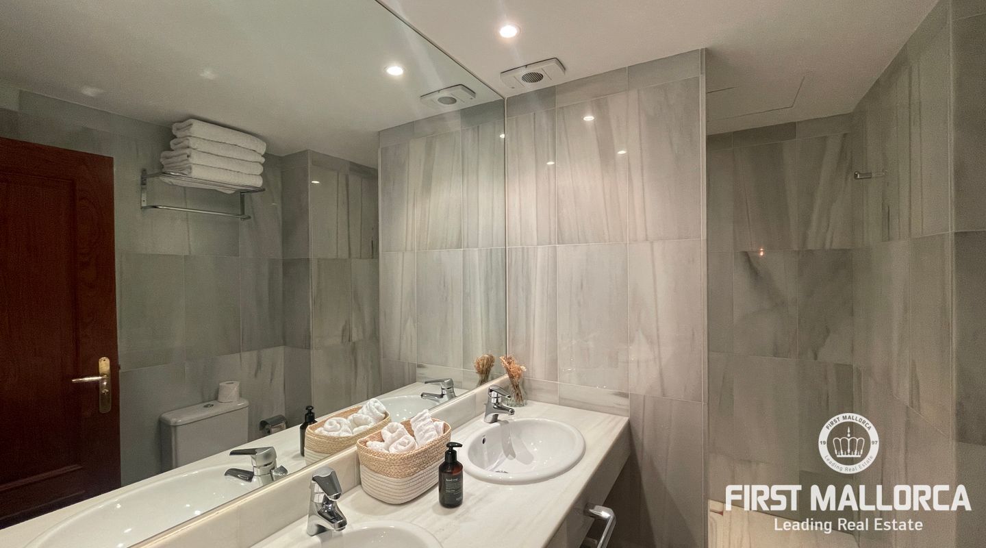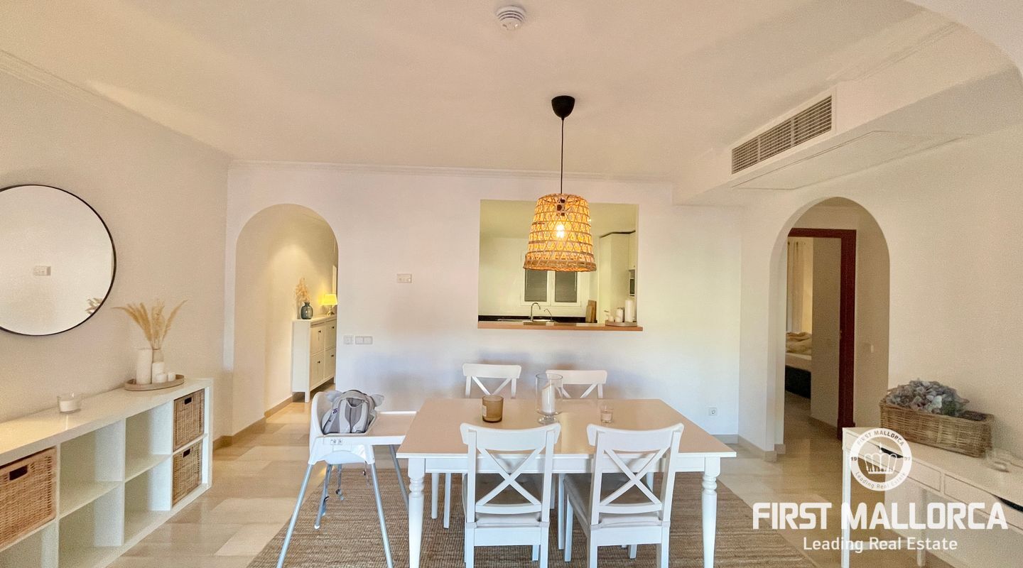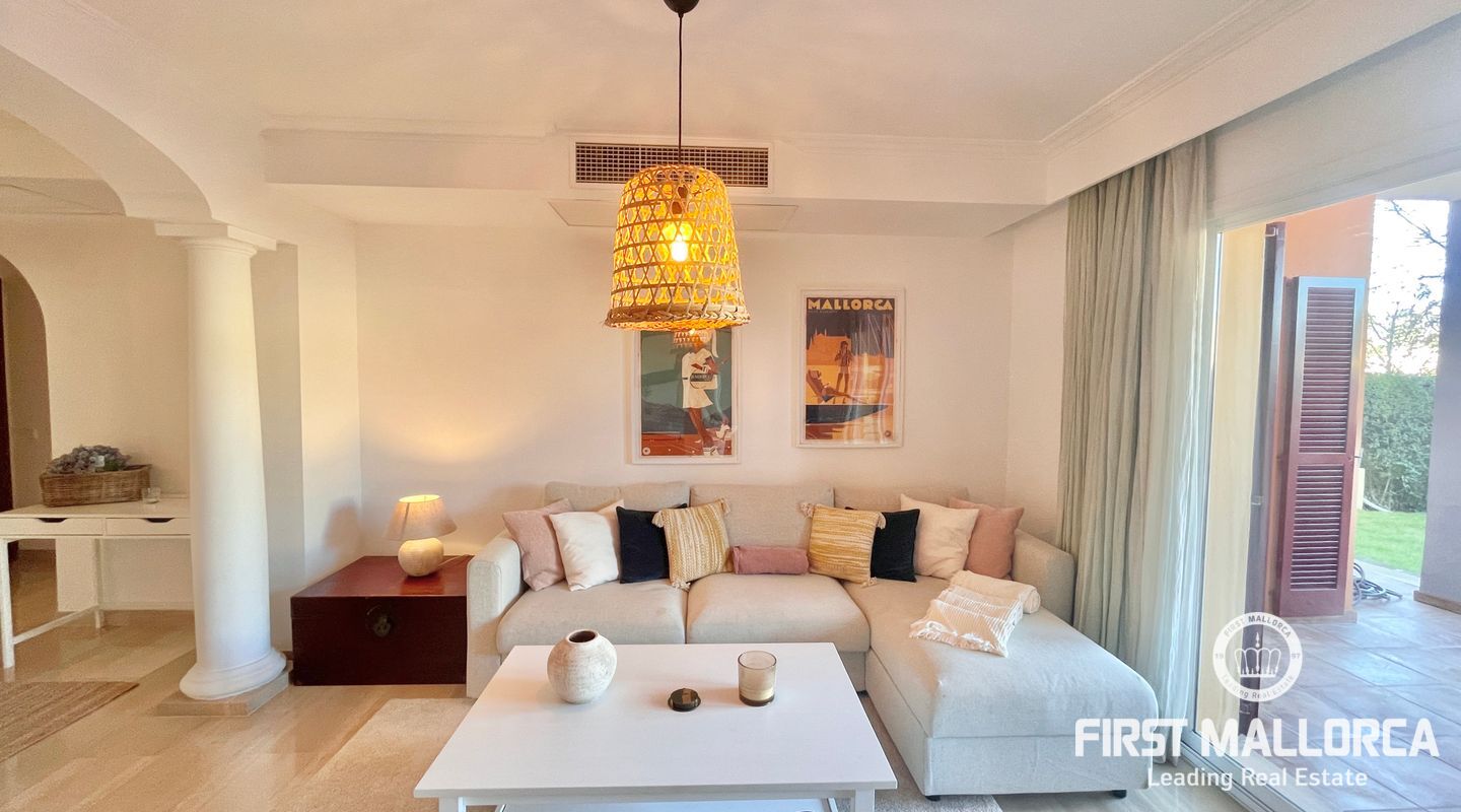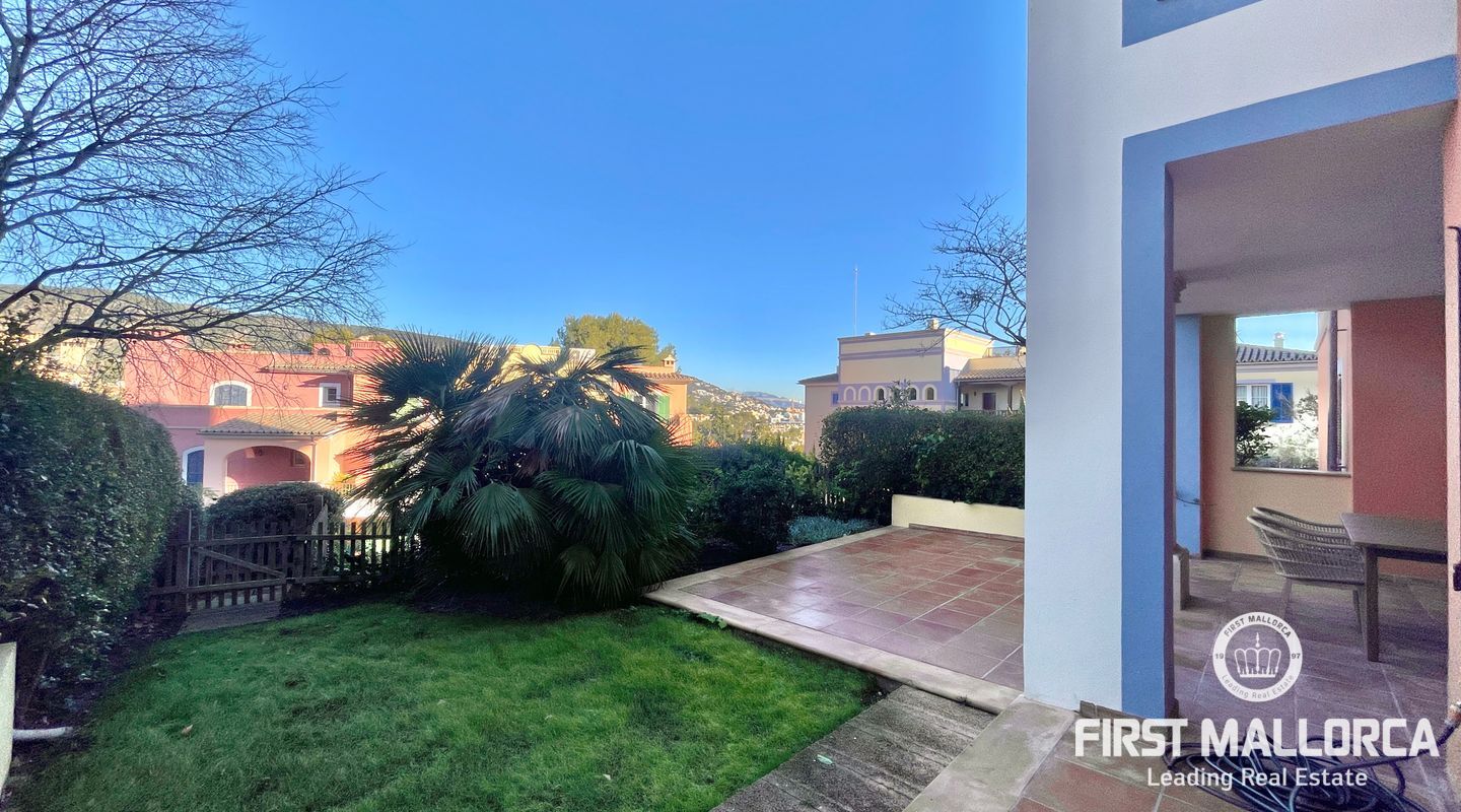 Denna trädgårdslägenhet med två sovrum ligger i det prestigefyllda området Sa Vinya i Bendinat med tre utomhuspooler och vackra anlagda trädgårdar. Nära till golfbanan, stränder, affärer och bara 10 minuters bilresa till Palma centrum. Fastigheten har en byggd yta på ca: 108 m2 inklusive 14 m2 täckta terrasser och en plan gräsmatta trädgård på ca: 30 m2 med tillgång till de gemensamma faciliteterna. Ytterligare funktioner inkluderar: varm och kall luftkonditionering, golvvärme i badrummen, marmorgolv, öppen spis och en underjordisk parkeringsplats. Lägenheten är i inflyttningsklart skick, fullt möblerad. Ta kontakt idag för att boka din personliga visning.