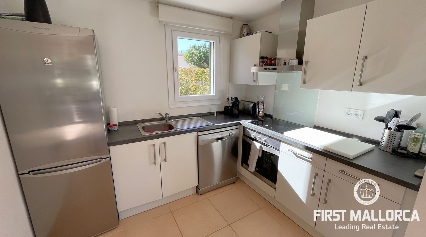 Denna lägenhet på bottenvåningen med 2 sovrum och två badrum, ett av dem eu-suite, ligger i ett populärt komplex i Sa Ràpita. Köket har öppen planlösning och vardagsrummet gränsar till terrassen med en storlek på ca 26m².