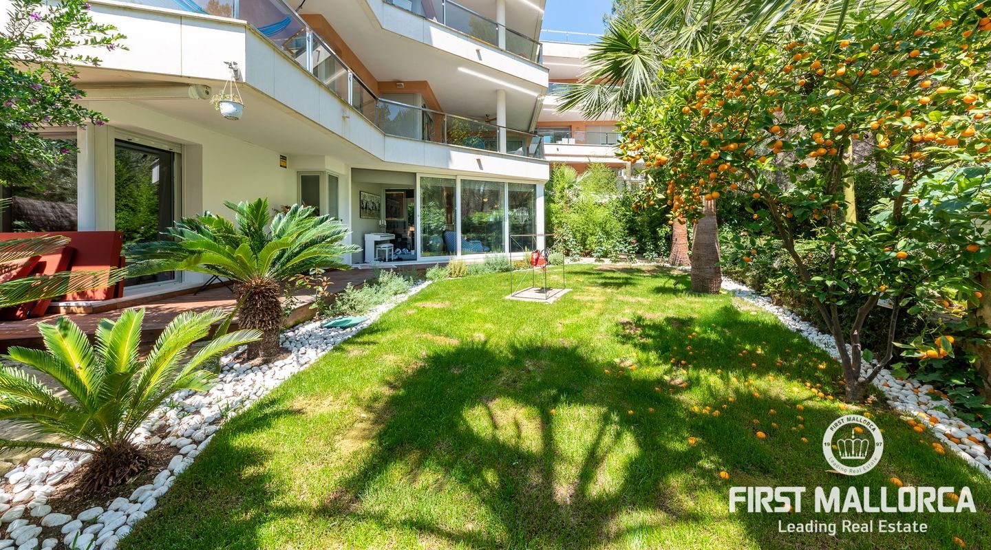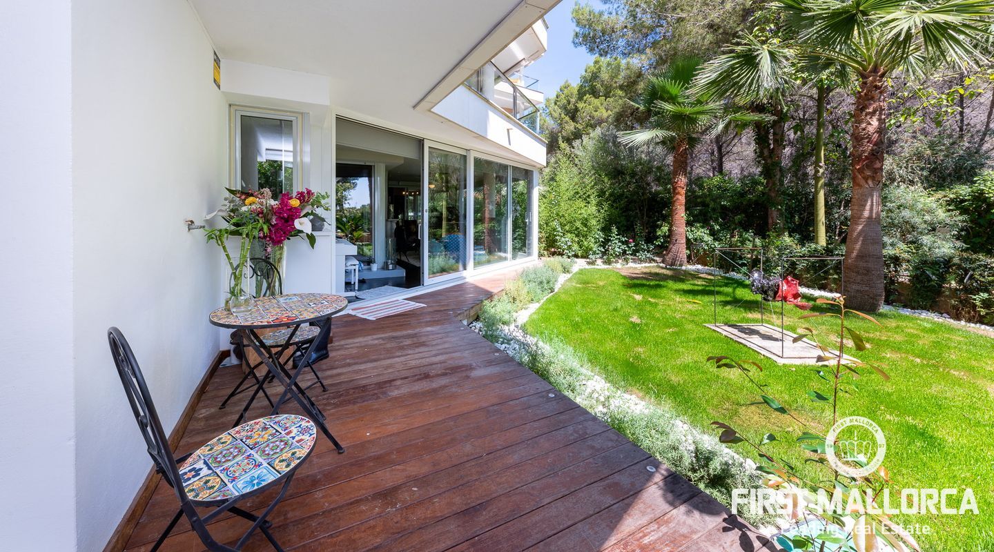 Hög kvalitet och elegant lägenhet på bottenvåningen i Sol de Mallorca i ett exklusivt samhälle med saltvattenpool.